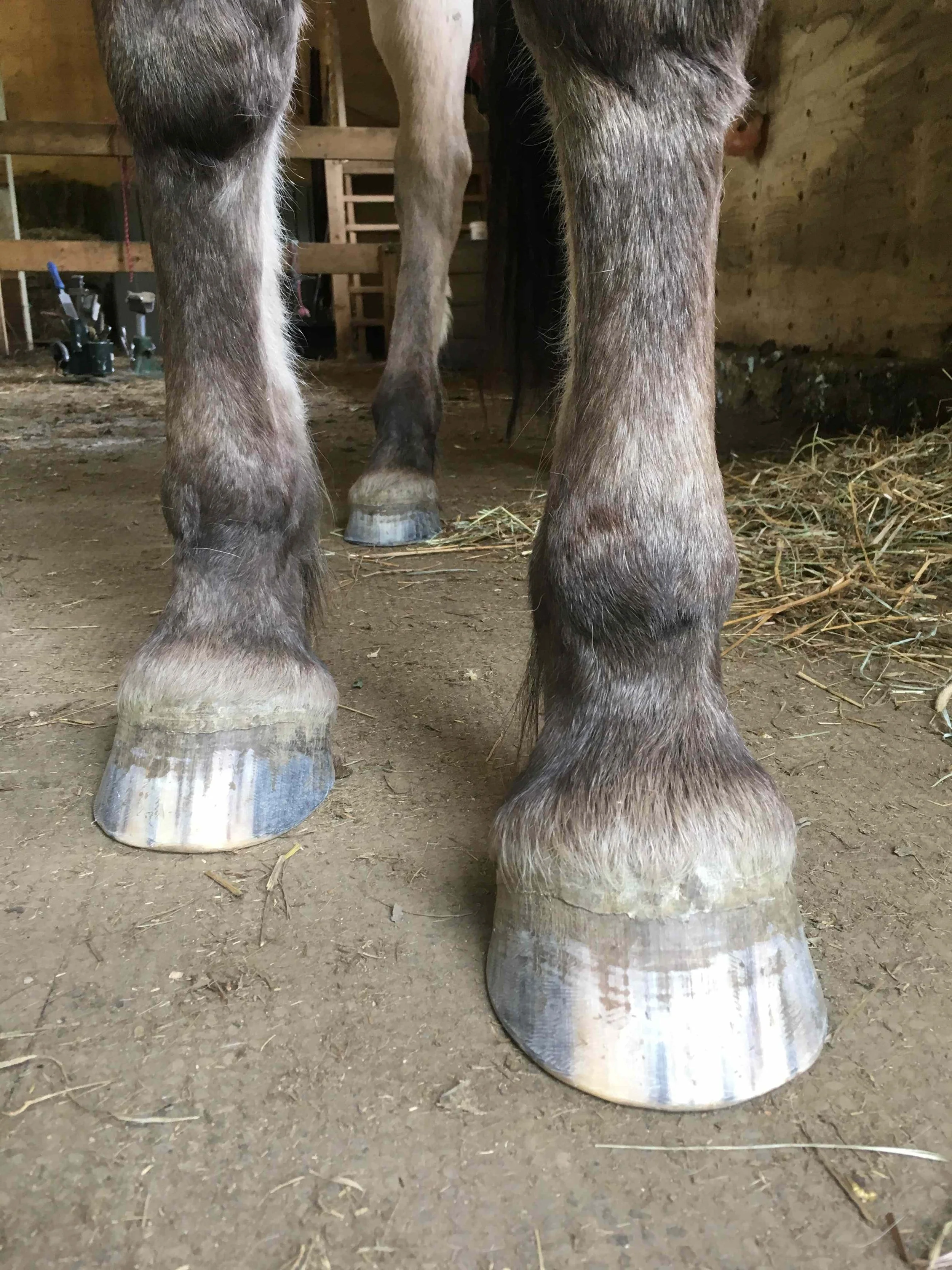 By year eight the back of her hooves finalized the completion of the variant capsule-angle-of-growth (which should have happened in the first weeks and months of her life). Between year five and eight a visible increase of hoof mass has taken place. The left front no longer presents the boxy shape. Needless to say, all four feet were equally involved in the healing from atrophy in the back of the hooves.