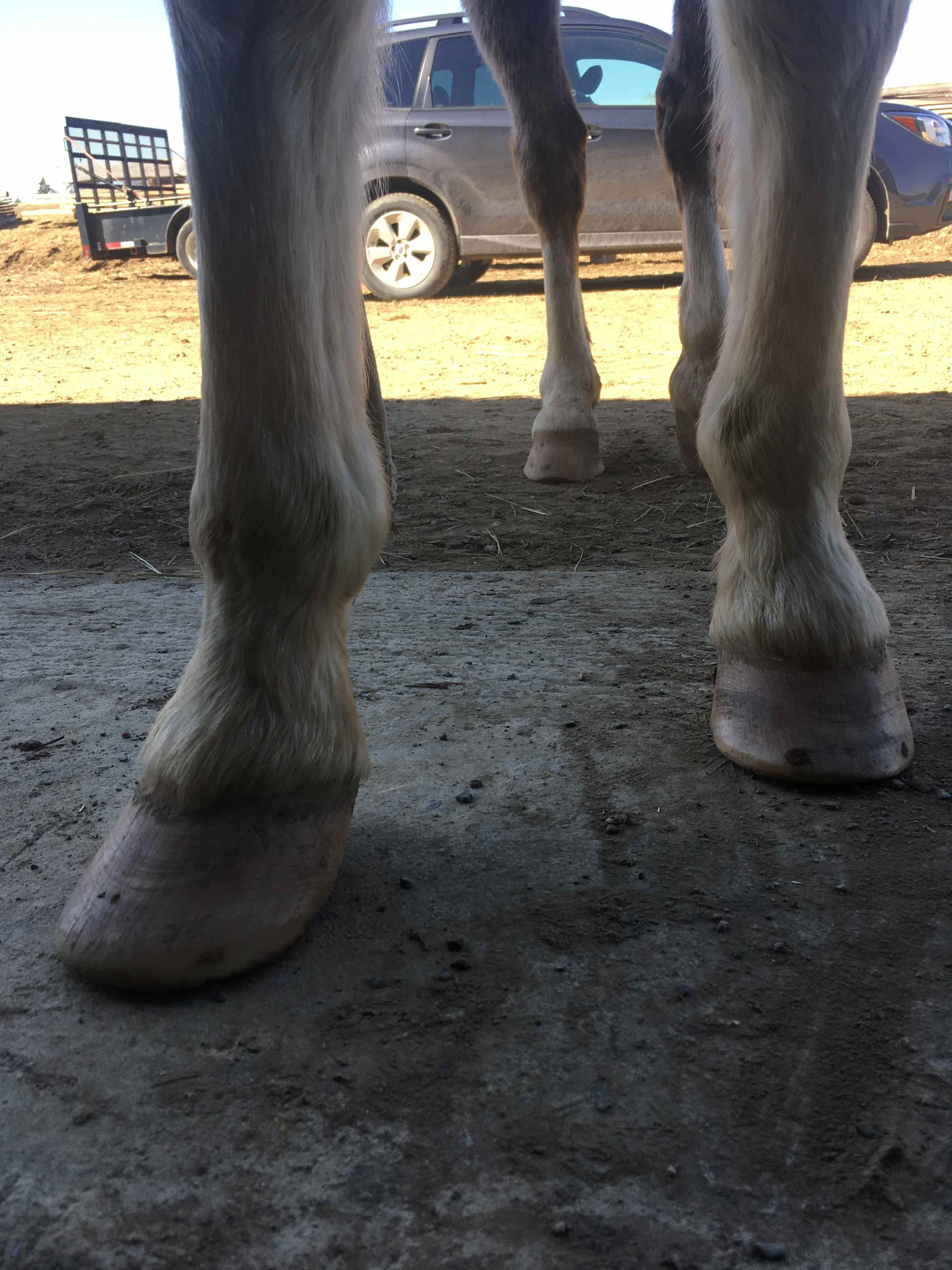 Left hind post-trim November 2020 — there was ossification in the left hind — Mo has been bracing on the medial side and bull-nosed his toe on the left hind.