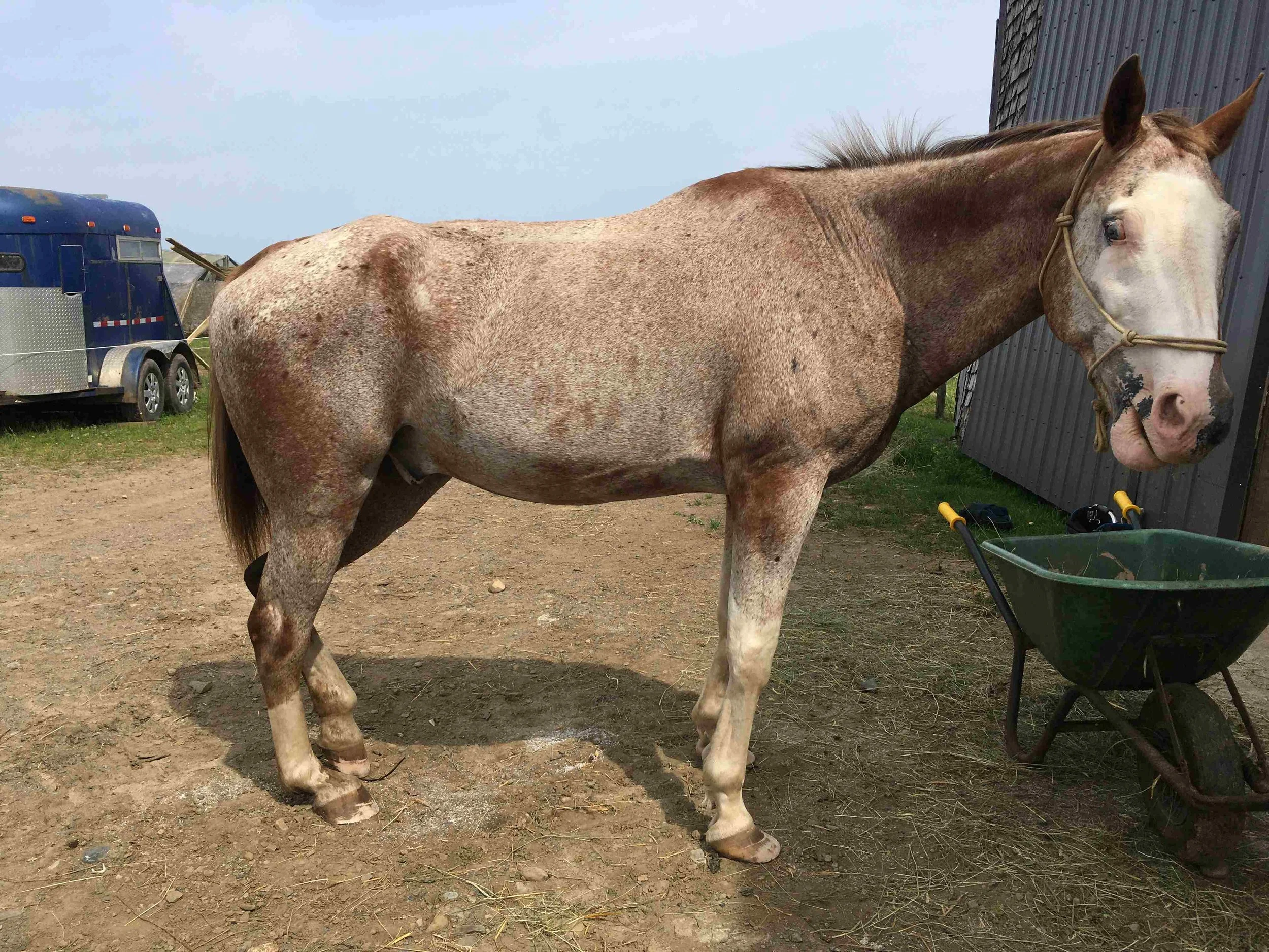 The senior Appaloosa gelding was rescued by my clients. Mo was trimmed by a professional barefoot trimmer for a number of years and then under my hoof care for the last three years of his life. He was previously treated for thrush. I recommended to discontinue any thrush treatment because I found the back of all four hooves fundamentally atrophied. Three of Mo’s hooves were slipper feet. The front hooves were pretty twisted. I literally entangled them, one divergent hoof at a time.