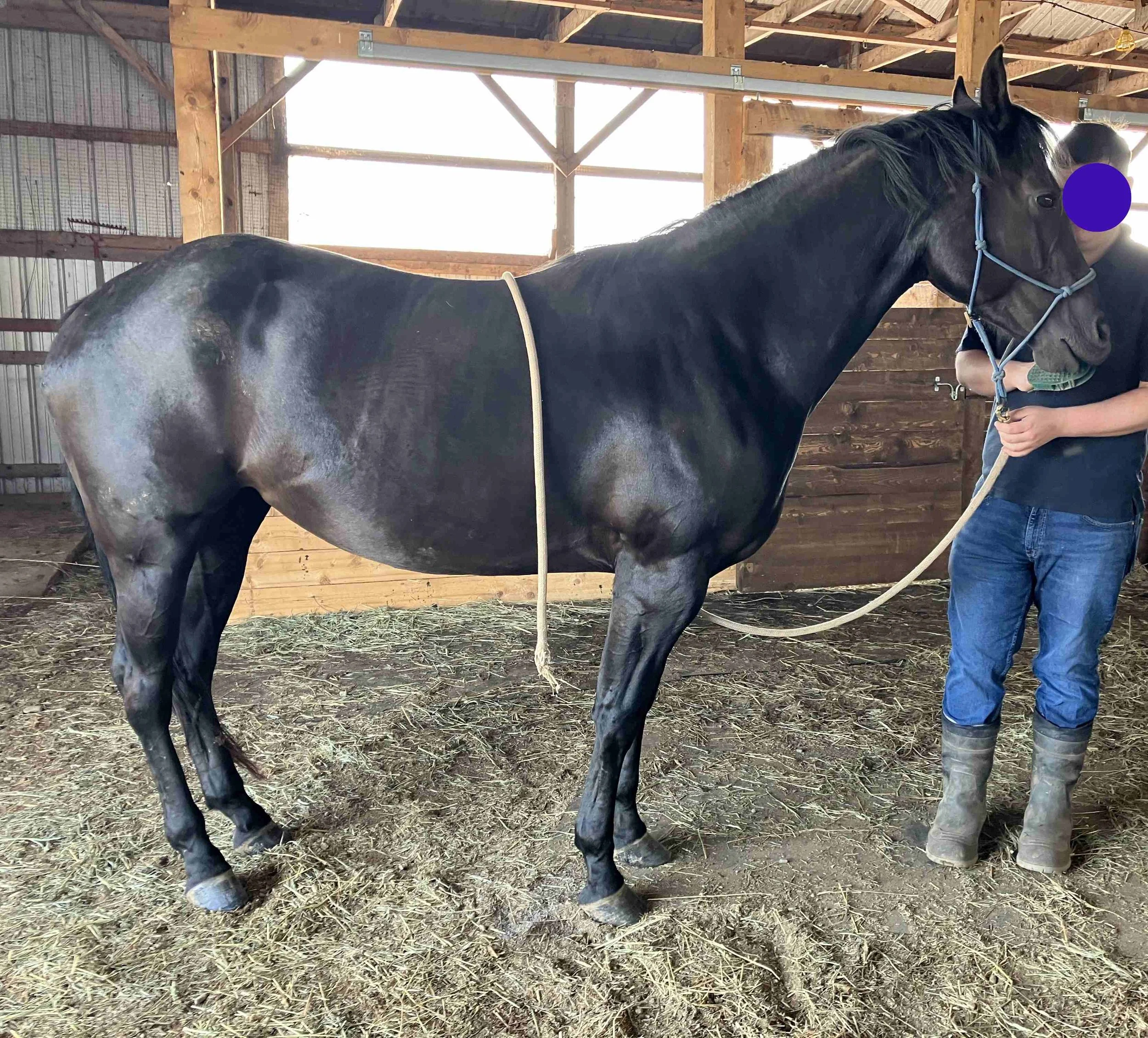 The seven-year-old Quarter Horse was diagnosed with side-bone and ring-bone in both hinds at the young age of three. The mare is untrained and has never been ridden. The atrophy in the back of all four hooves was unnoticed.