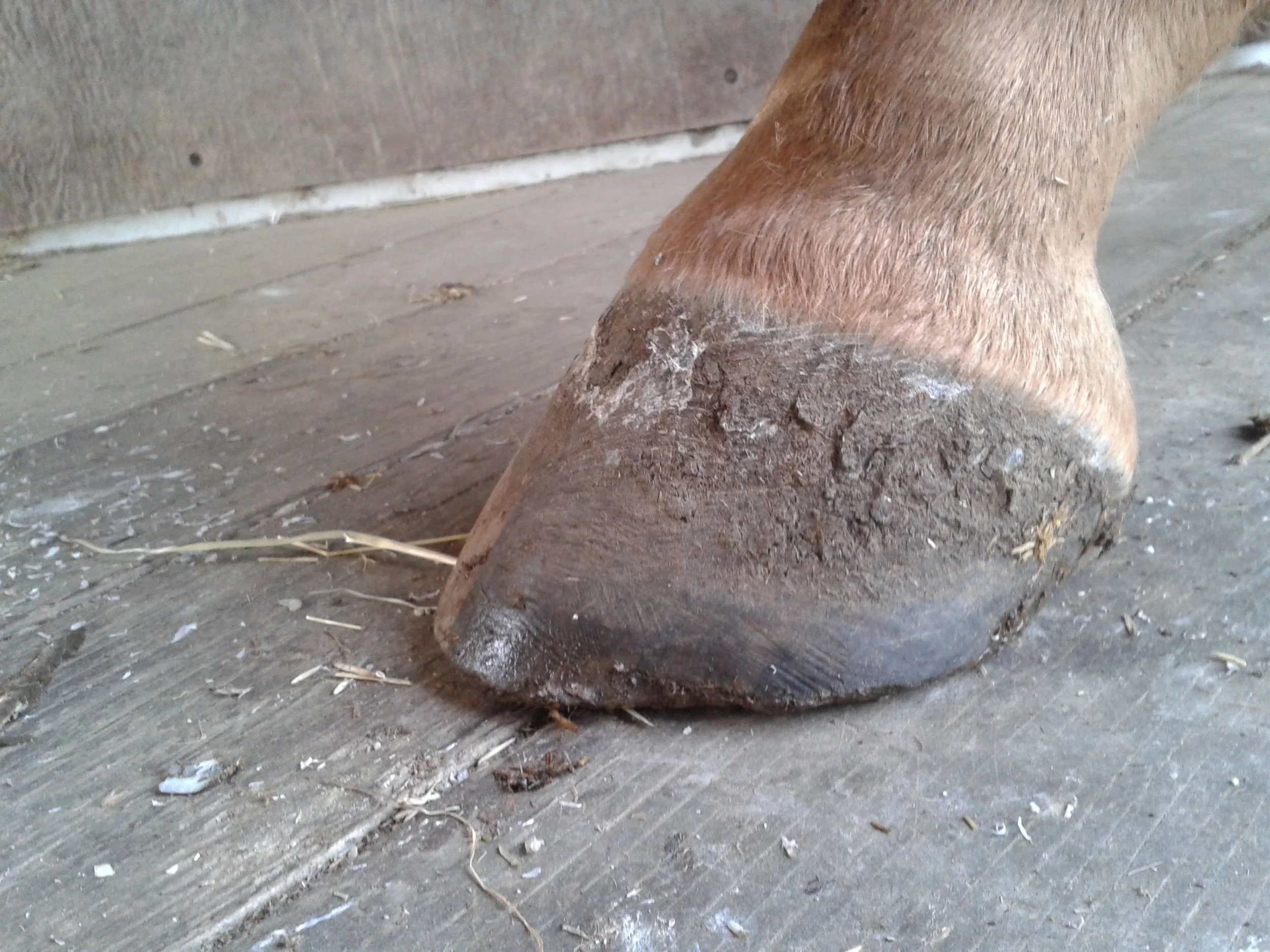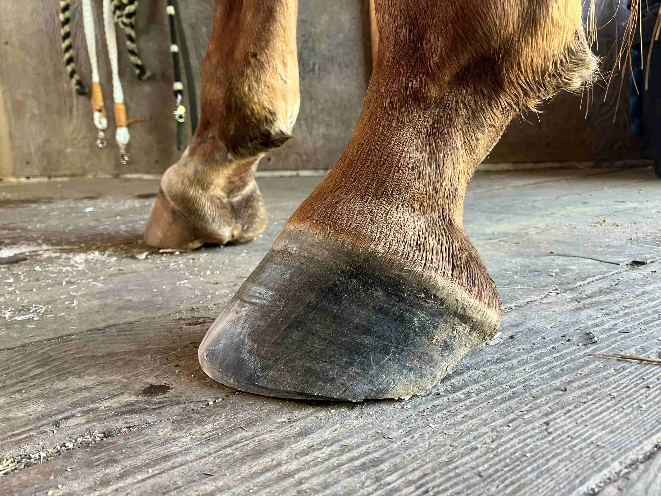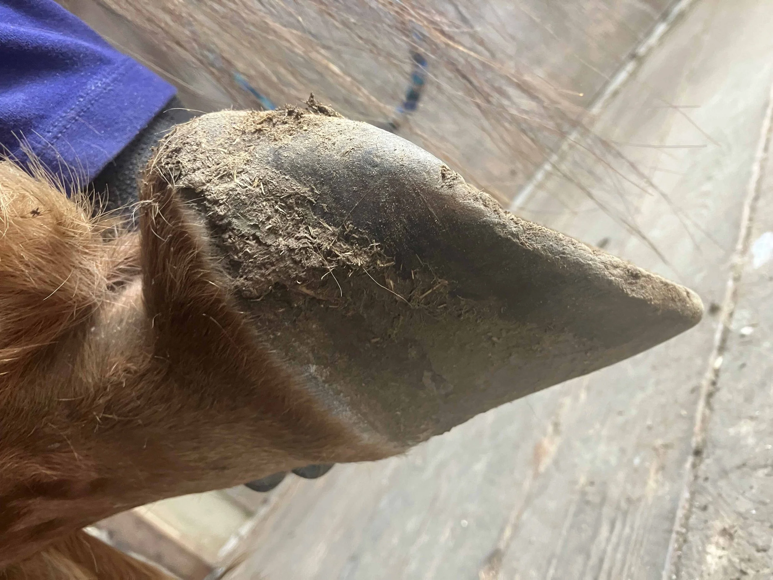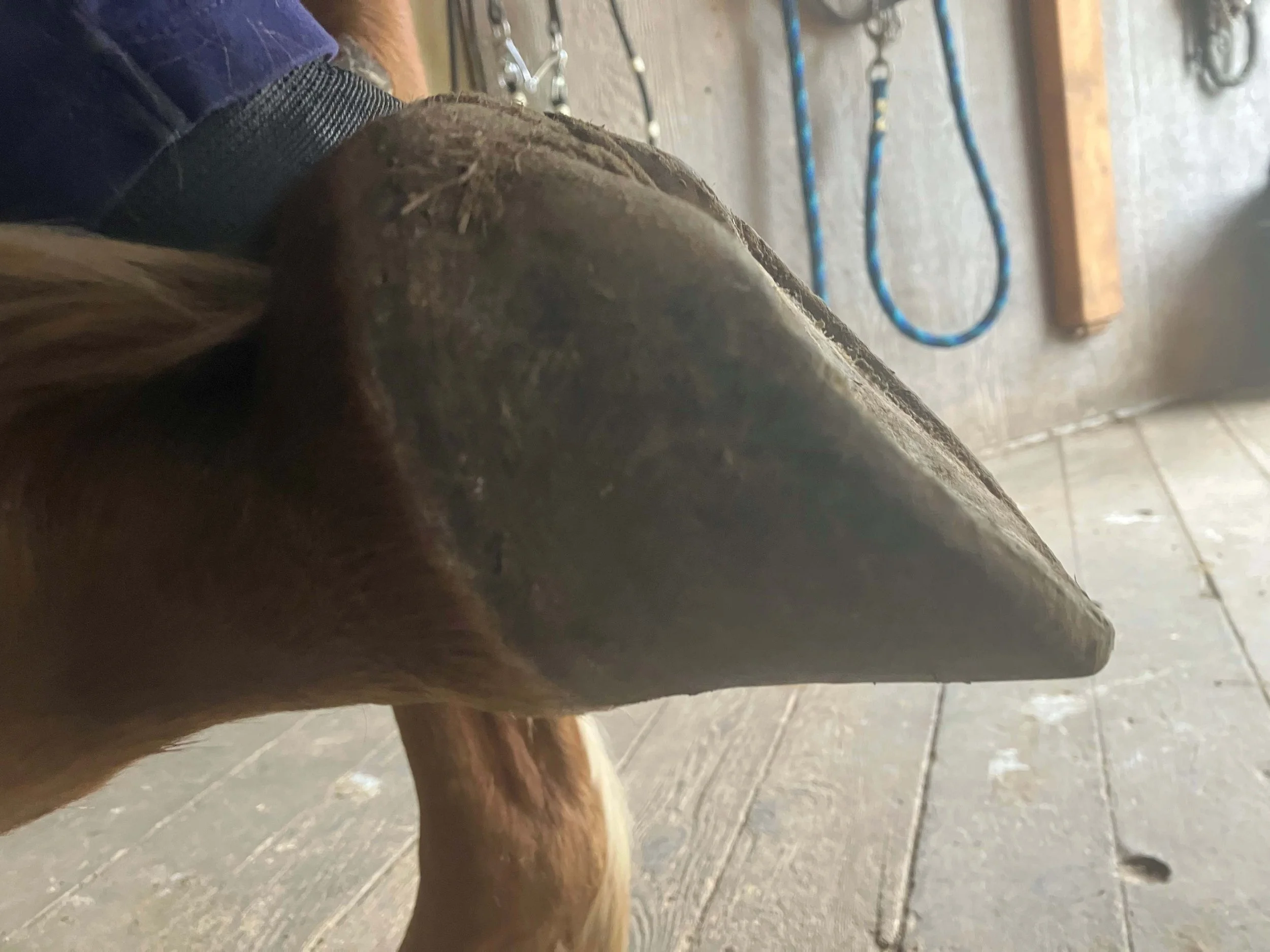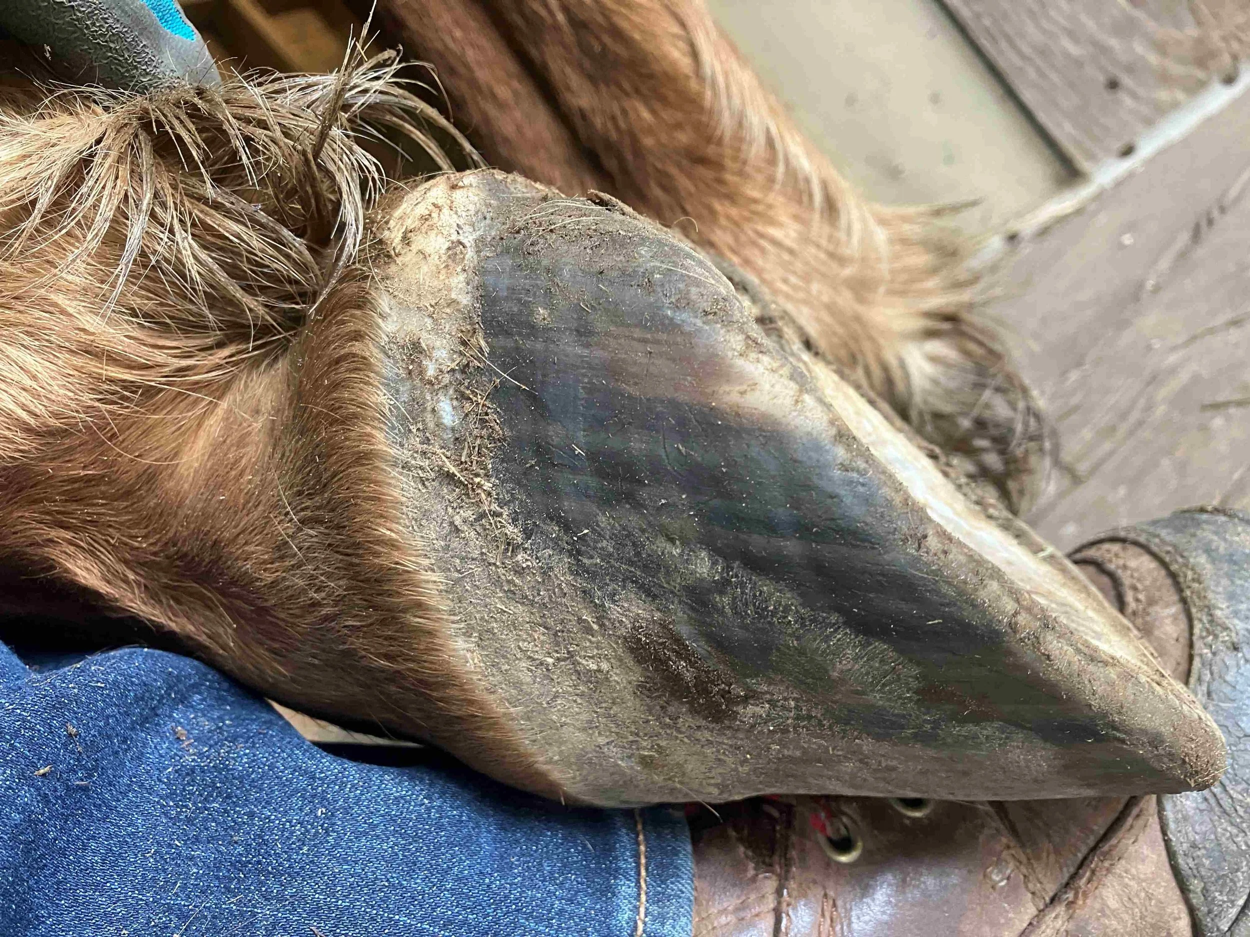 Left front pre-trim May 2024 — the hoof is still a bit imbalanced medio/laterally
