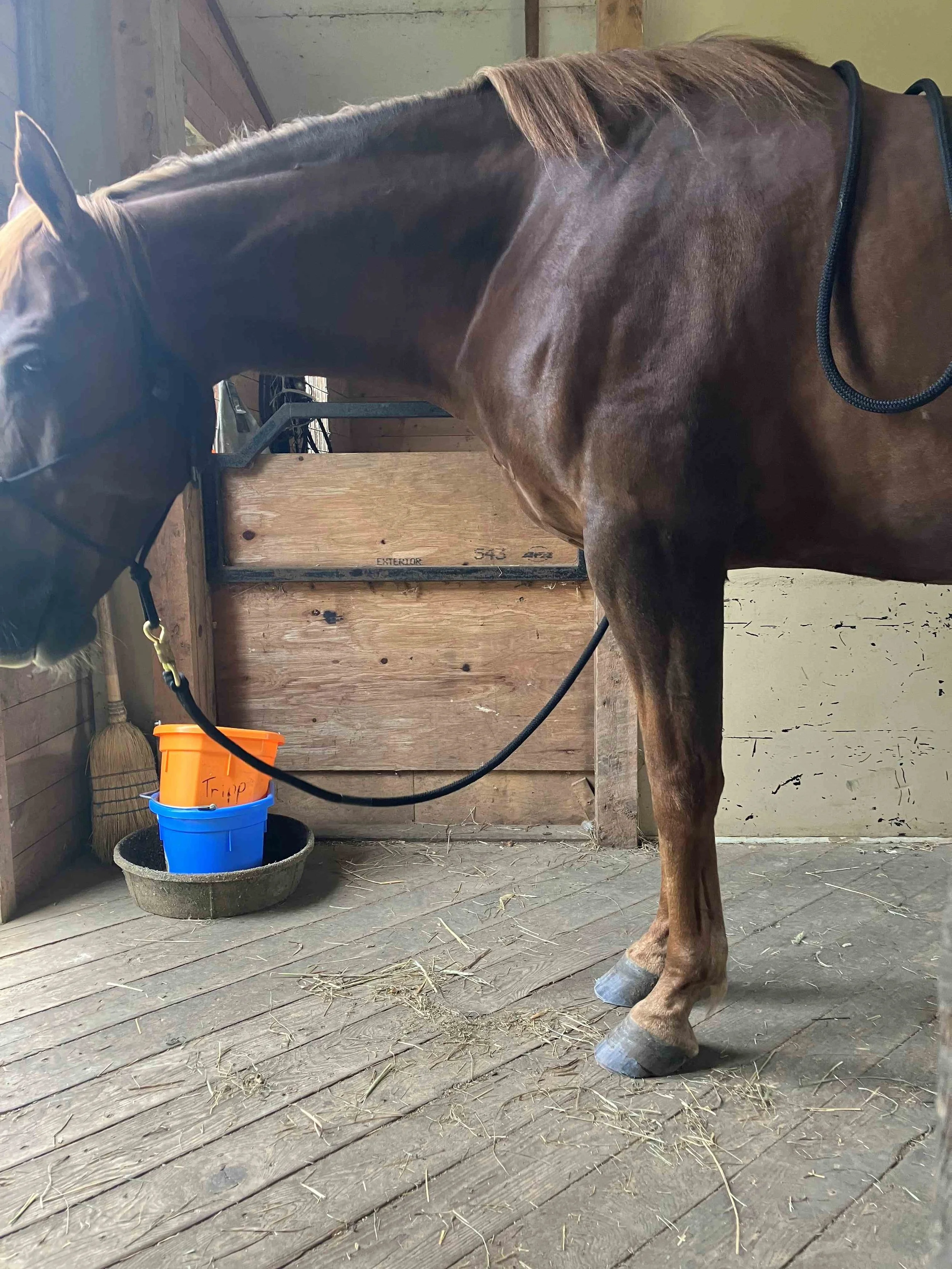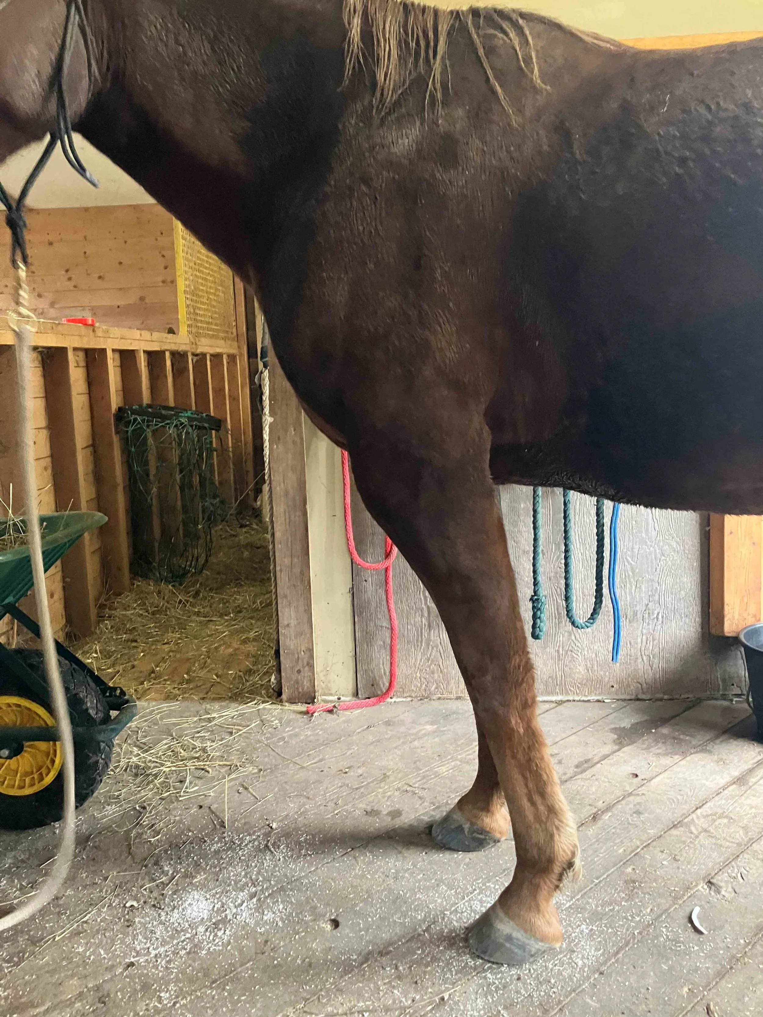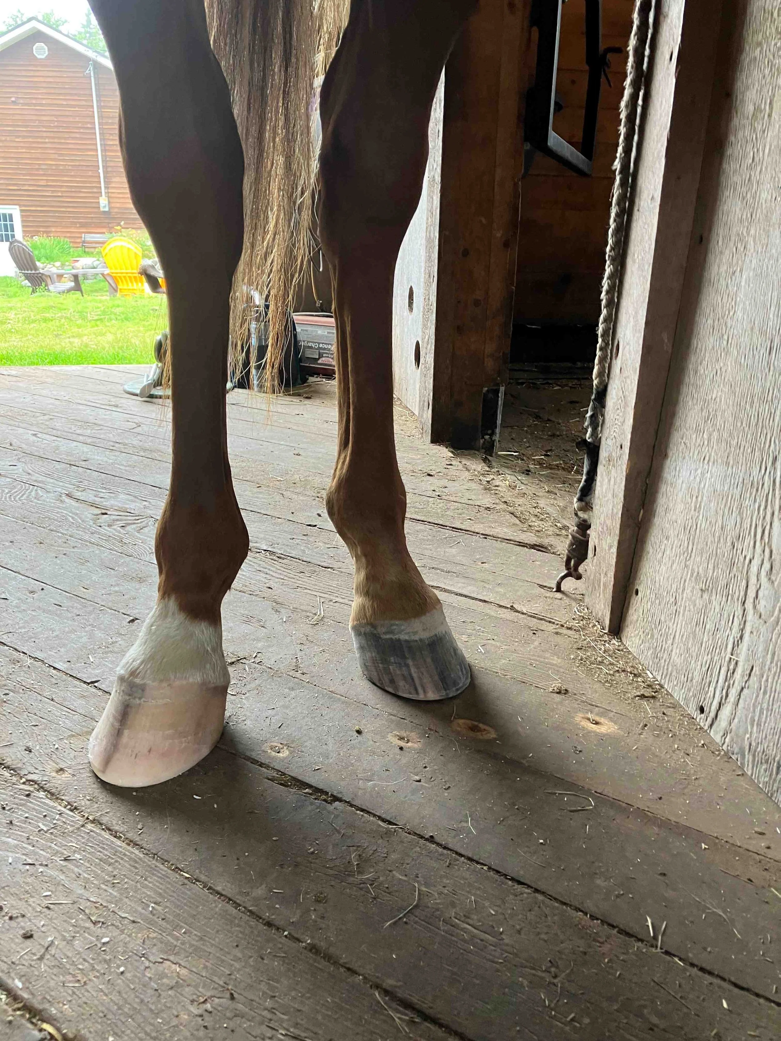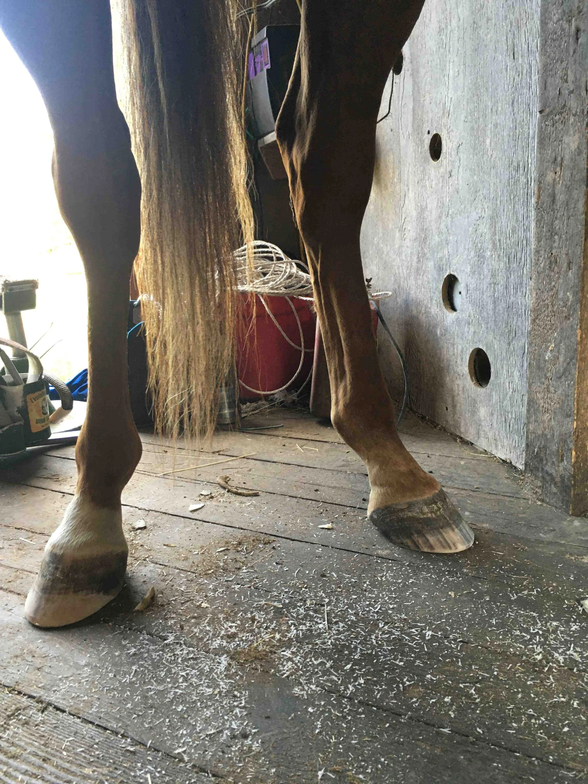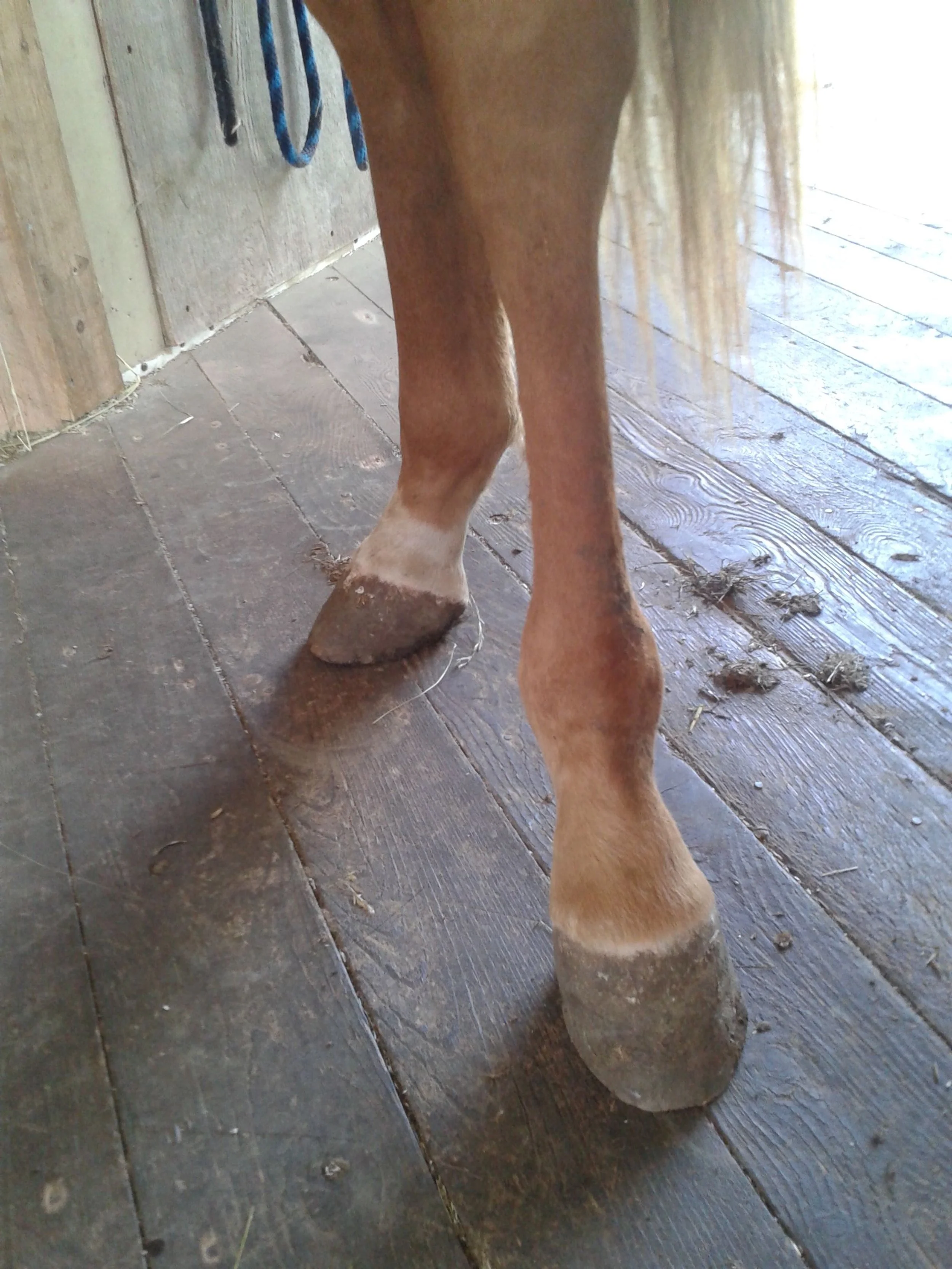Left front pre-trim May 2024 — the hoof is still a bit imbalanced medio/laterally