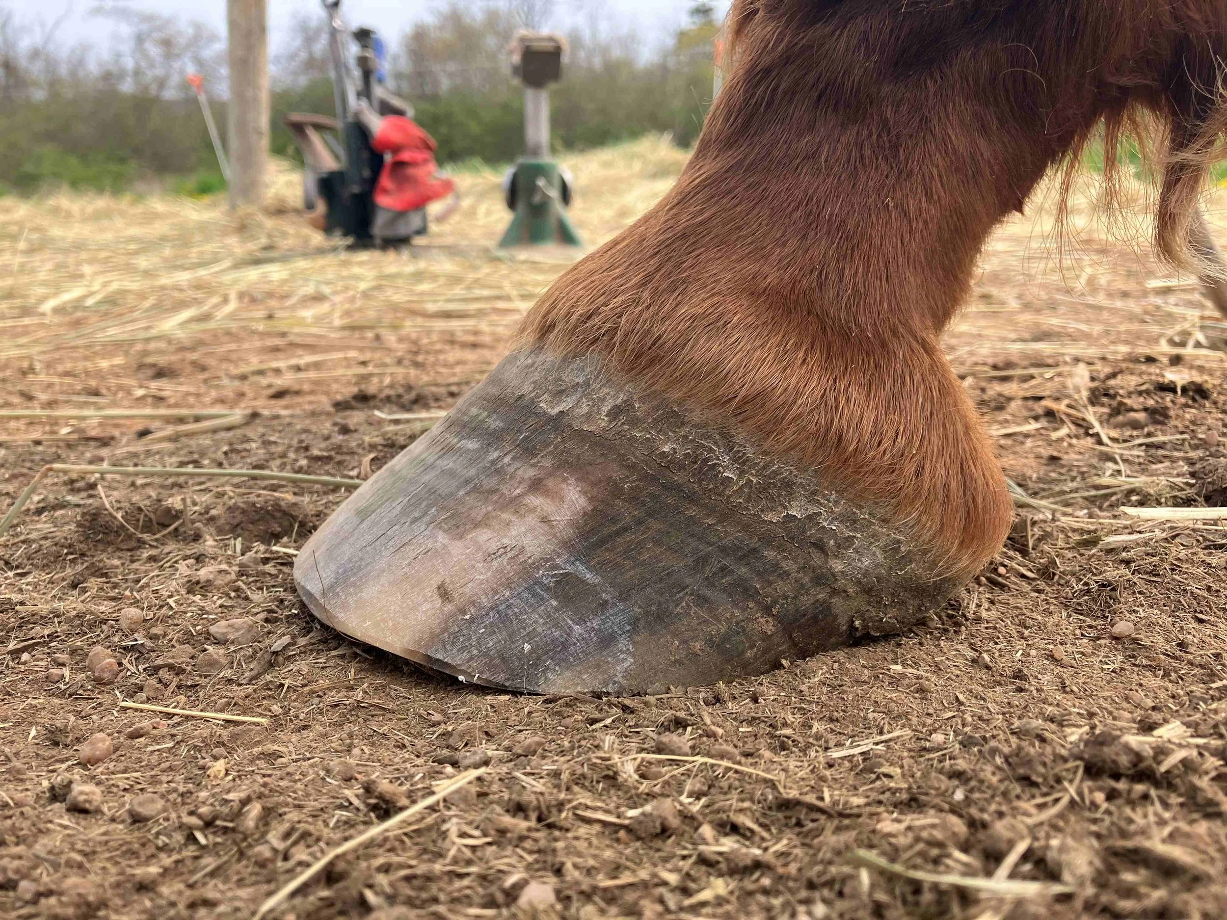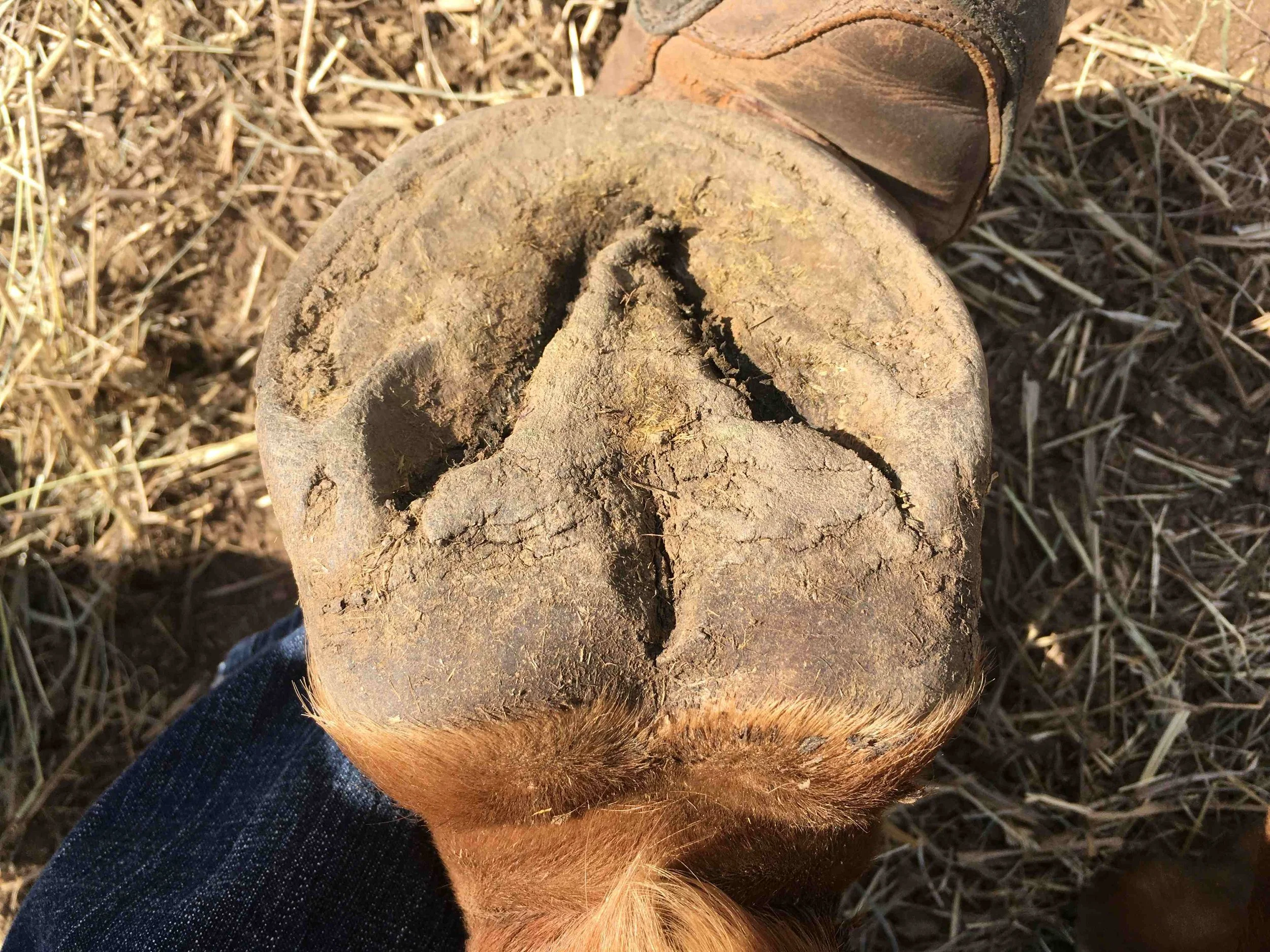 The back of all four hooves was undeveloped with atrophied frogs and bulbs, weak internal structures and lack of true heels. The hooves were not able to support the bone column.