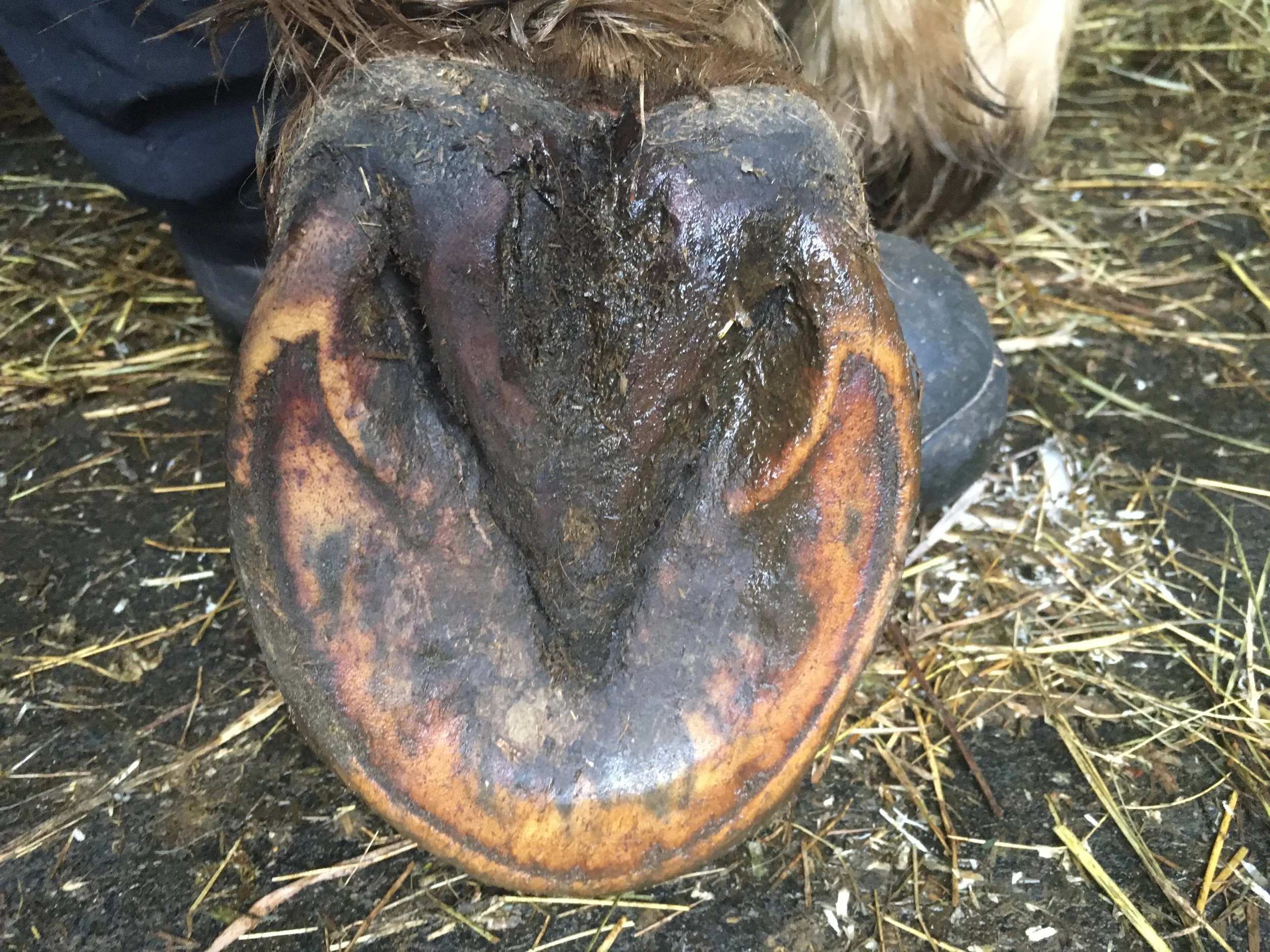 Right hind August 2018 — true heel is growing in from further back on the lateral side after an abscess