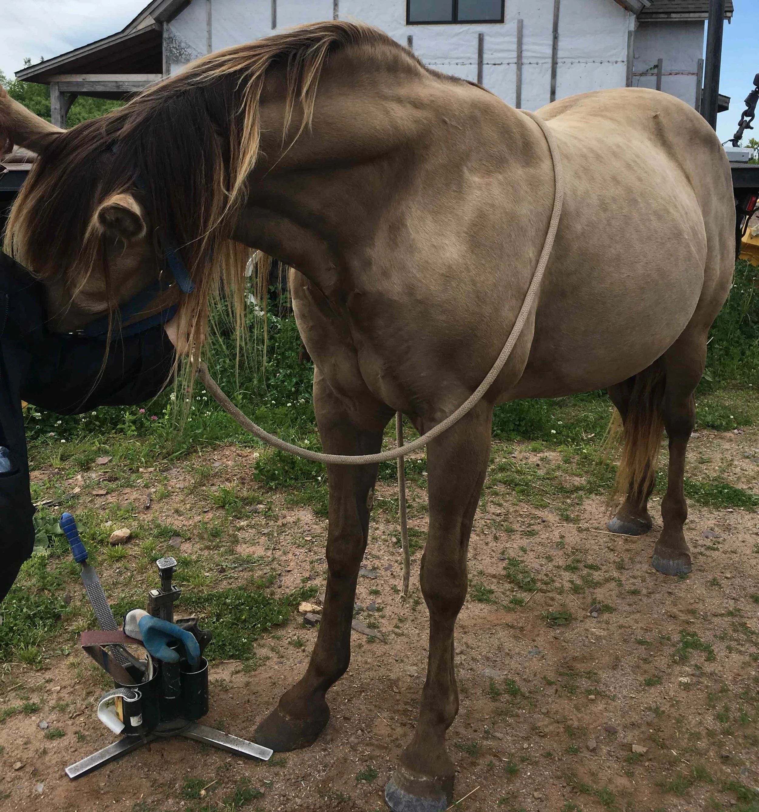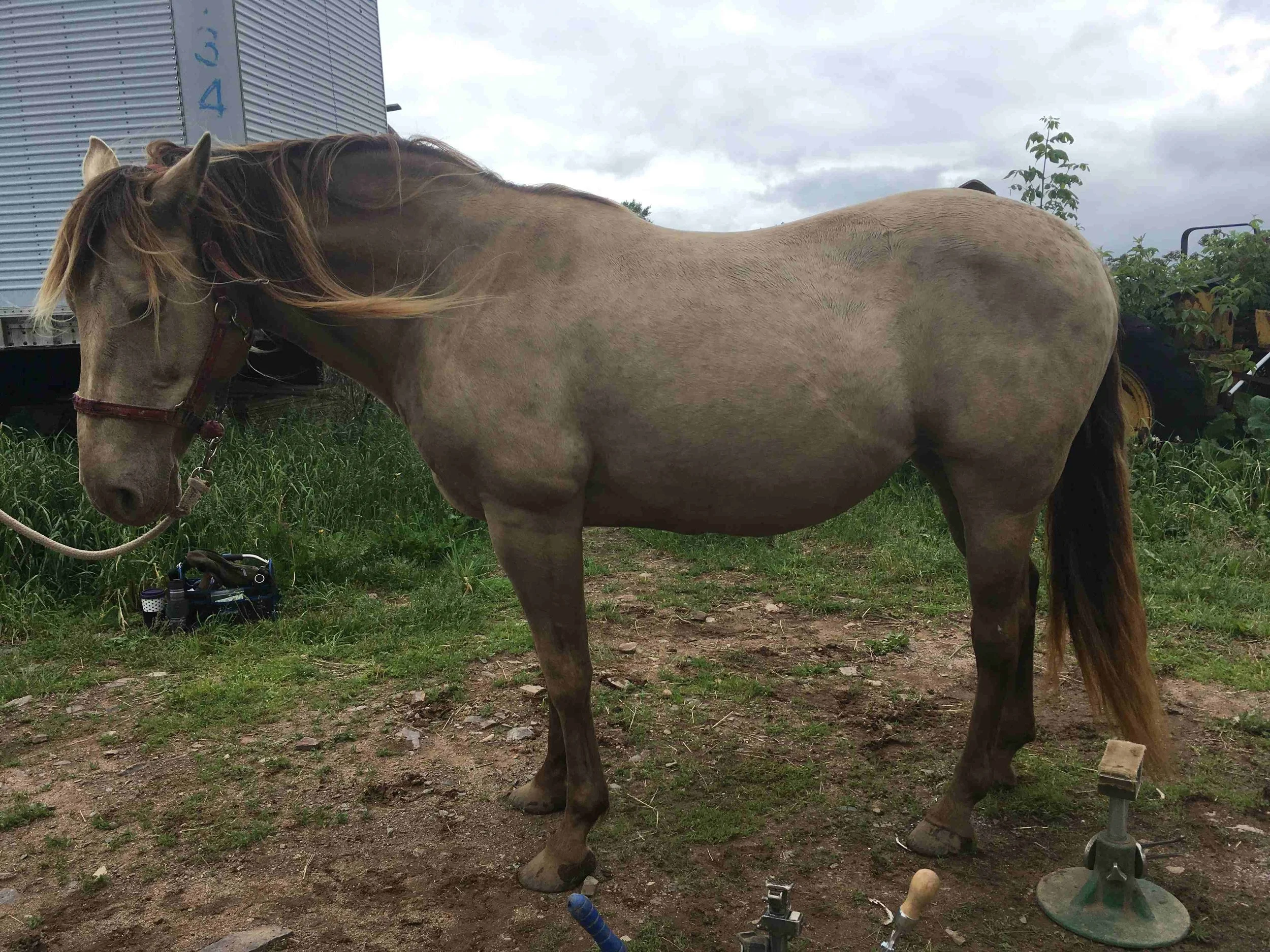 Star lived in a herd outside with 24/7 freedom on a beautiful mountain top. There was no firm or abrasive ground in her environment except for the floor in the run-in shelter. She was out in the field throughout the summers. So the mimicking of natural wear with my tools combined with movement were mainly responsible for the results. She was trimmed every six weeks.
