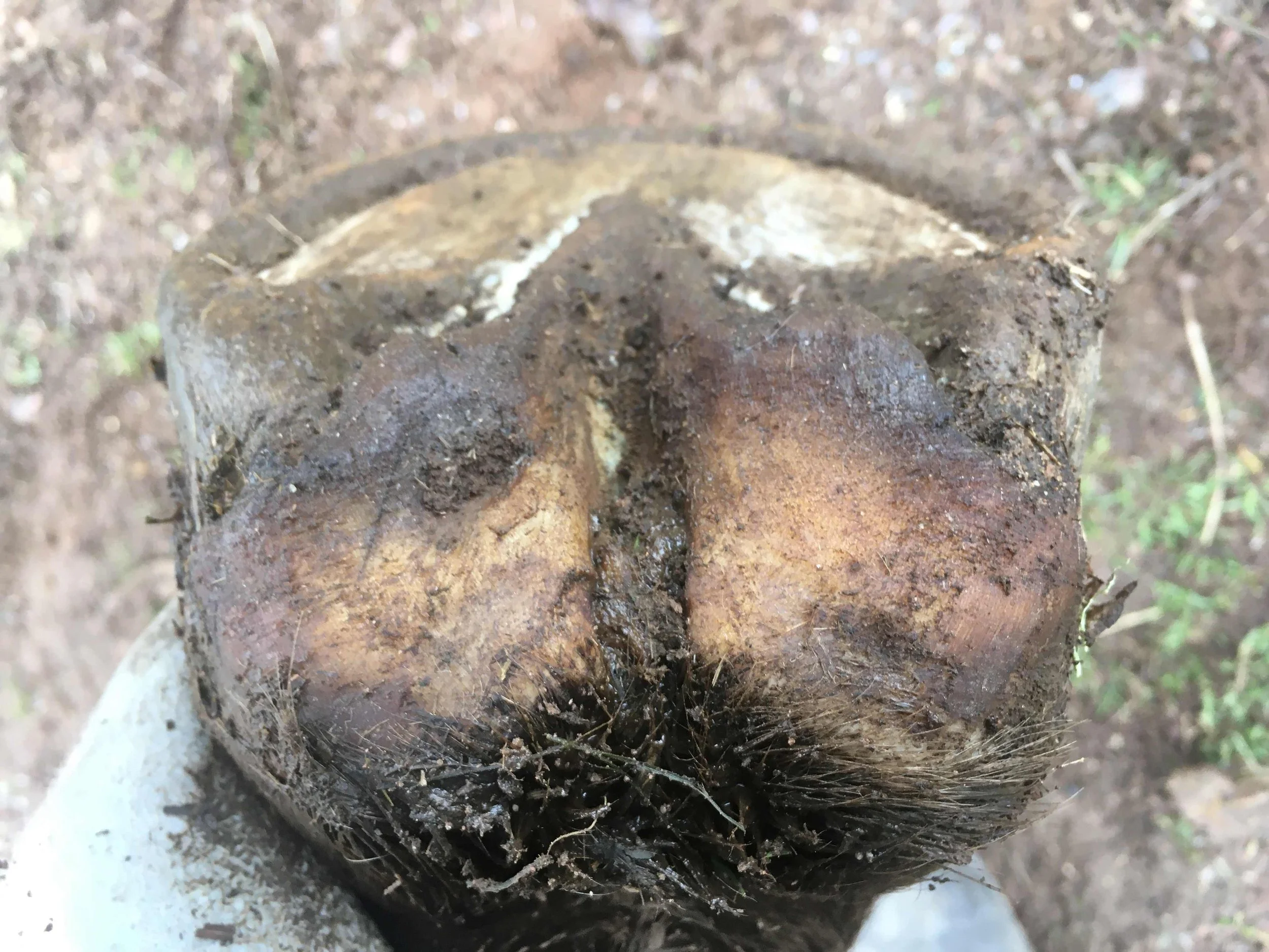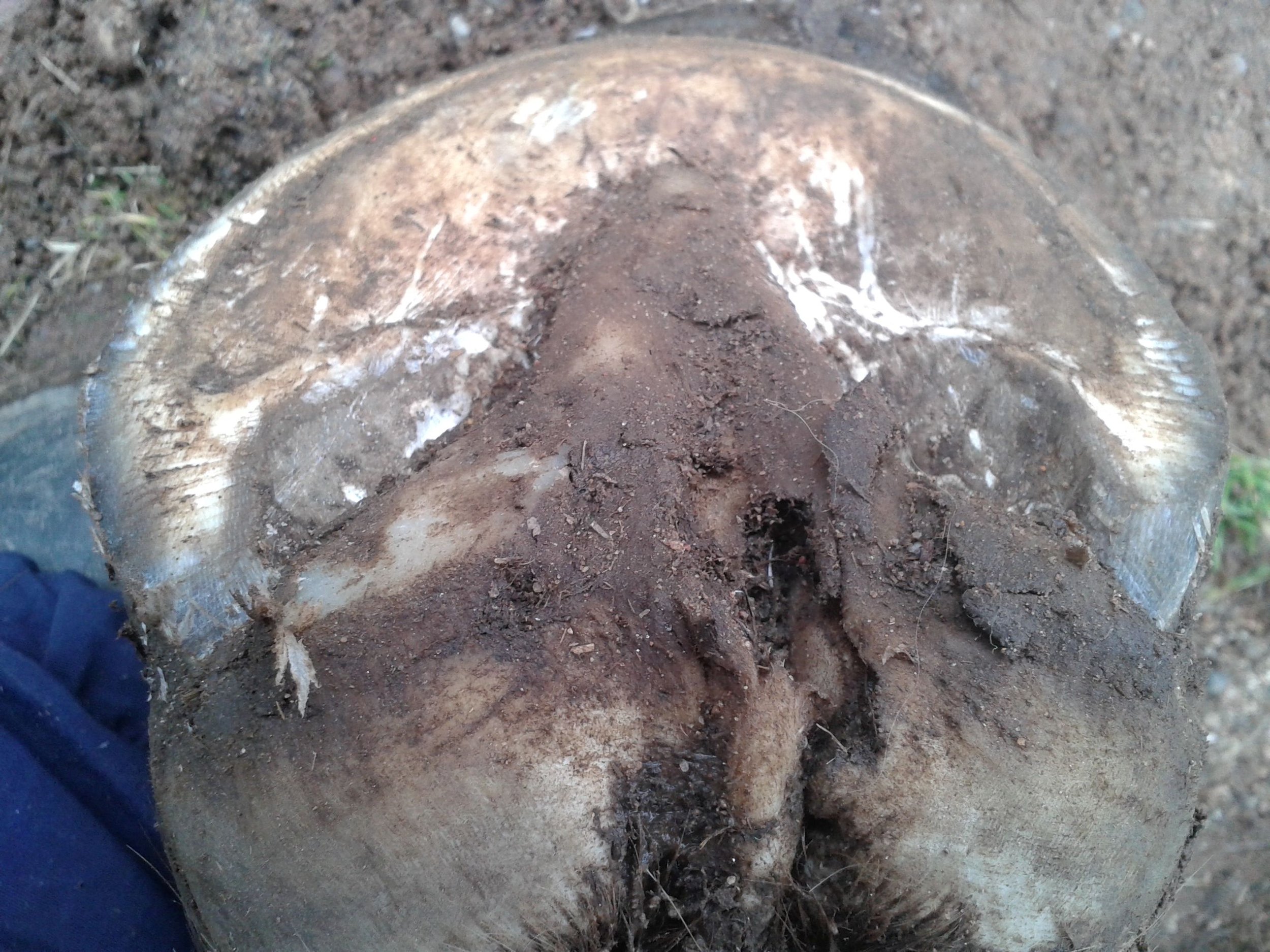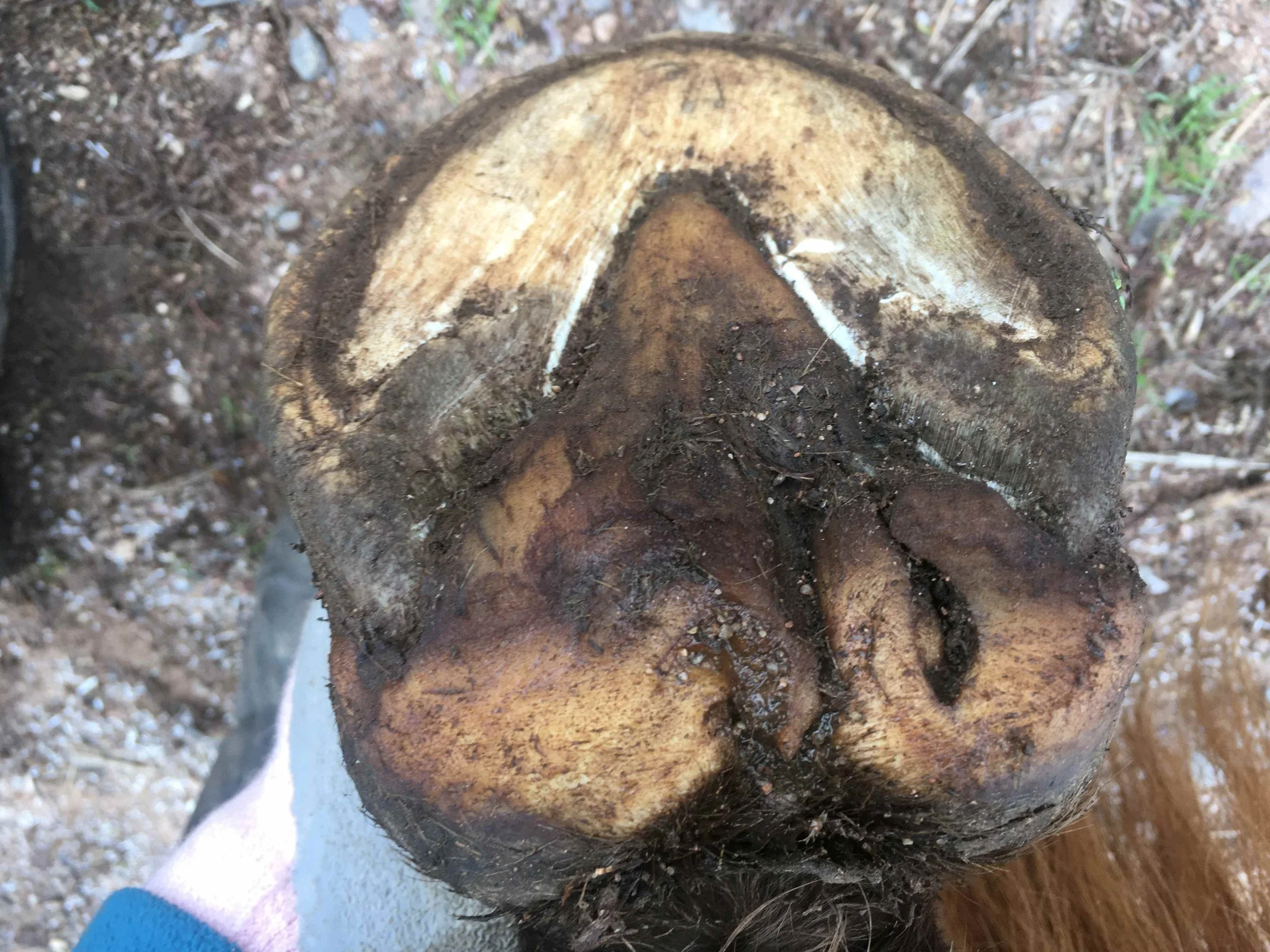 Right front pre-trim December 2020 — the “natural thumbprint” appeared in the centre of the frog