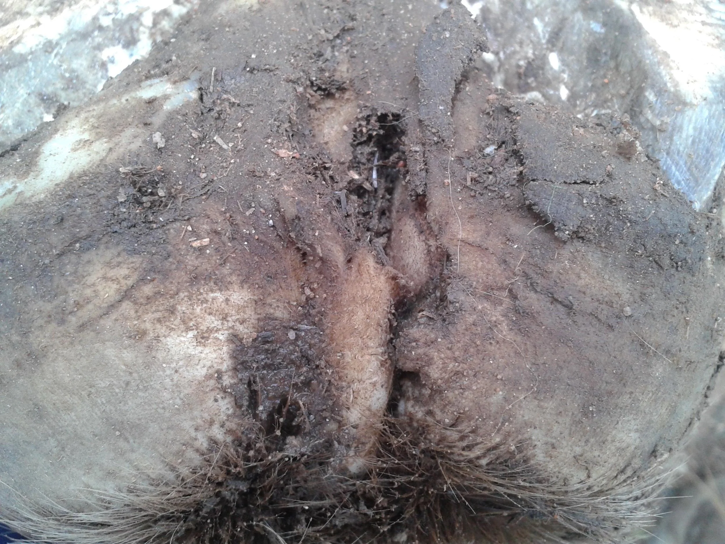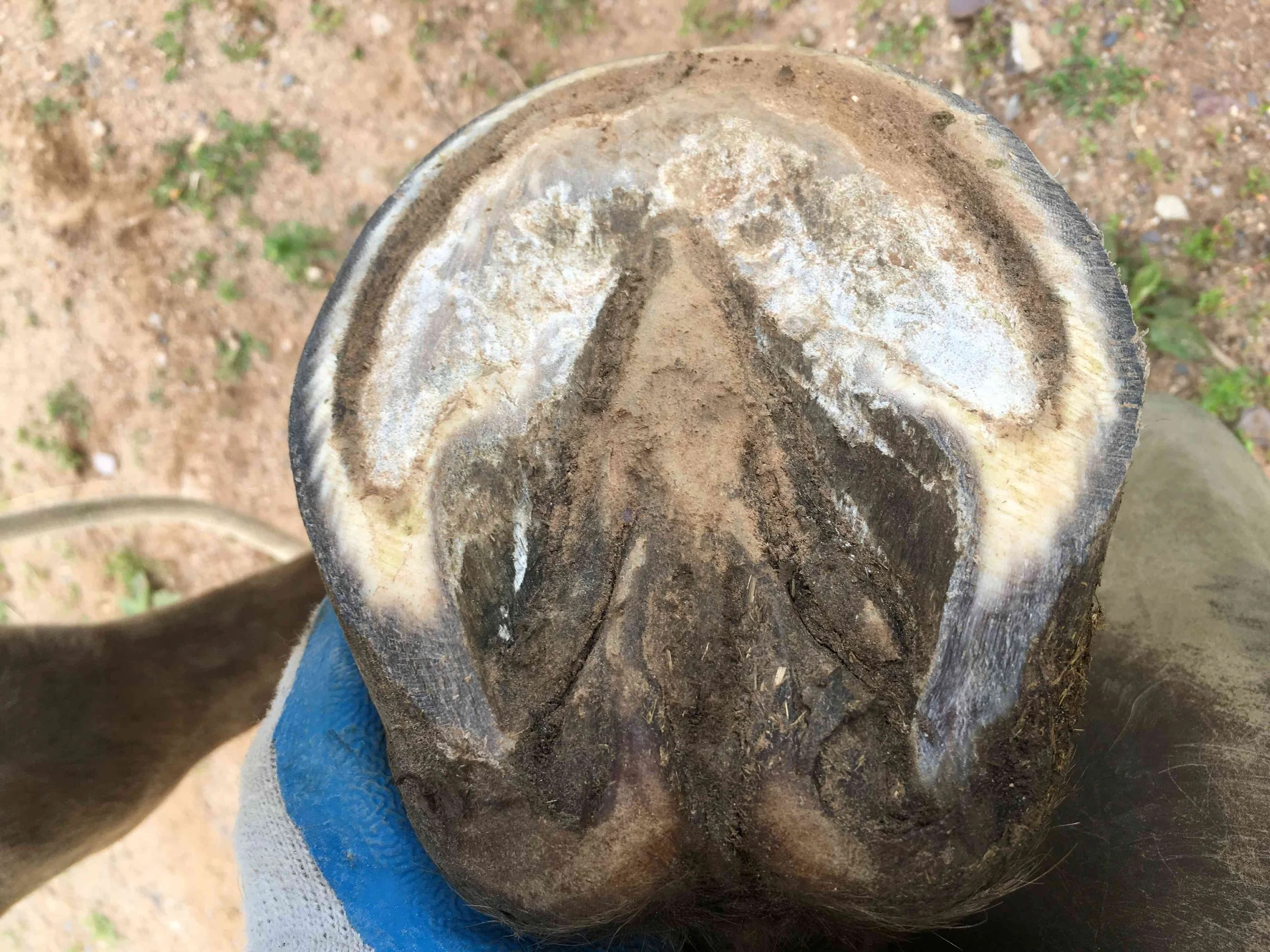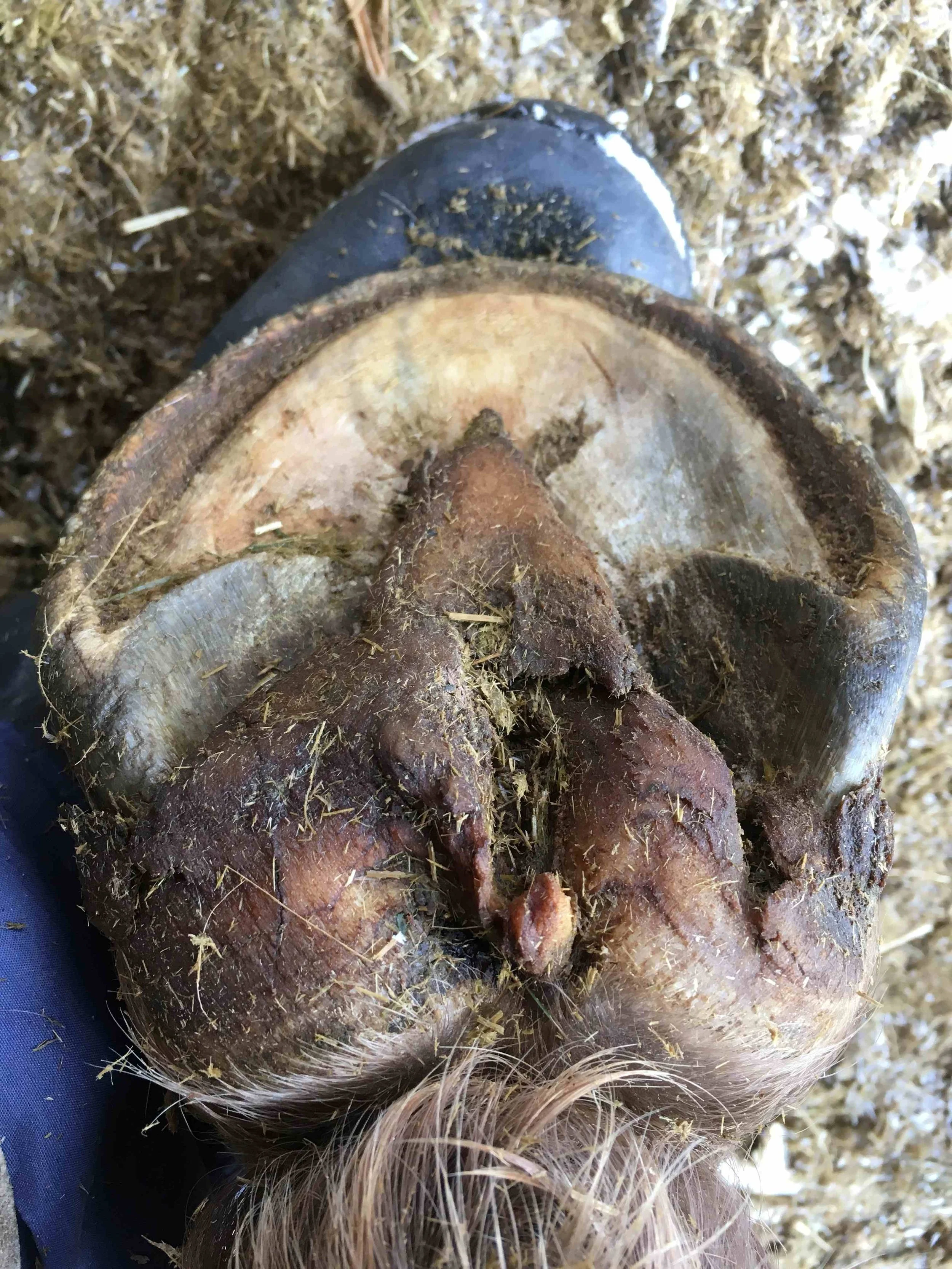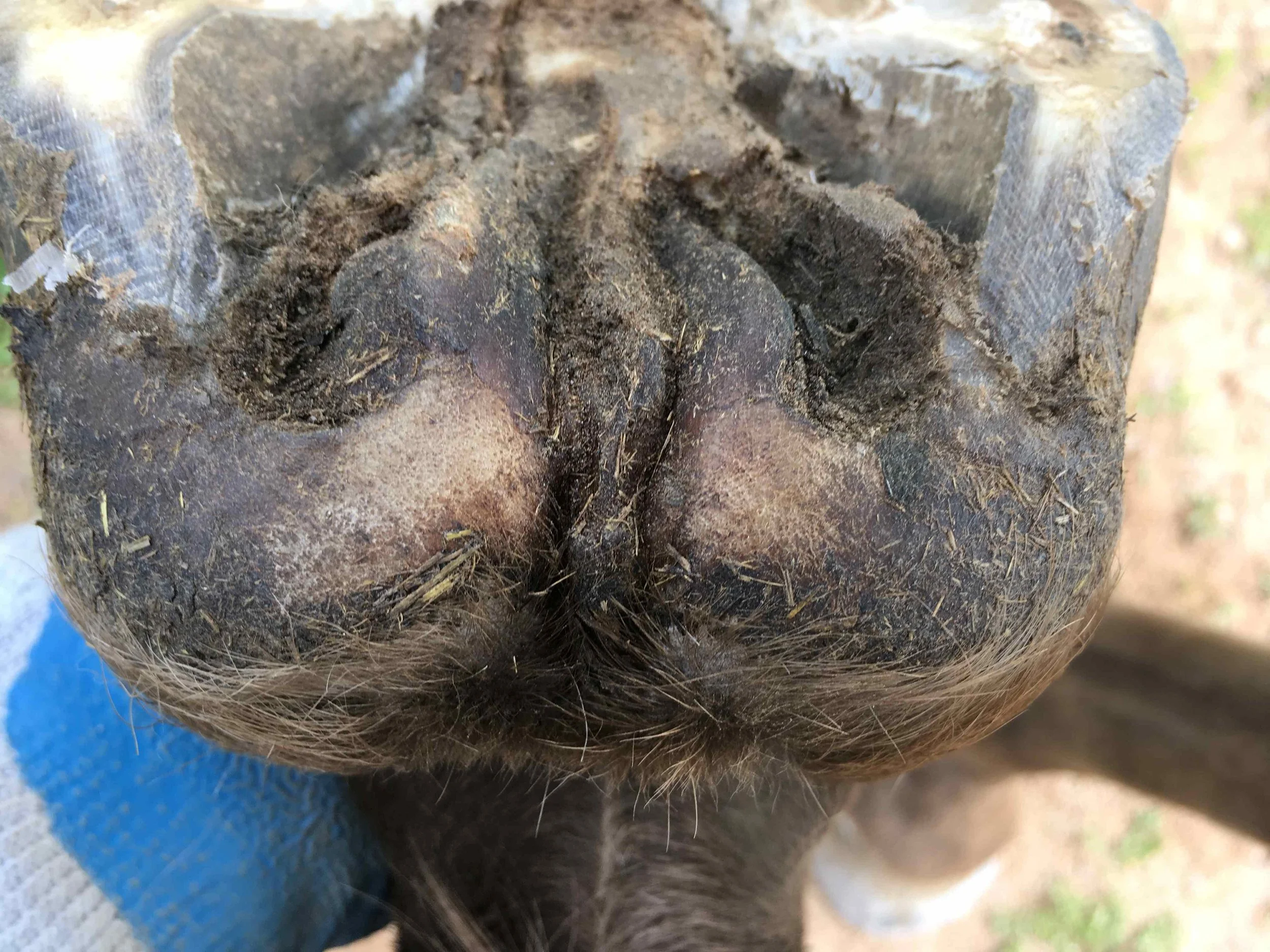 Right front pre-trim December 2020 — the “natural thumbprint” appeared in the centre of the frog