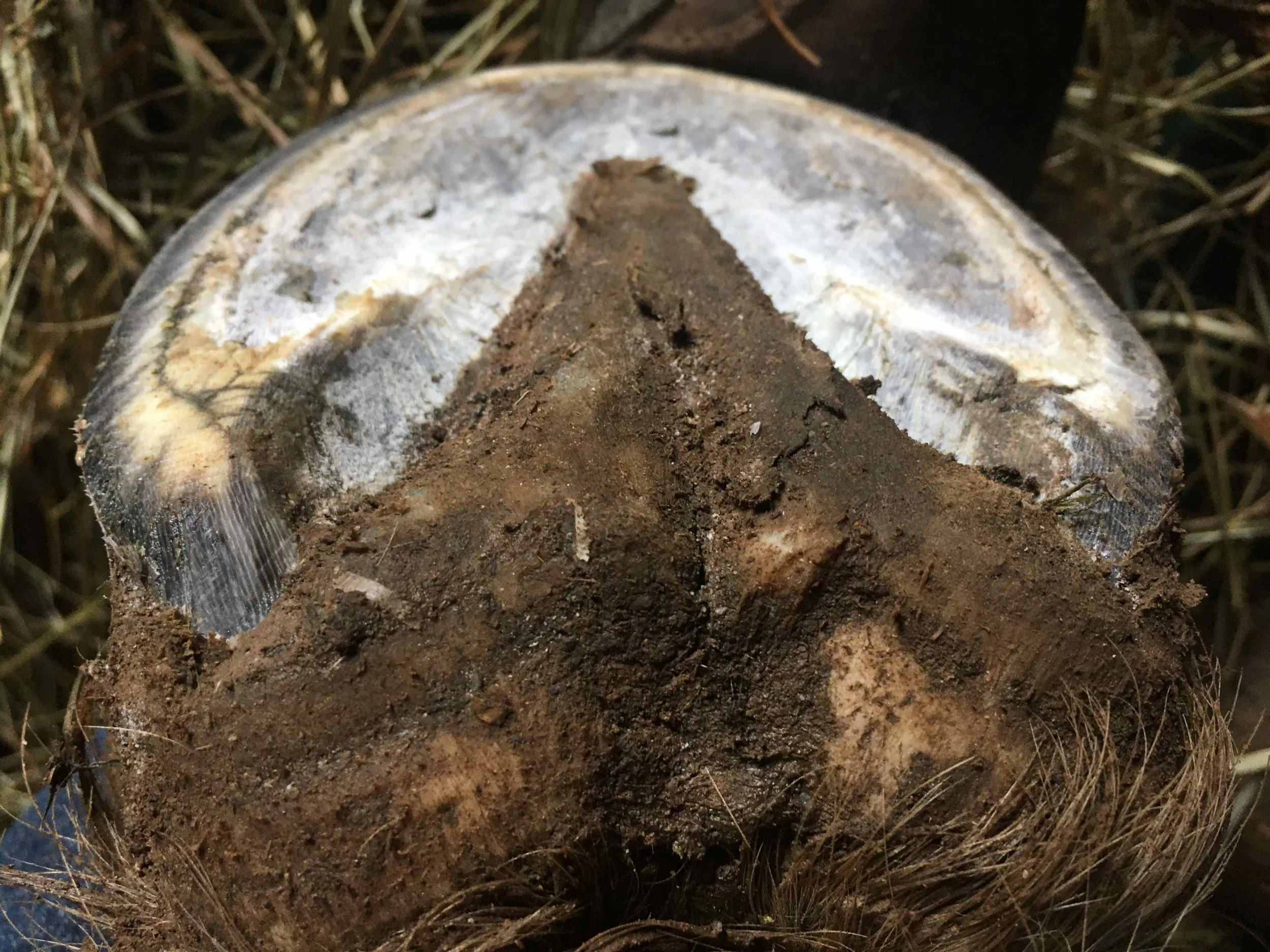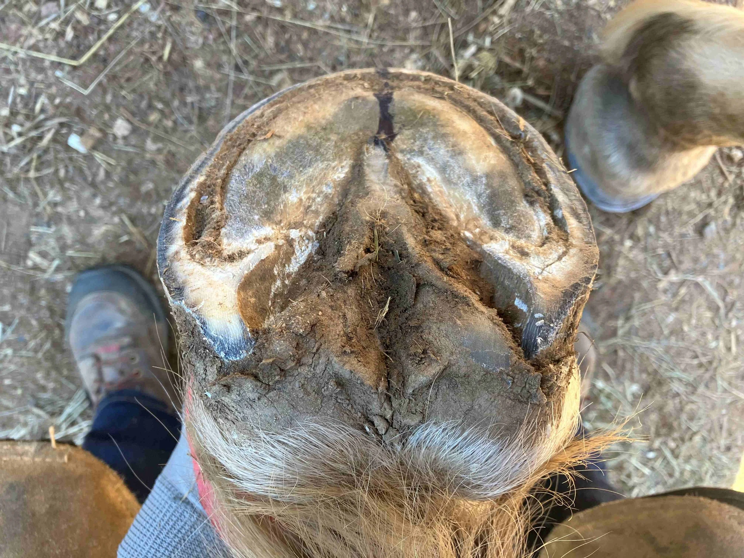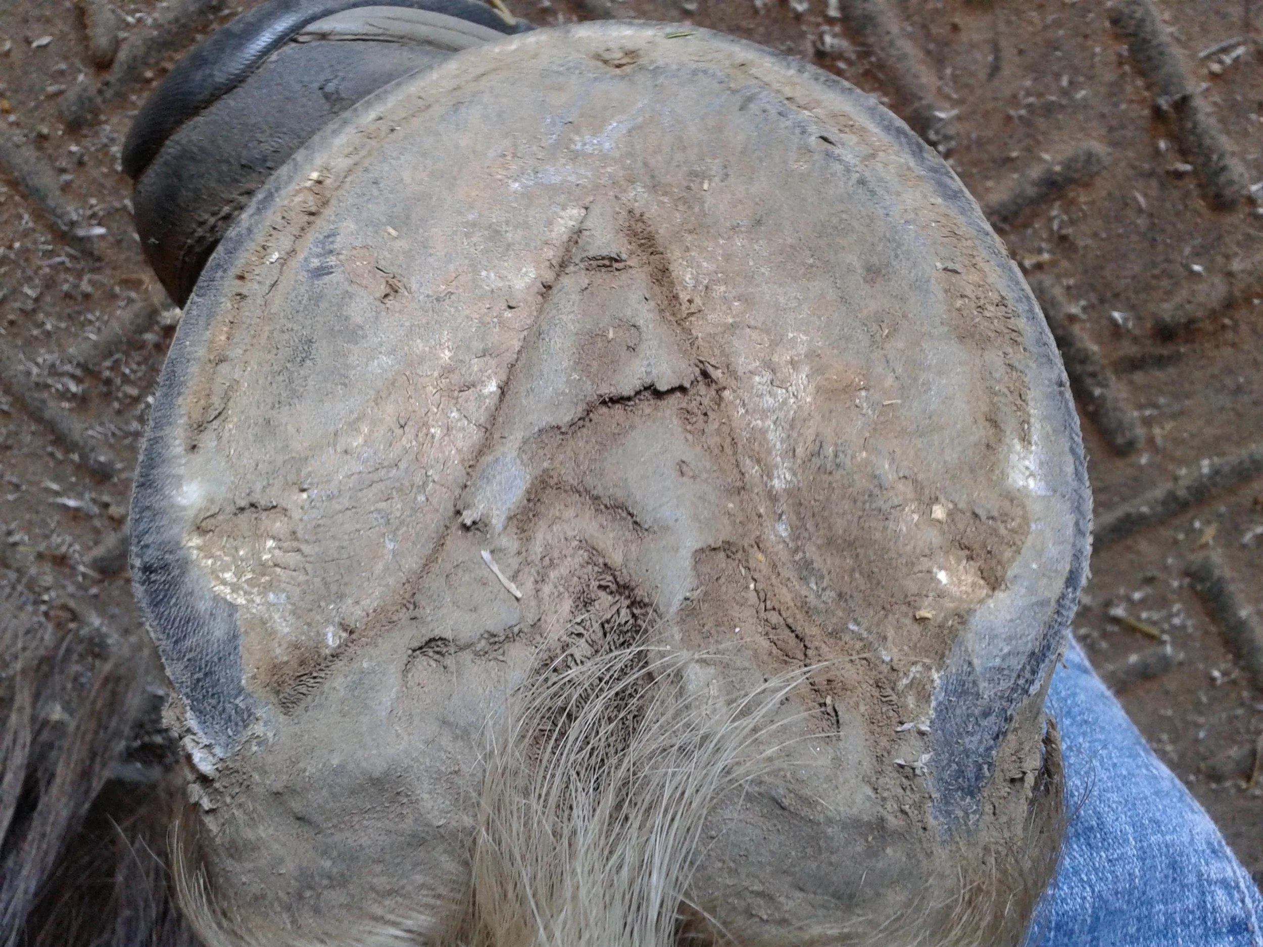 Over the course of five years the gelding established healthy heel/bar triangles; developed bulbs as well as internal structures and healed the atrophied parts of his hooves as much as our time together allowed. His soles were a lot less bruised. His hooves naturalized and enlarged in hoof mass.