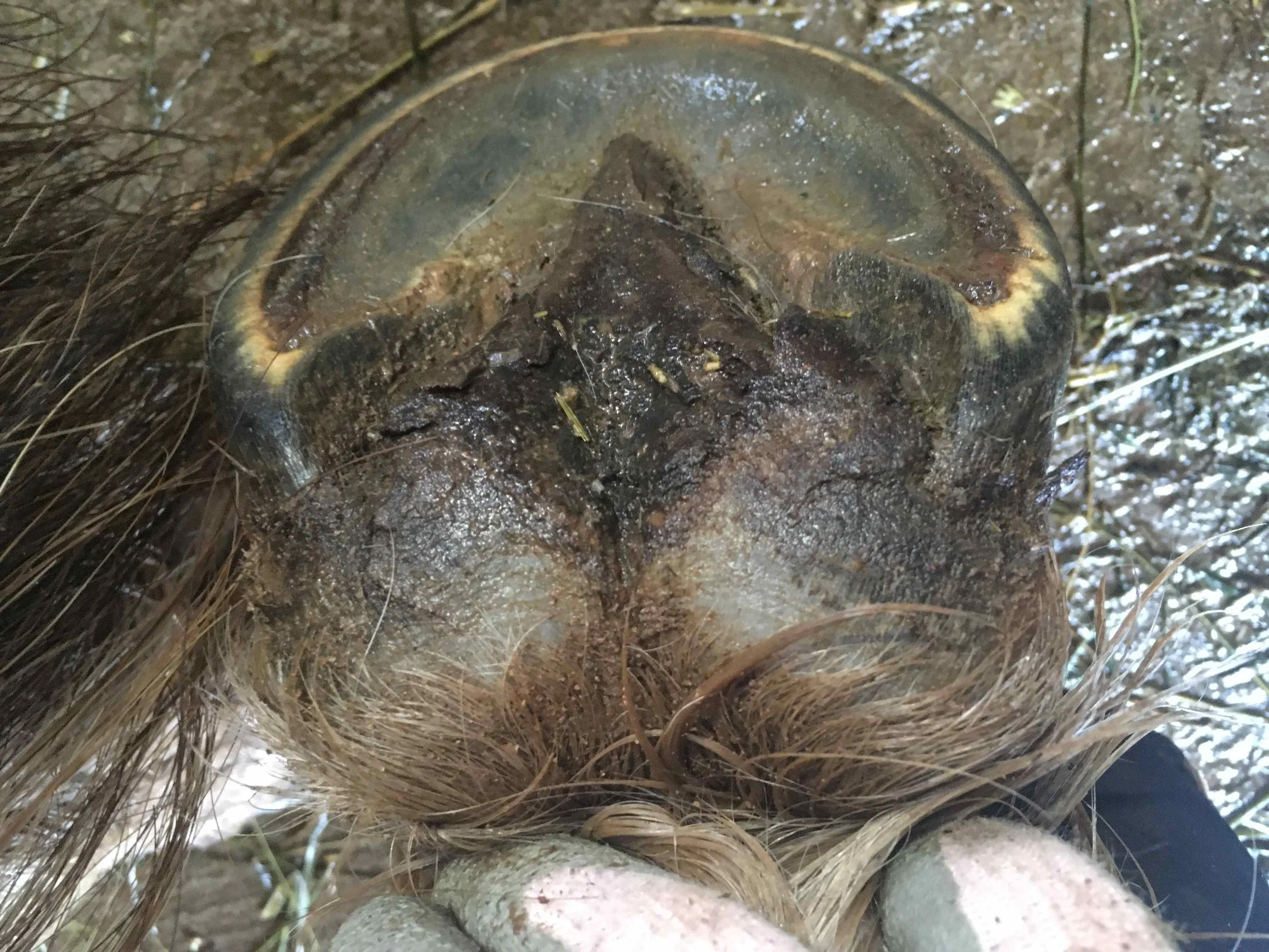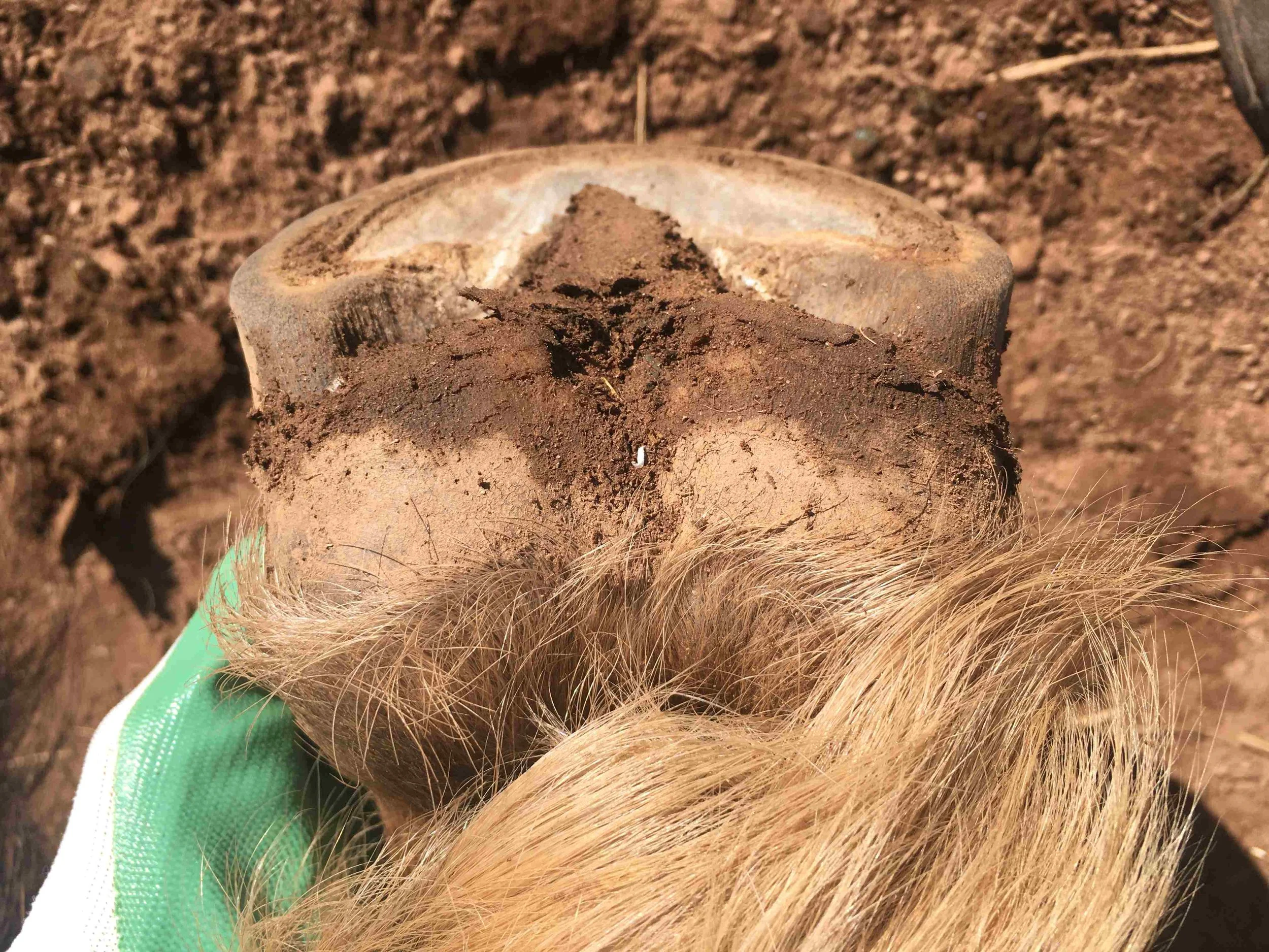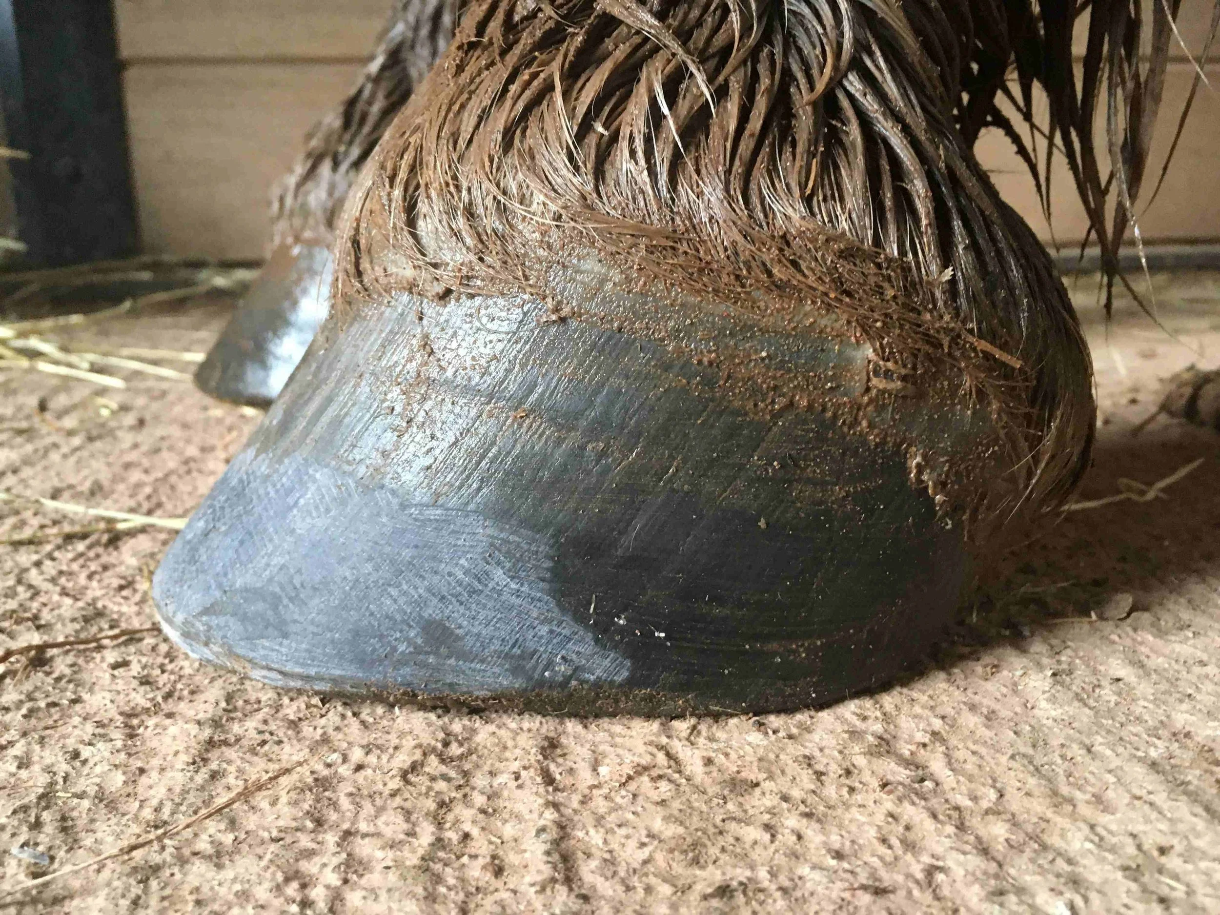 Over the course of five years the gelding established healthy heel/bar triangles; developed bulbs as well as internal structures and healed the atrophied parts of his hooves as much as our time together allowed. His soles were a lot less bruised. His hooves naturalized and enlarged in hoof mass.