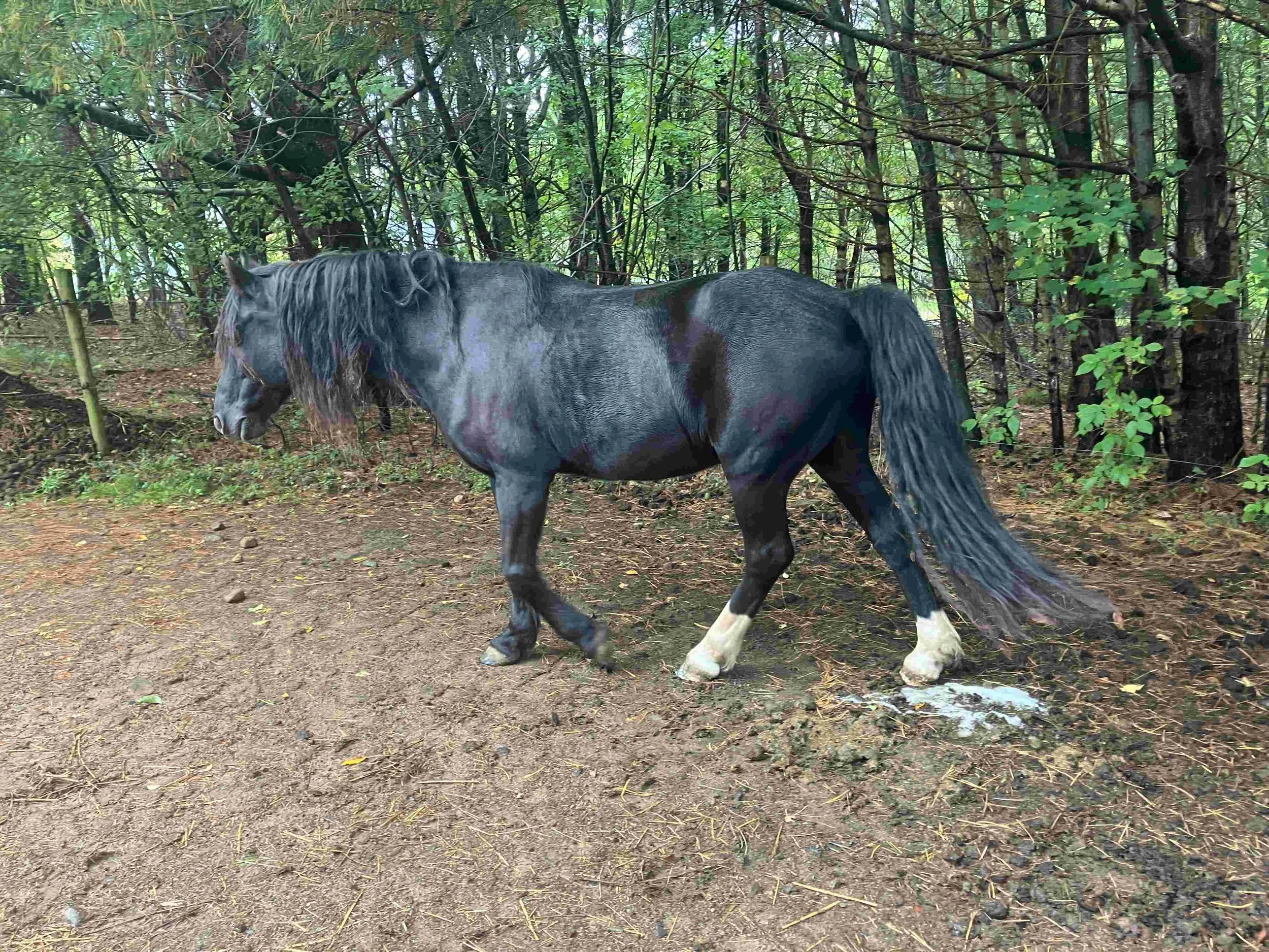 Scotia and Nolly moved to a new home in 2025. They are able to continue their life with 24/7 freedom in a natural environment and the company of a third horse.