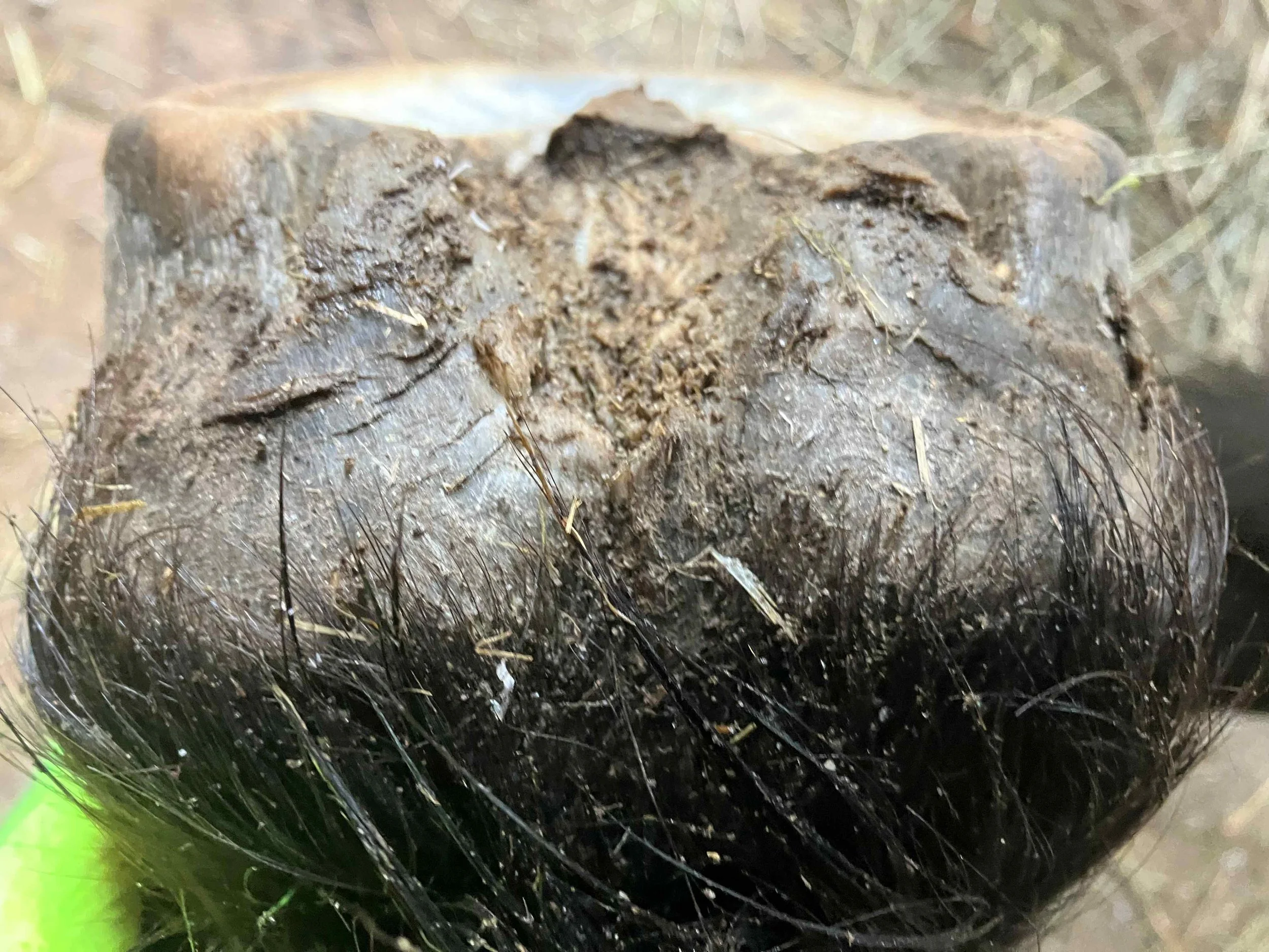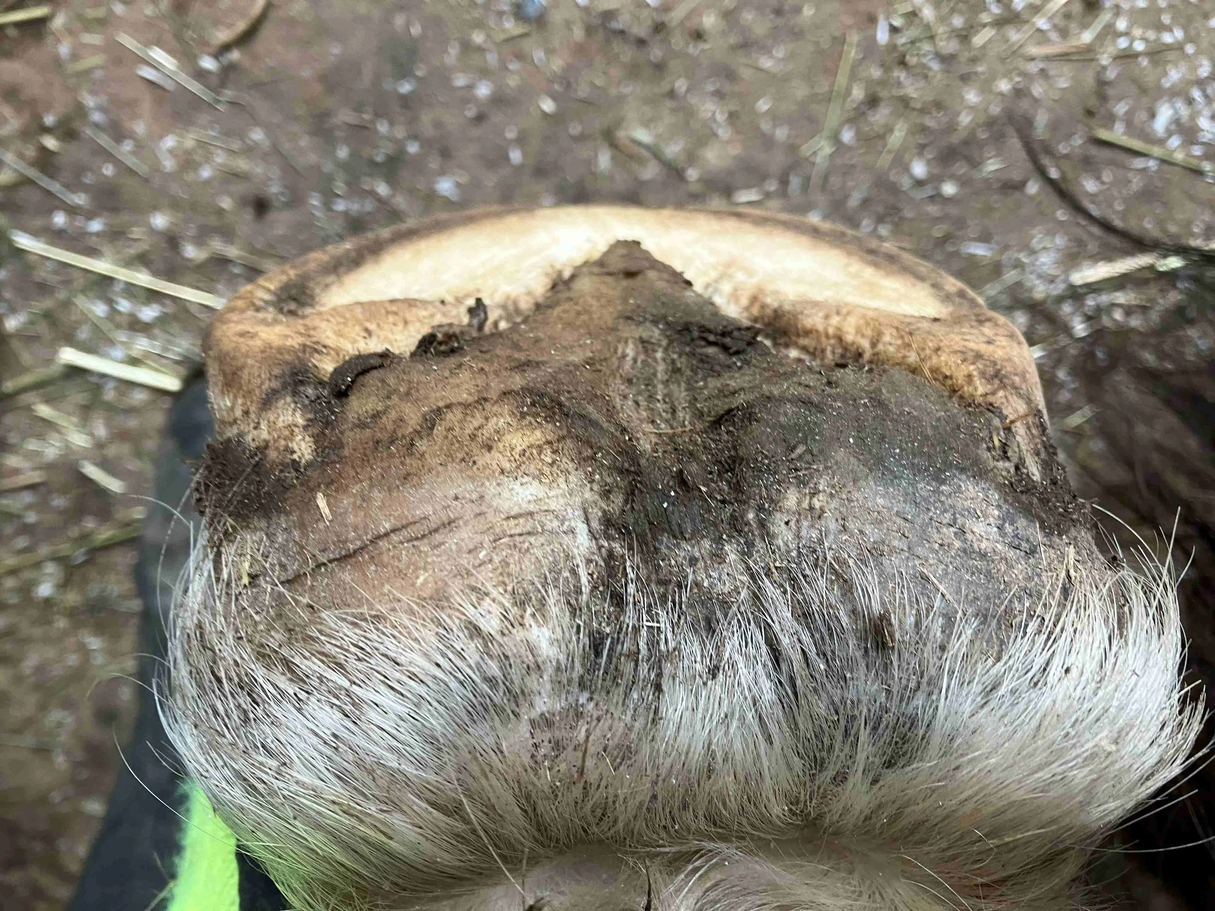 Left hind pre-trim November 2023 — the central sulcus of the frog is pretty much filled