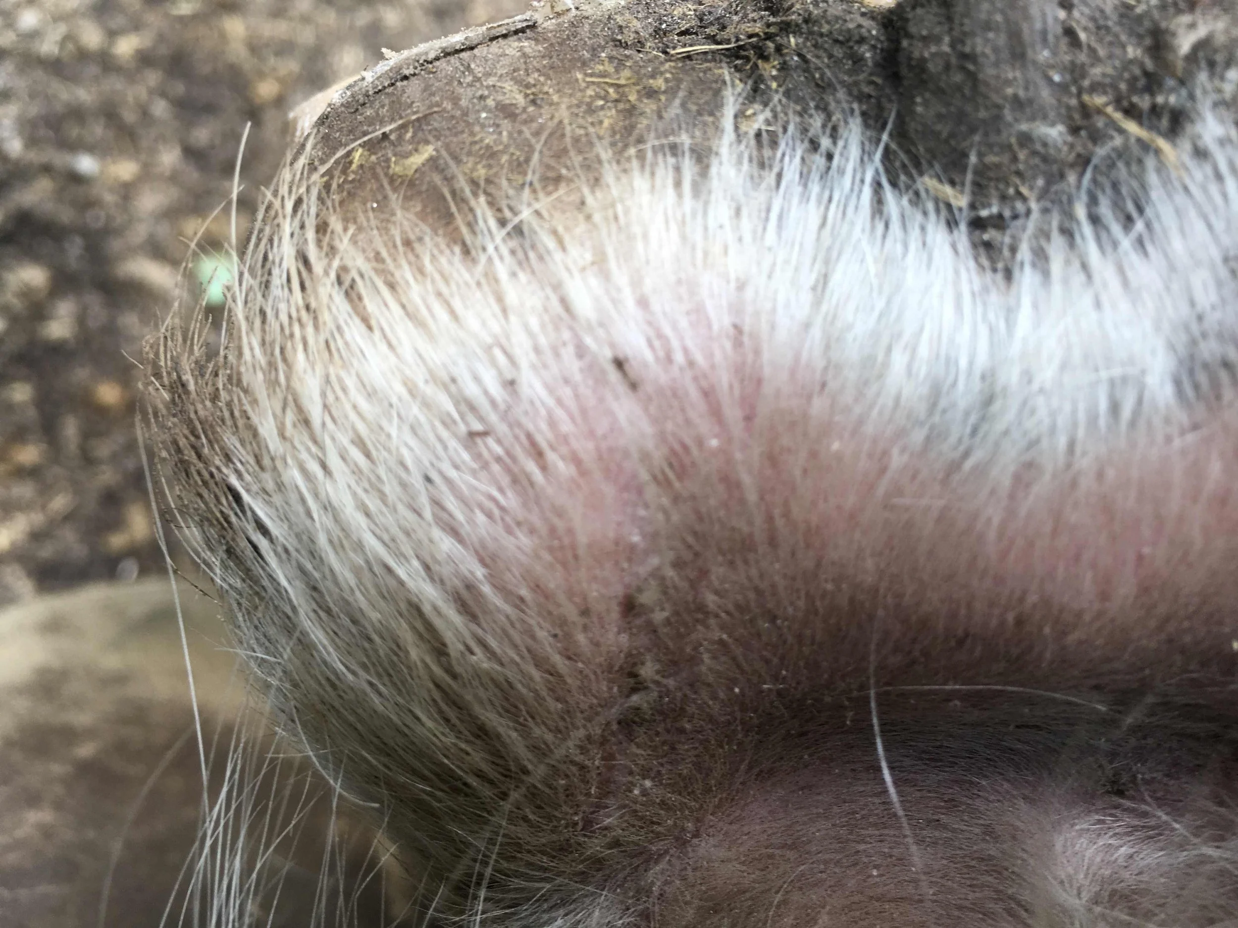 Left hind pre-trim November 2023 — twelve weeks after the last trim