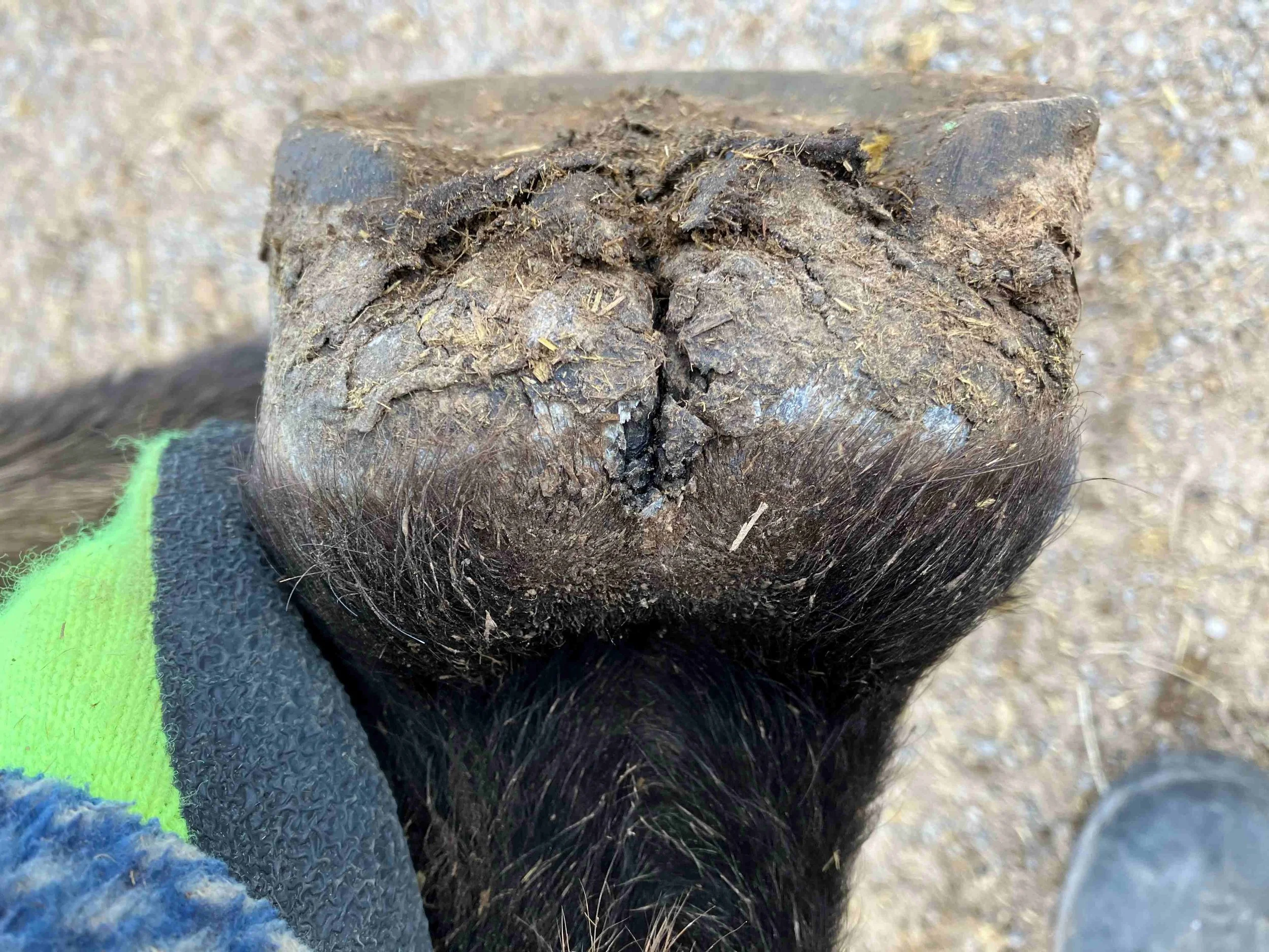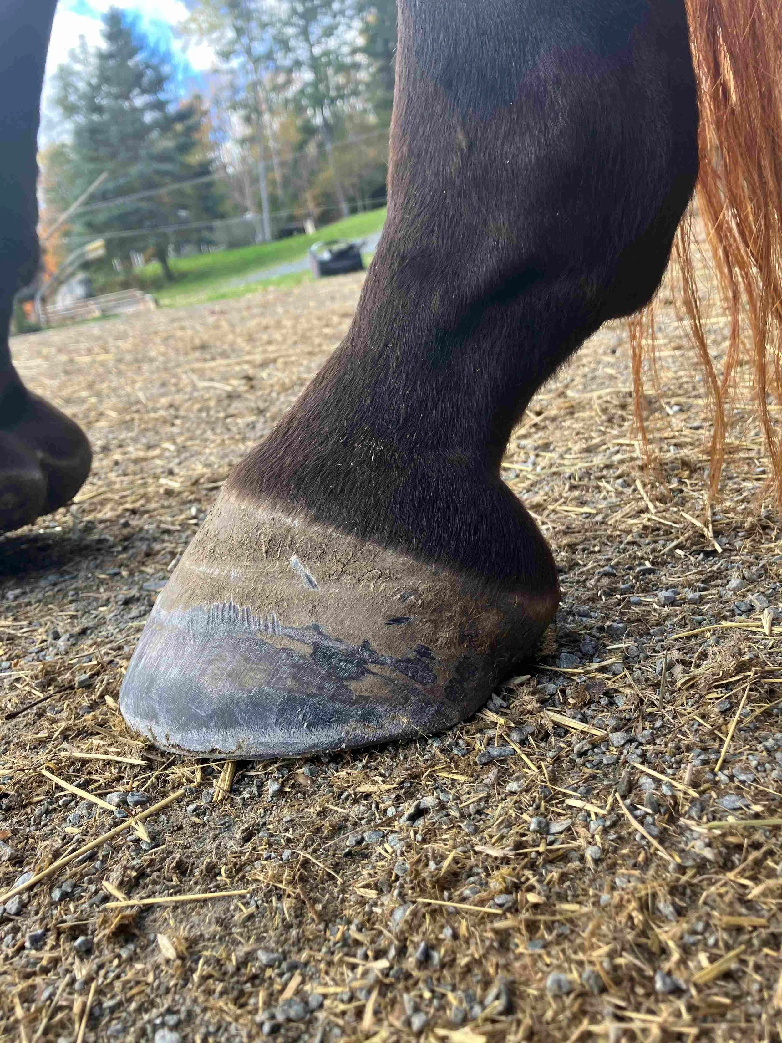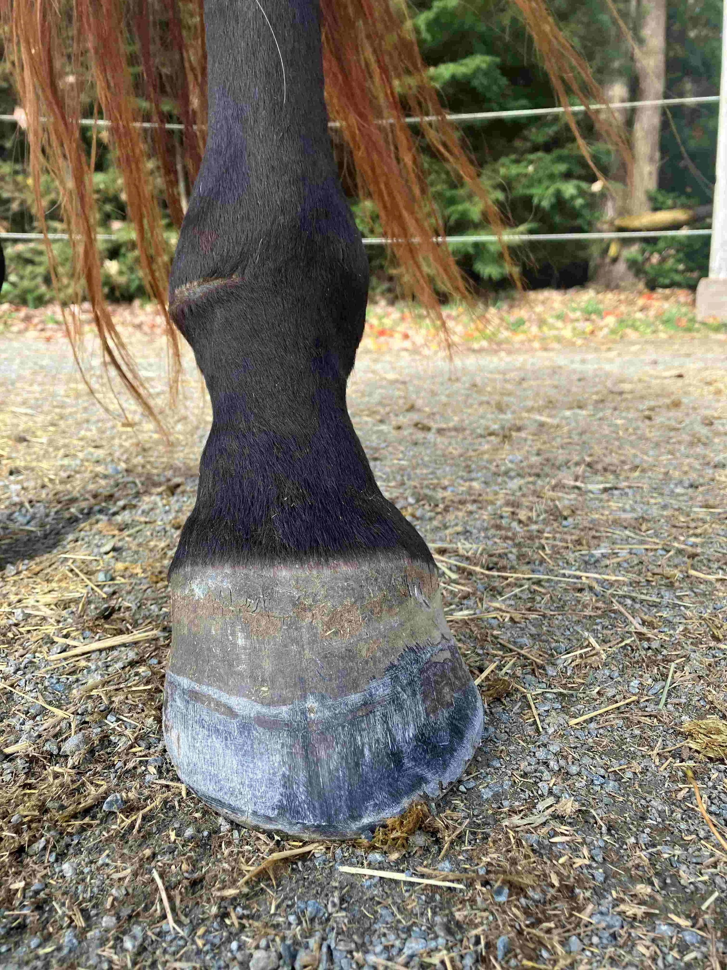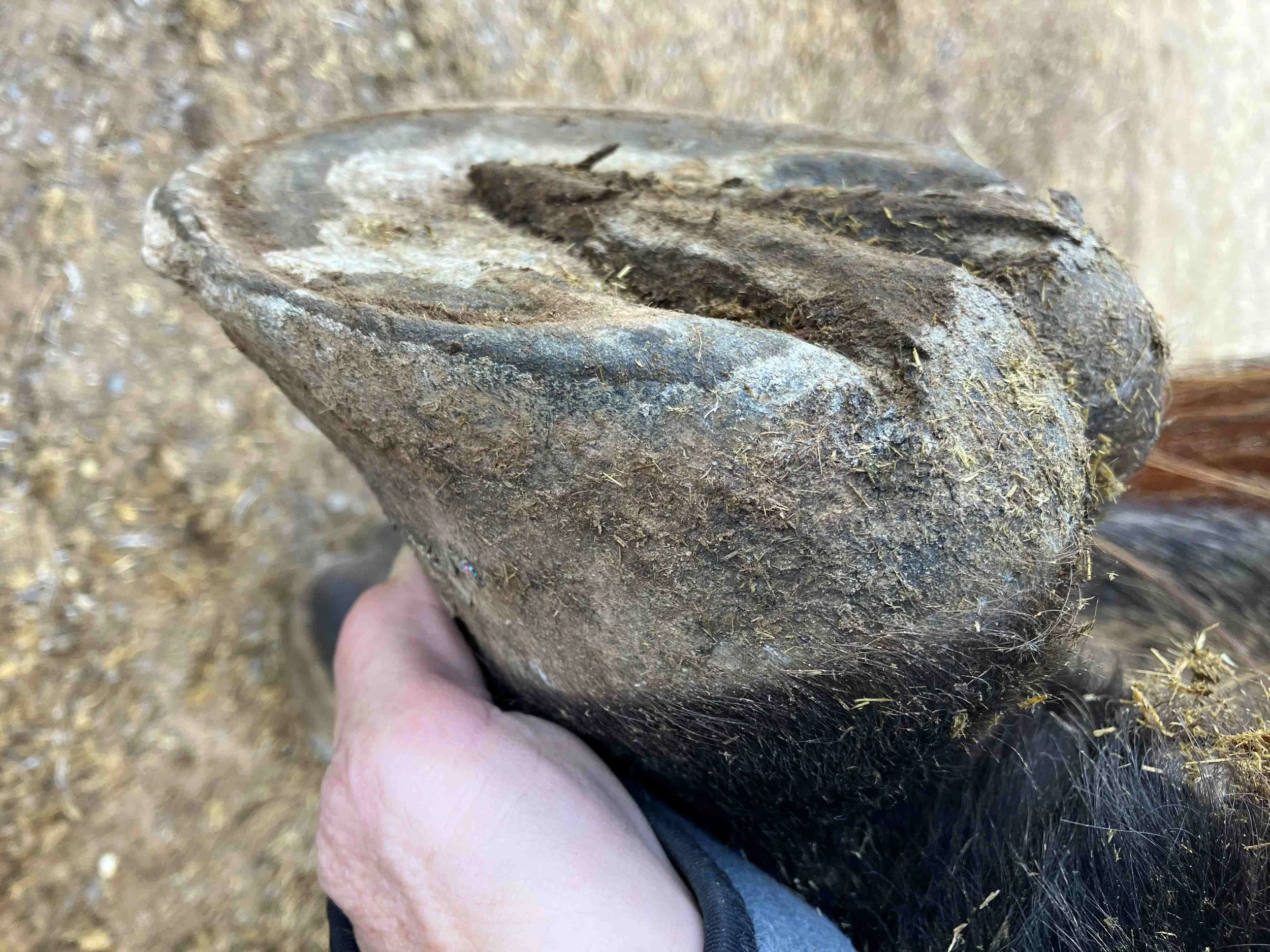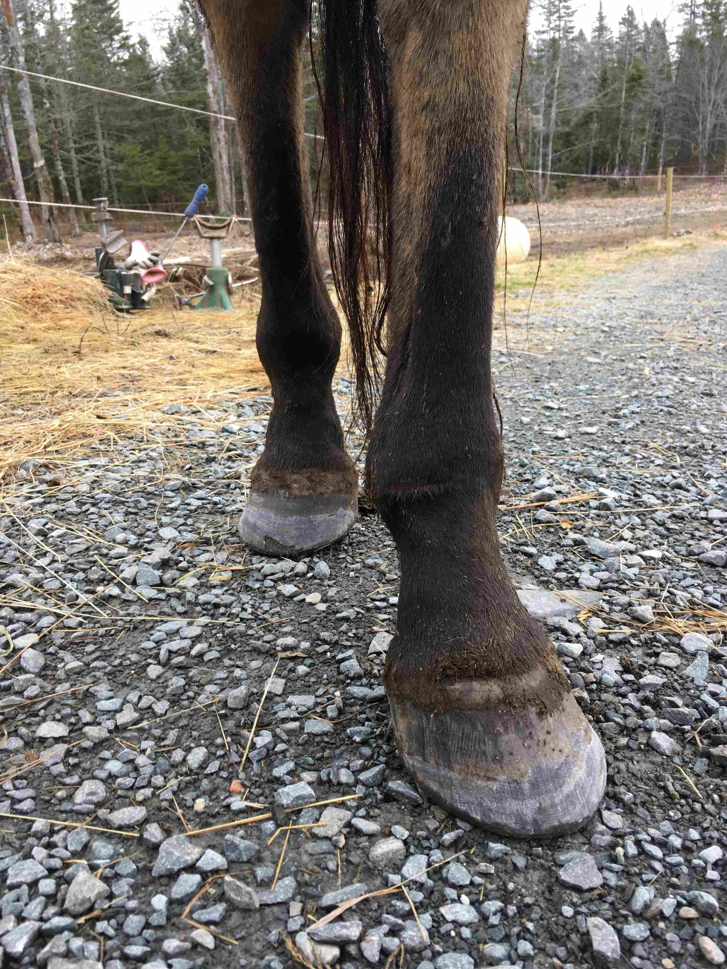 Right hind pre-trim November 2023 — six weeks after the last trim