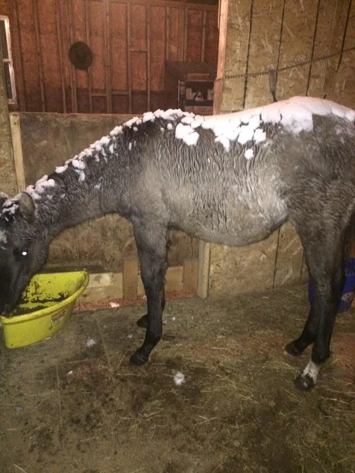 My client bought a gorgeous looking, well-muscled Quarter Horse colt from out west over the internet. When her horse arrived in Nova Scotia as a weanling she was shocked about his looks. His body changed so much from what the photos were showing.
