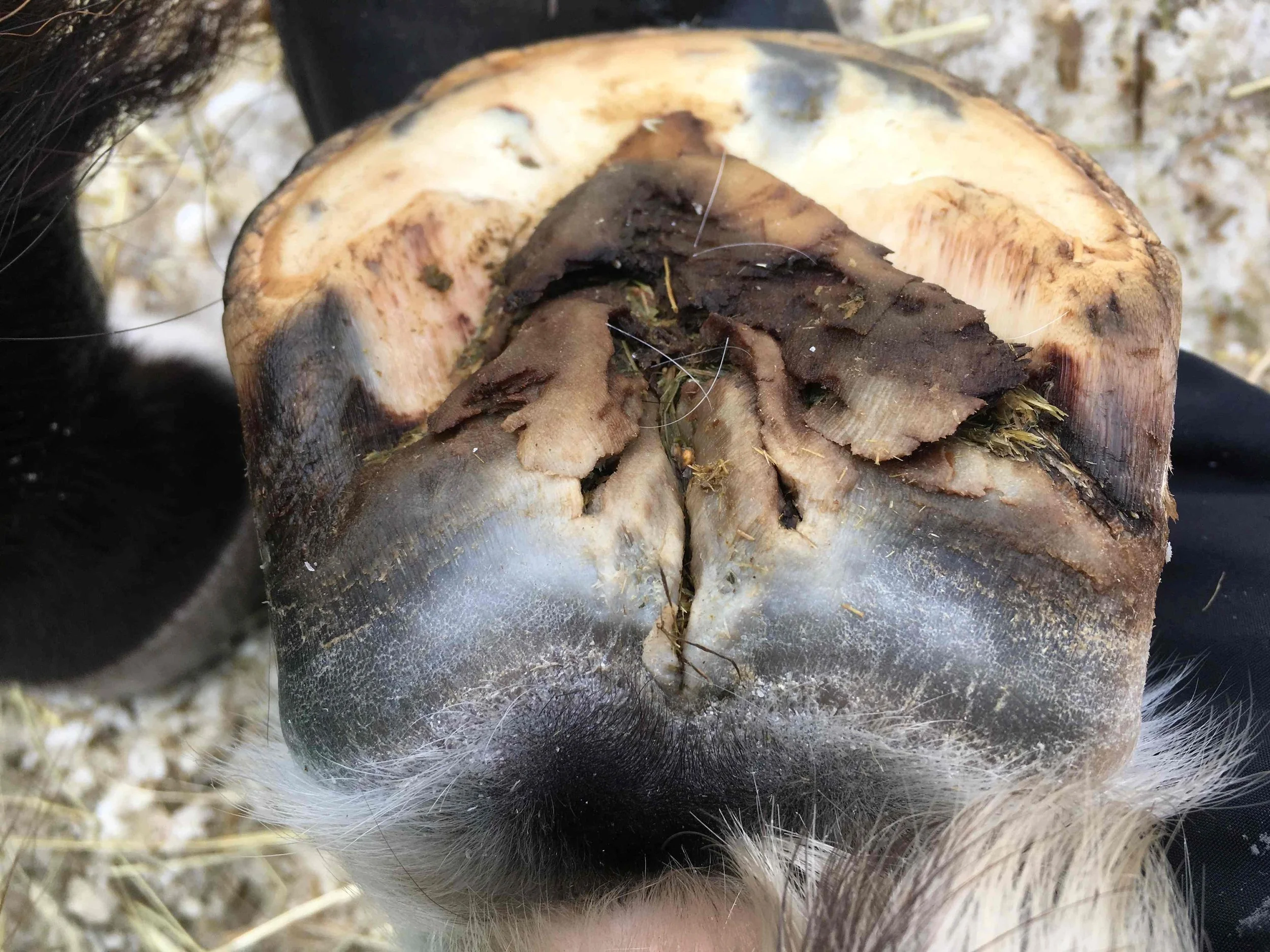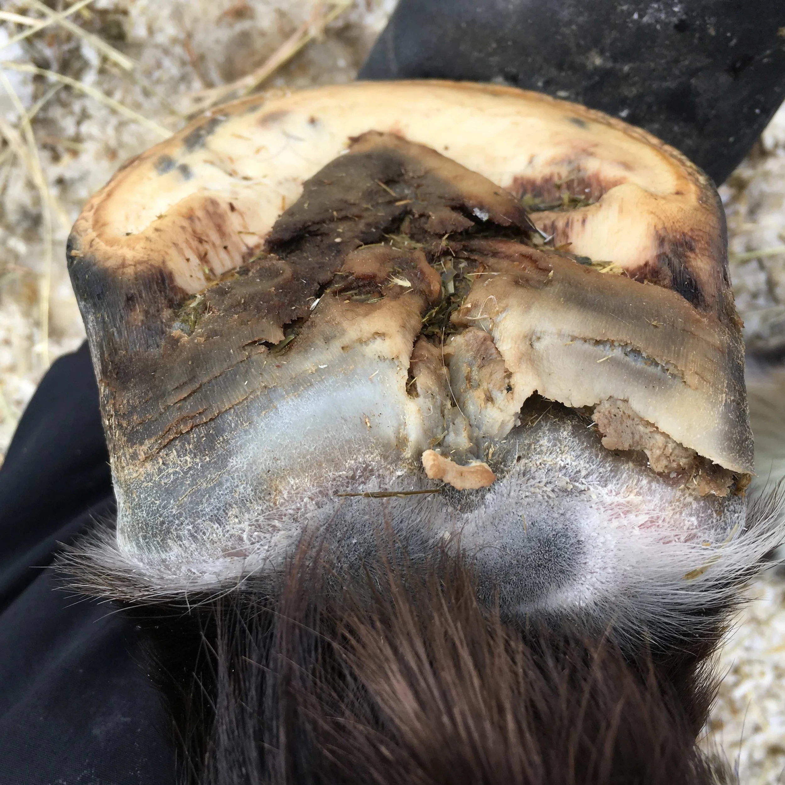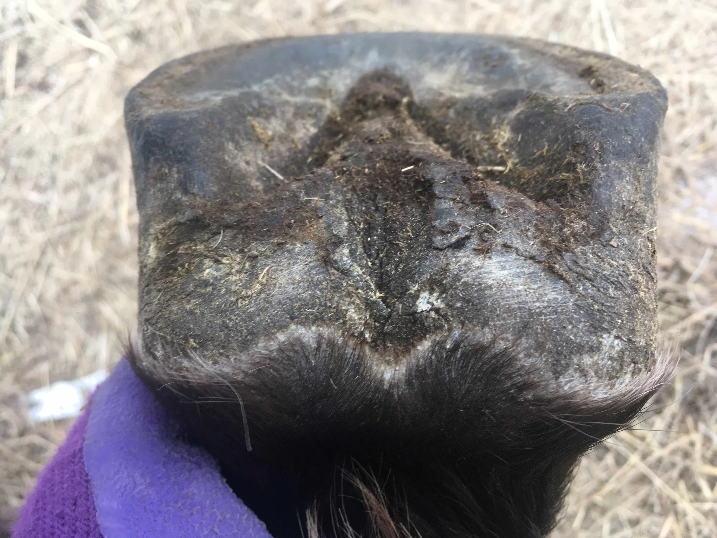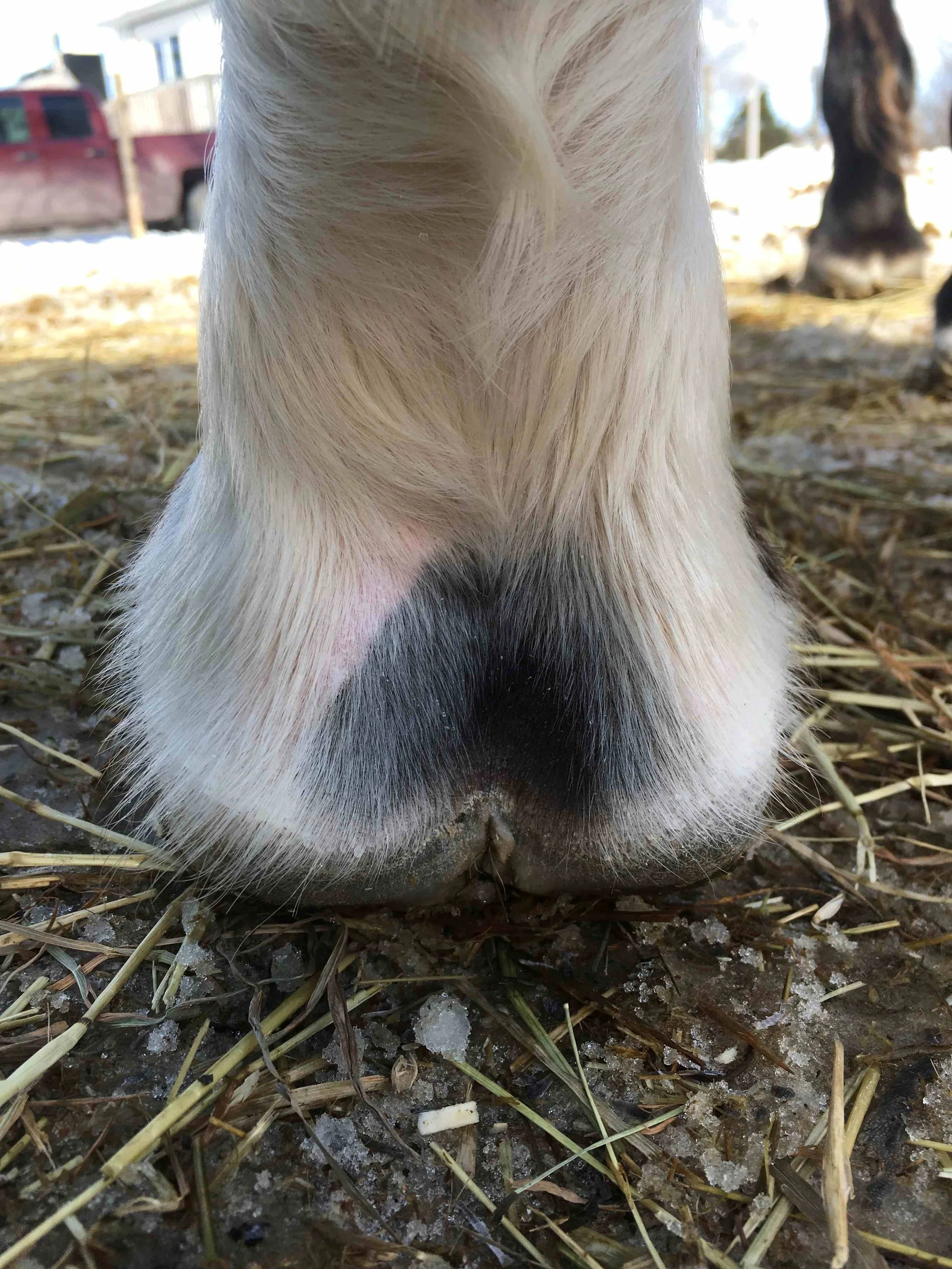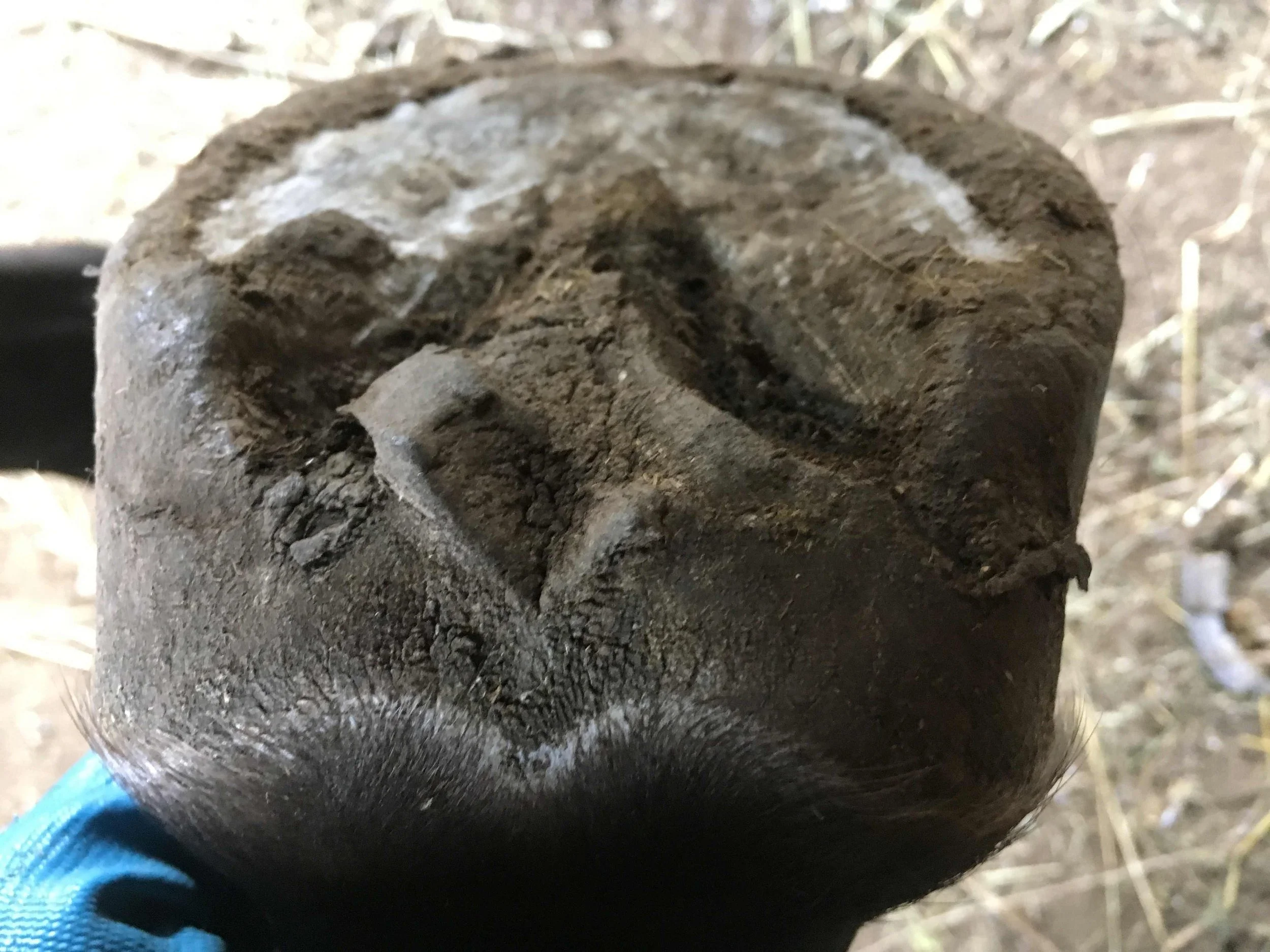 August 2019 — the back of the hooves supporting the bone column of the legs
