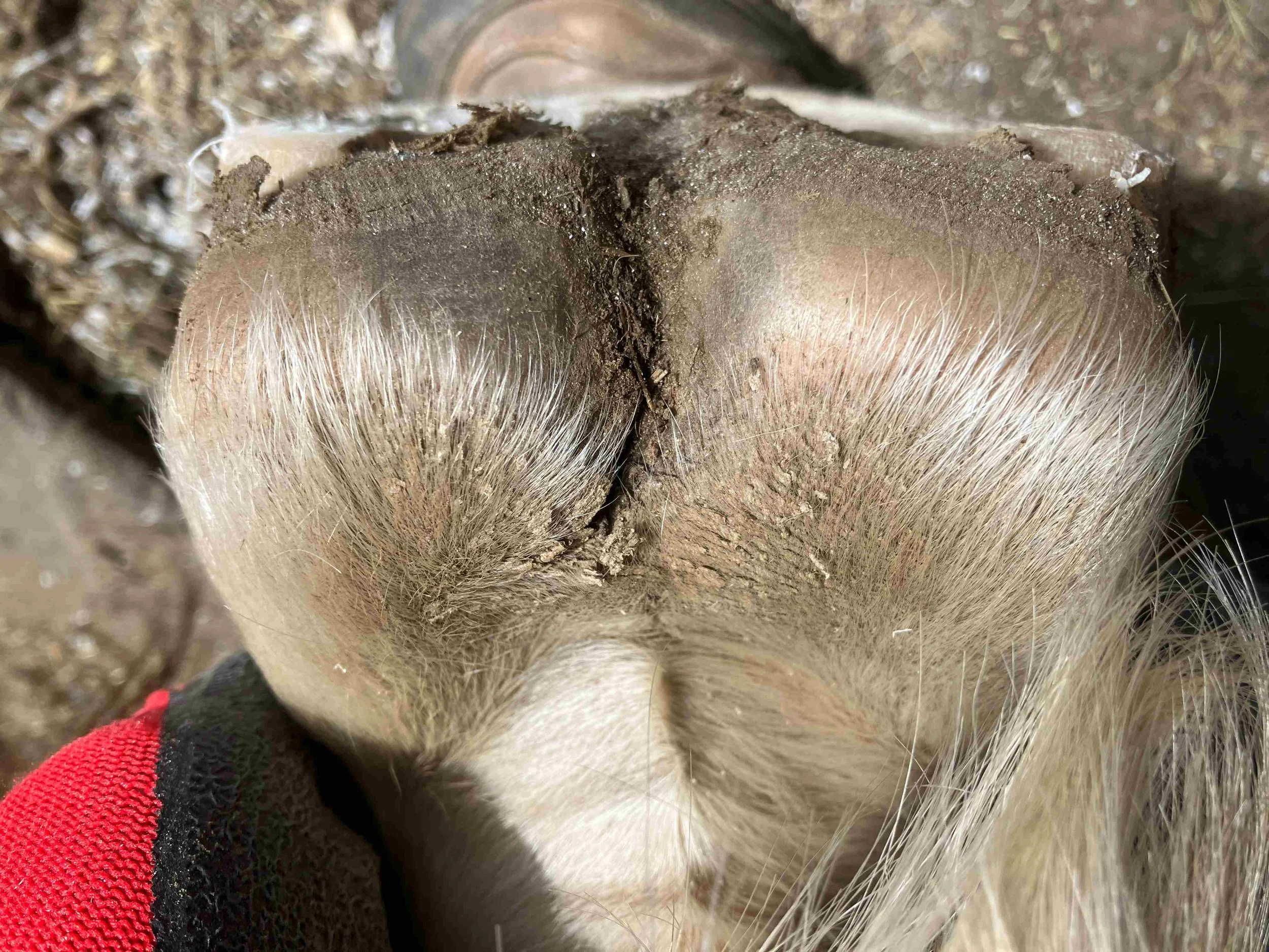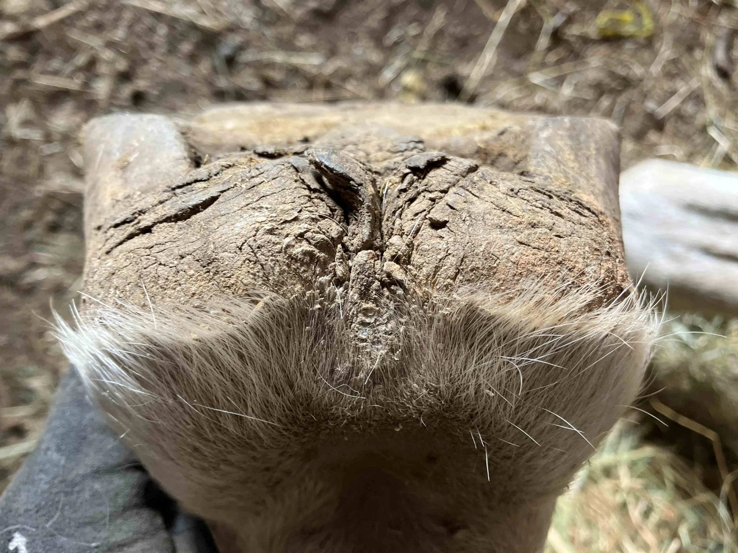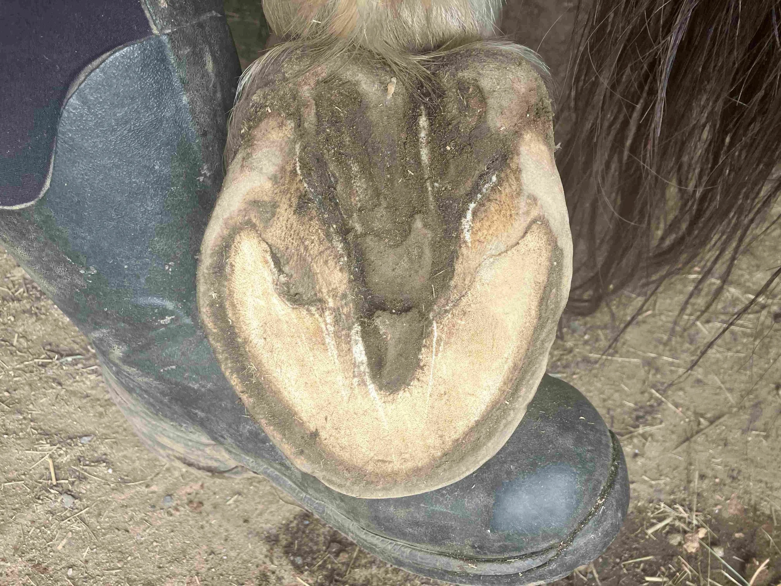 Left hind post-trim June 2024 — as the soft tissue of heel bulbs and frog expand in mass = the fold is changing