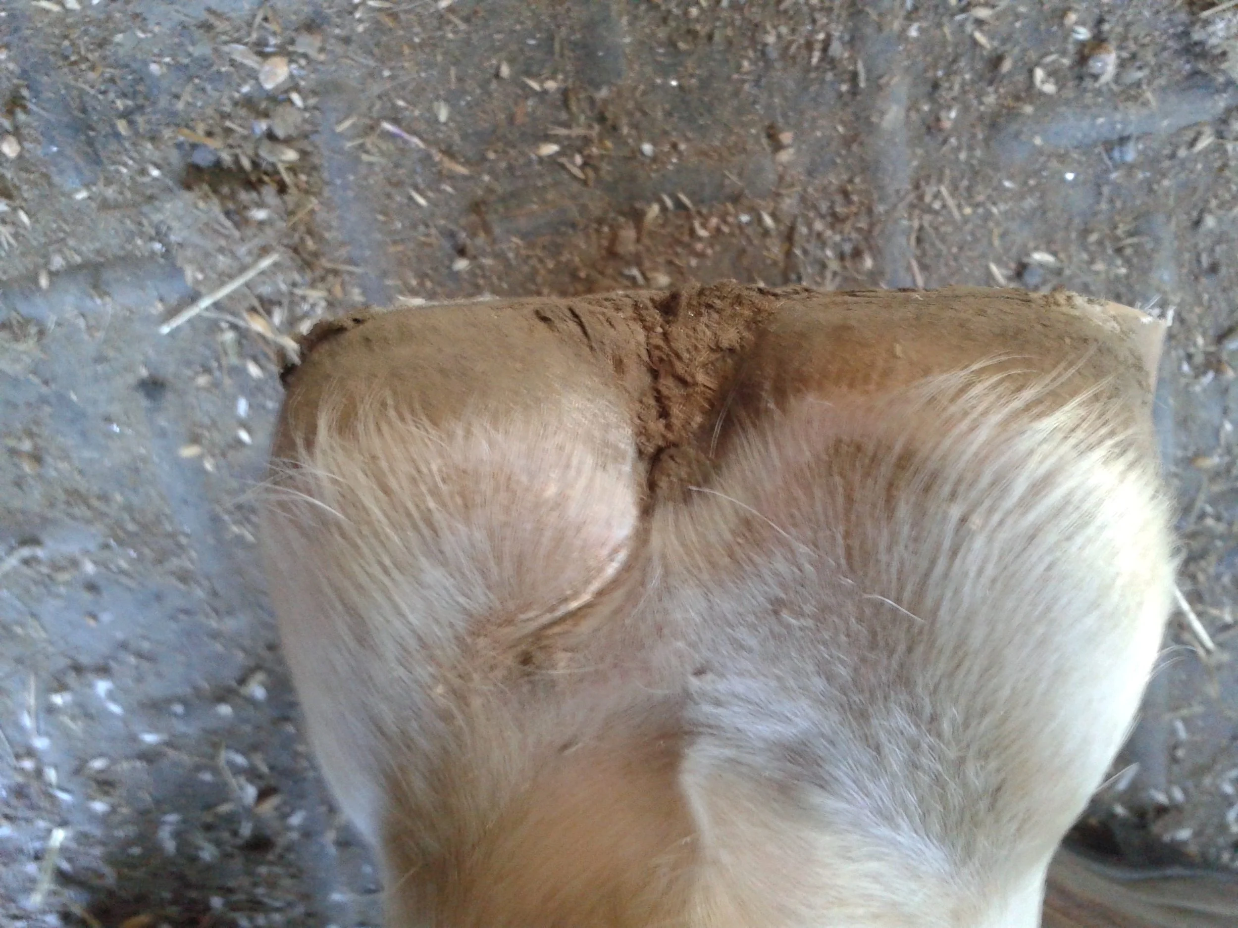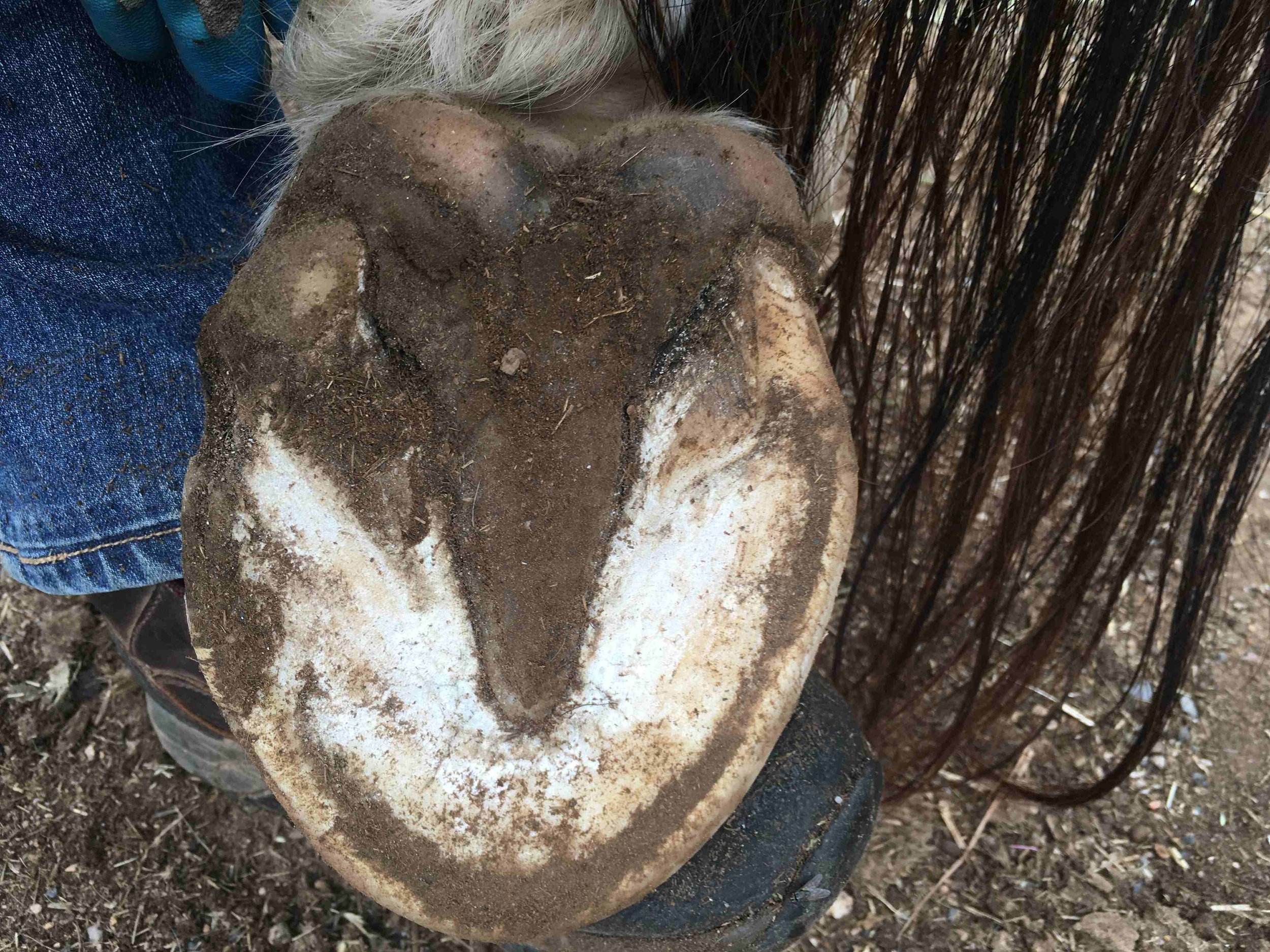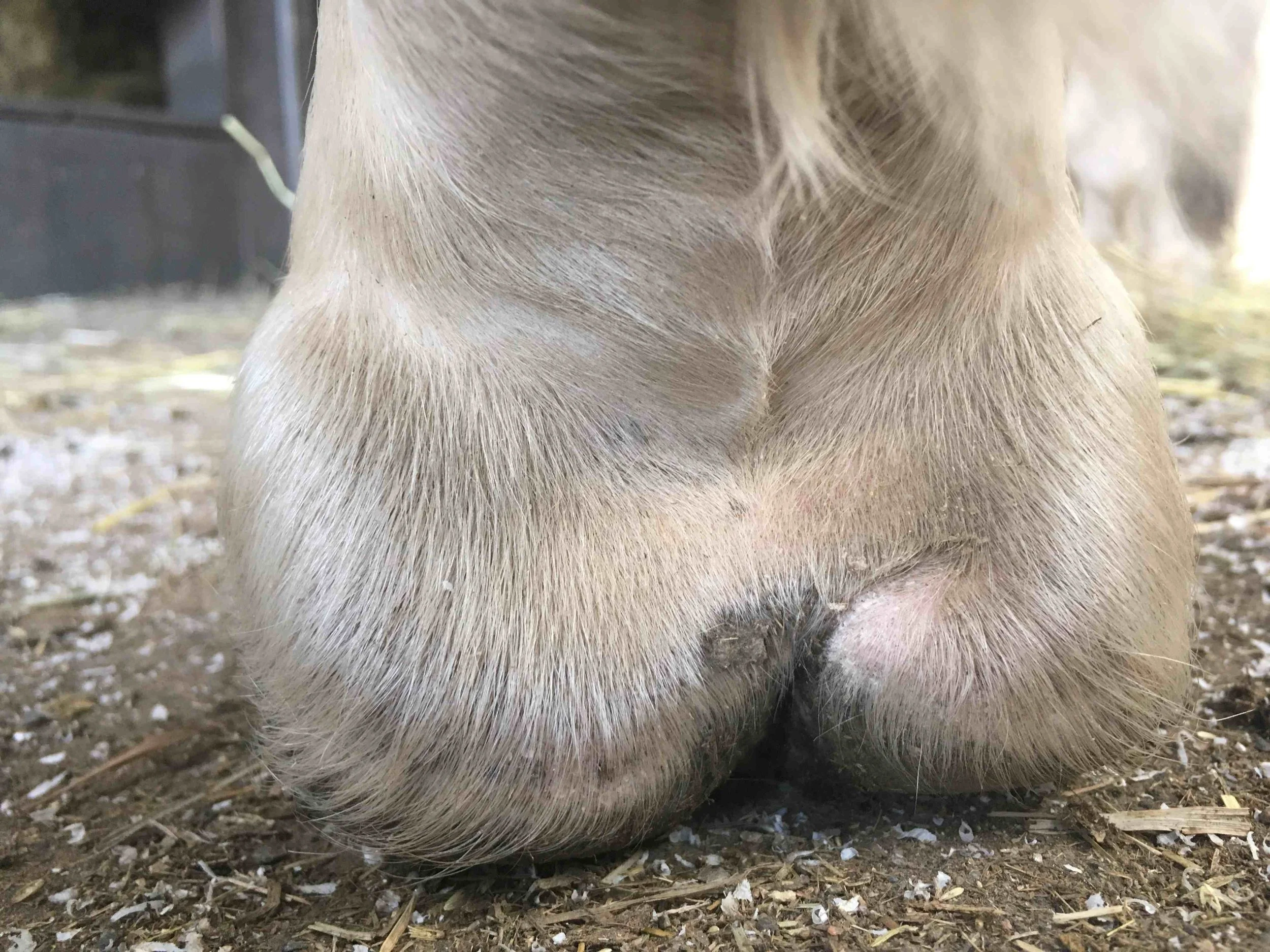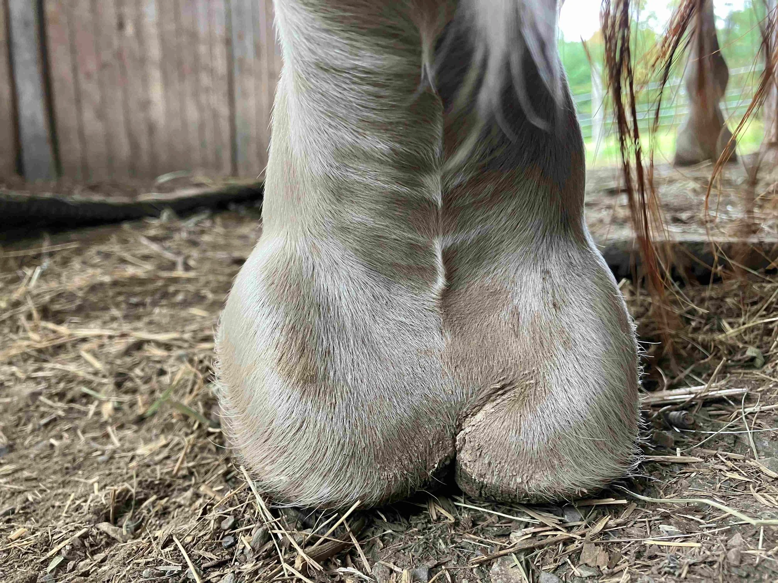 Left hind post-trim May 2018 — I discovered a fold (which at first appeared to be a scar) in the soft tissue in the medial heel bulb