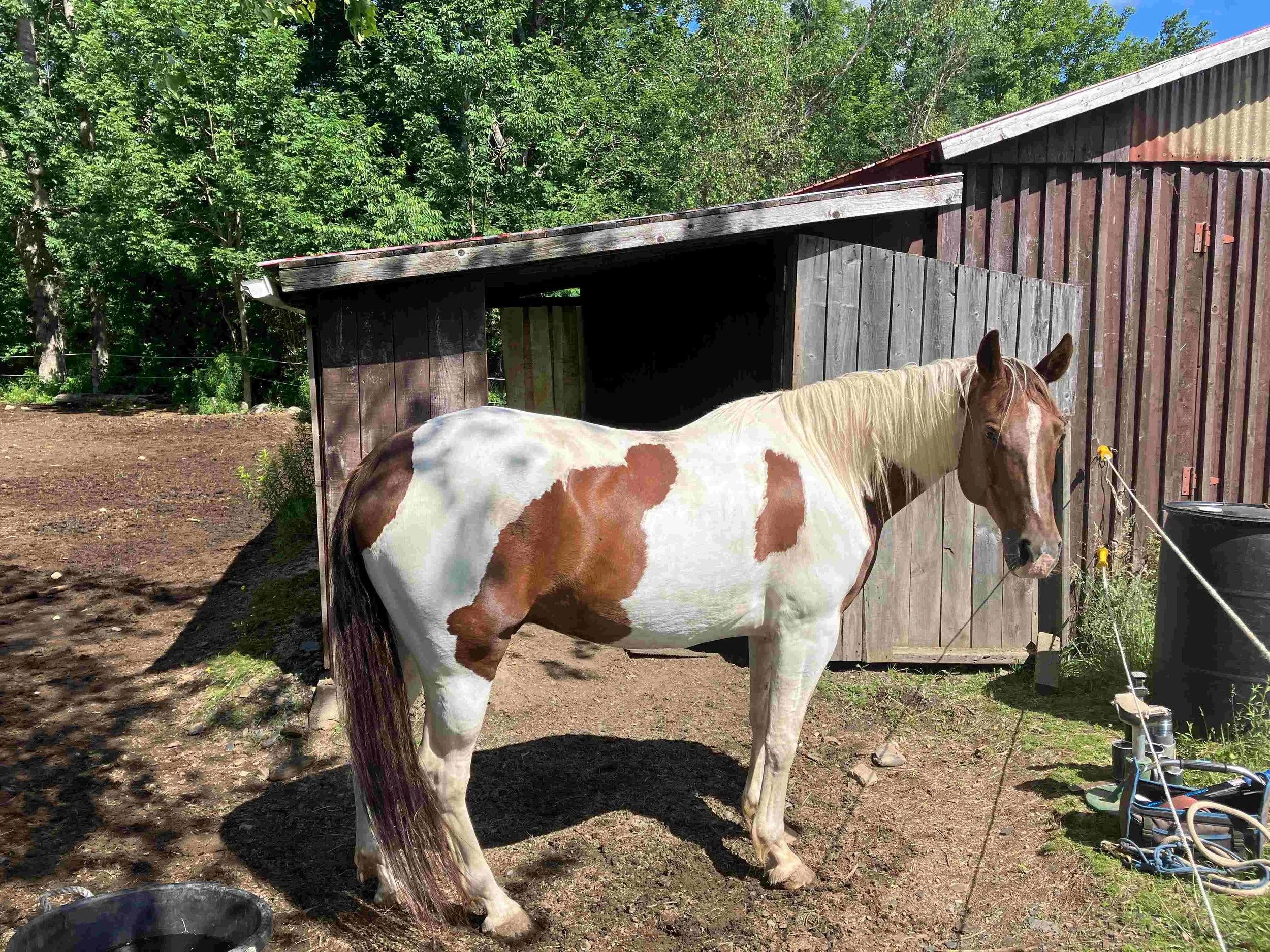 Zegby lives in a nice natural set-up with a companion horse. They have 24/7 freedom to move, a dry paddock with a track around a pond, run-in shelters, stony environment, good quality first cut hay as main food source, very little grazing time in a run-down field in the late summer. Diet, environment and lifestyle were consistent over the past thirteen years.