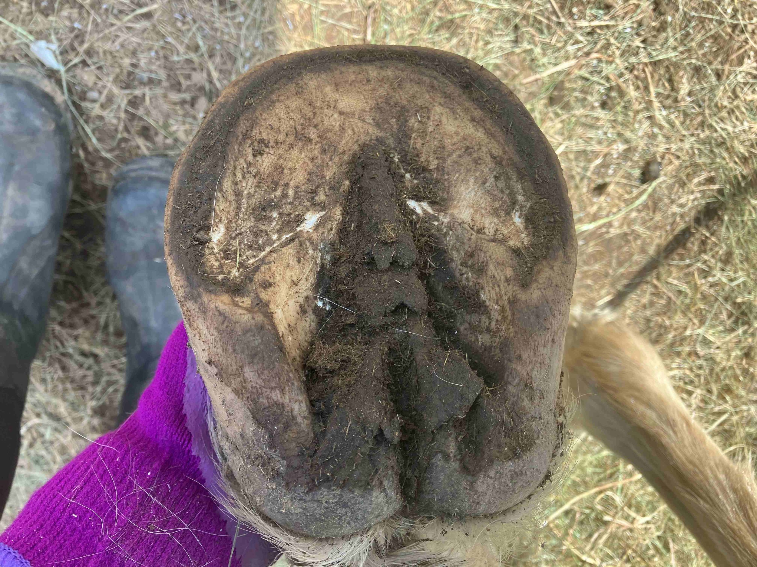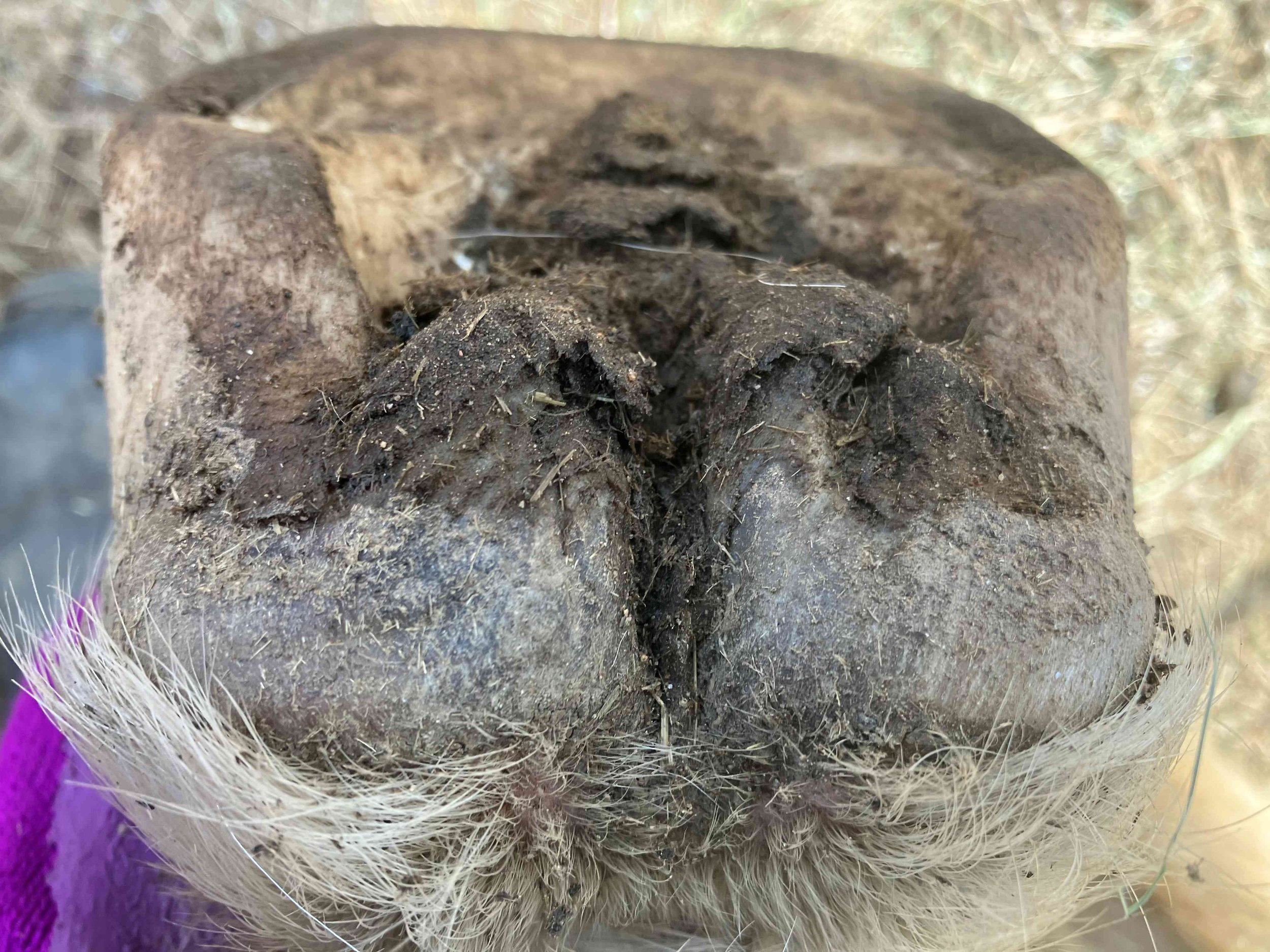 Left hind post-trim July 2020 — true heel has emerged on the lateral side; the fold is changing