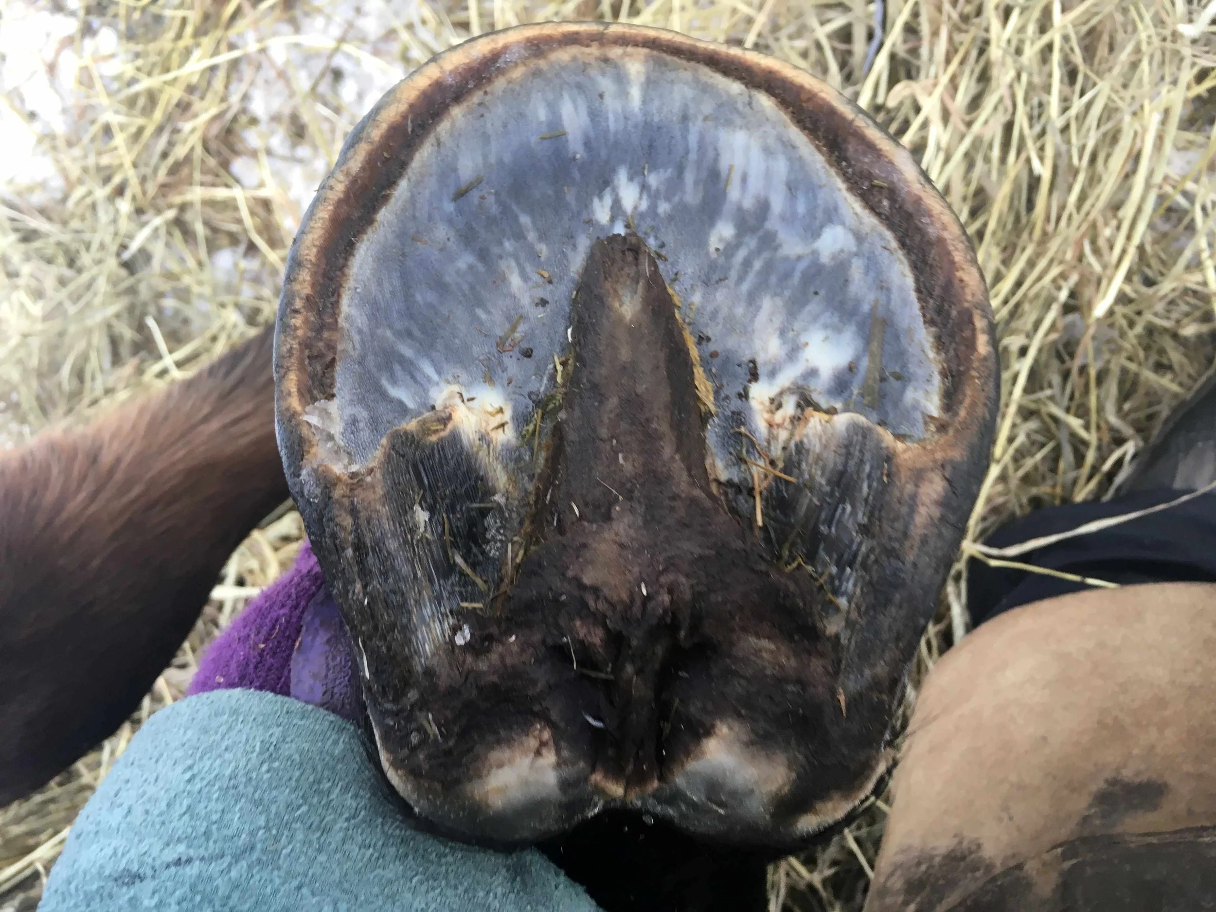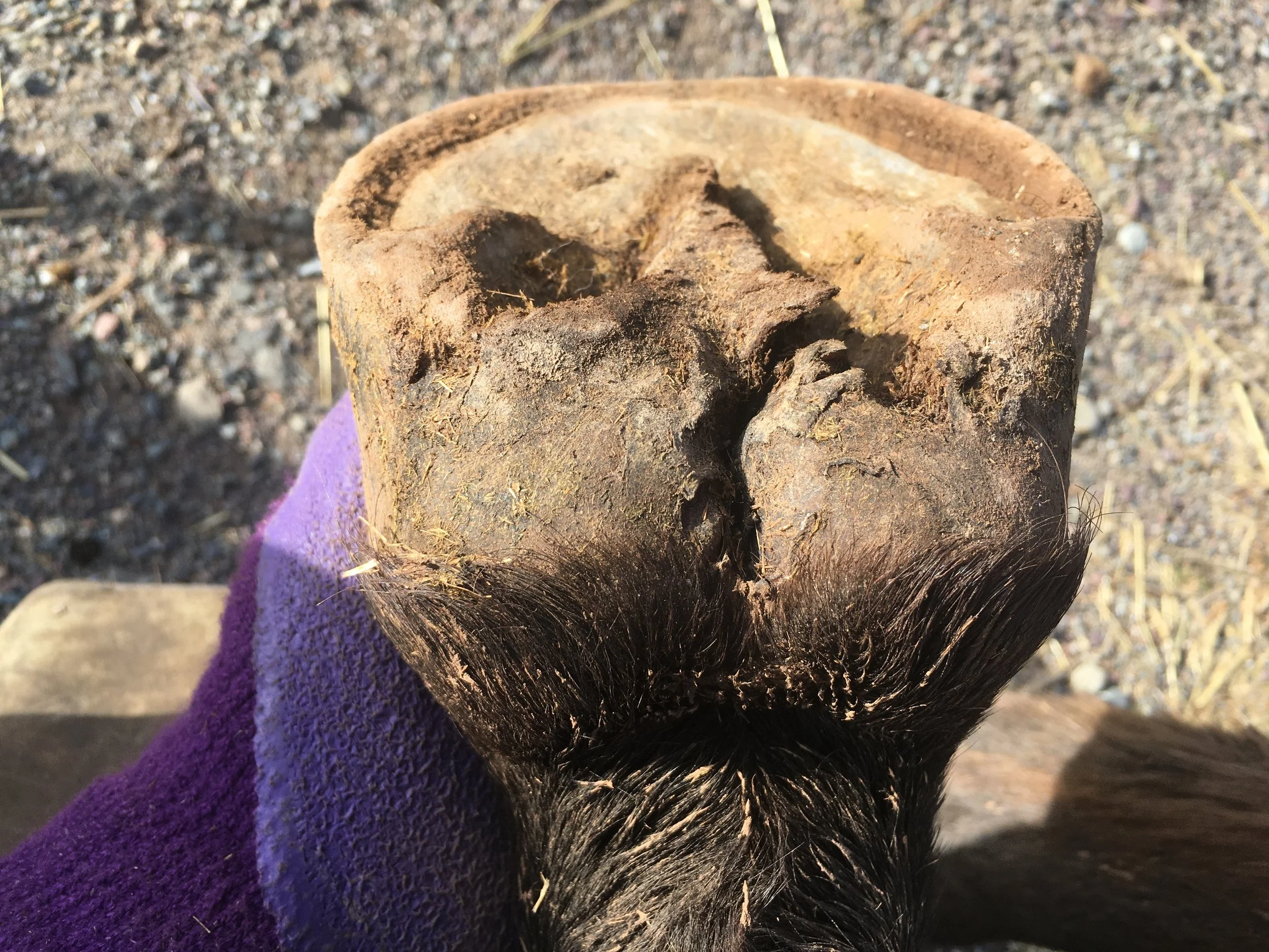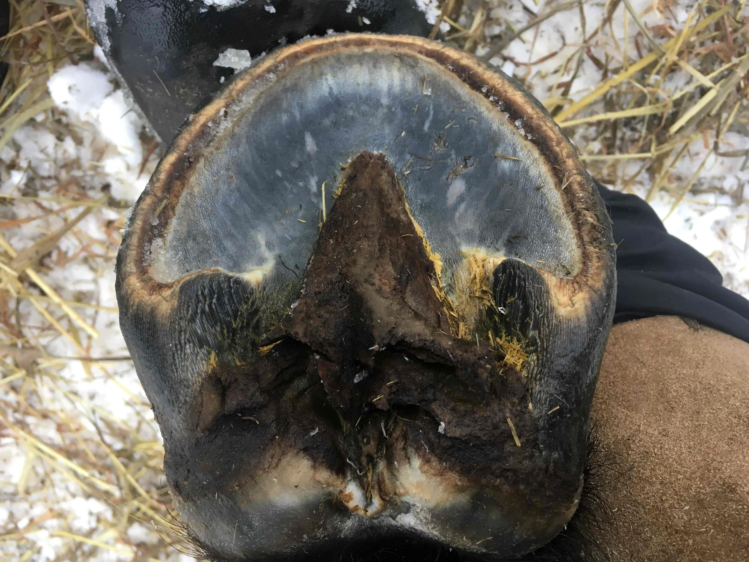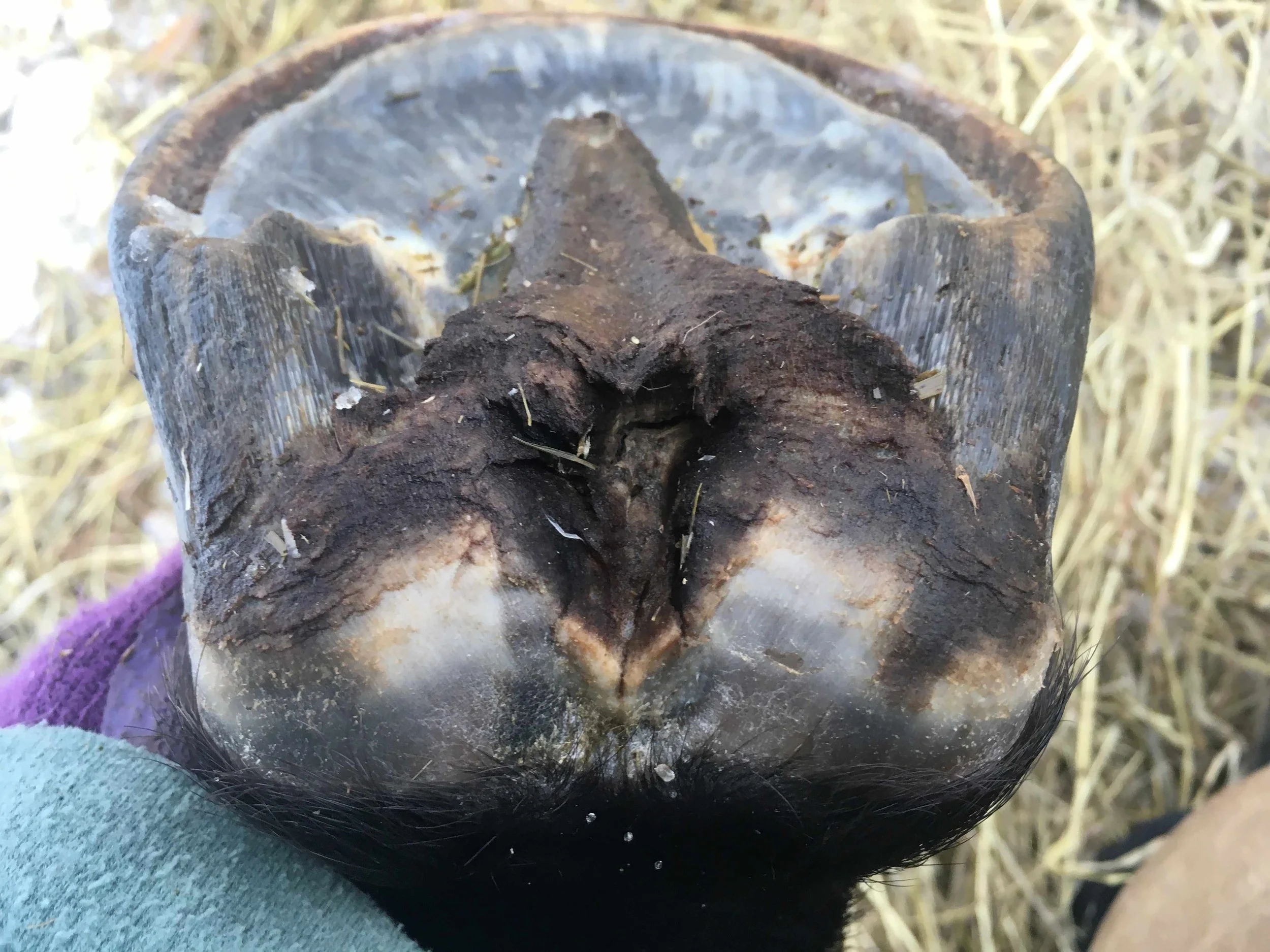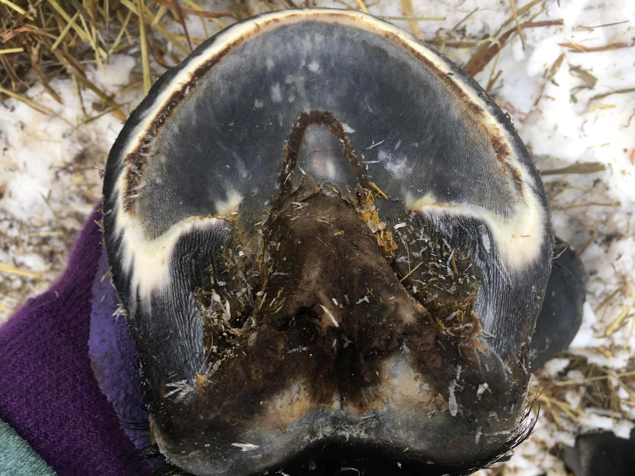 Right front pre-trim December 2021 — the bulbs opened up and filled out in all four hooves