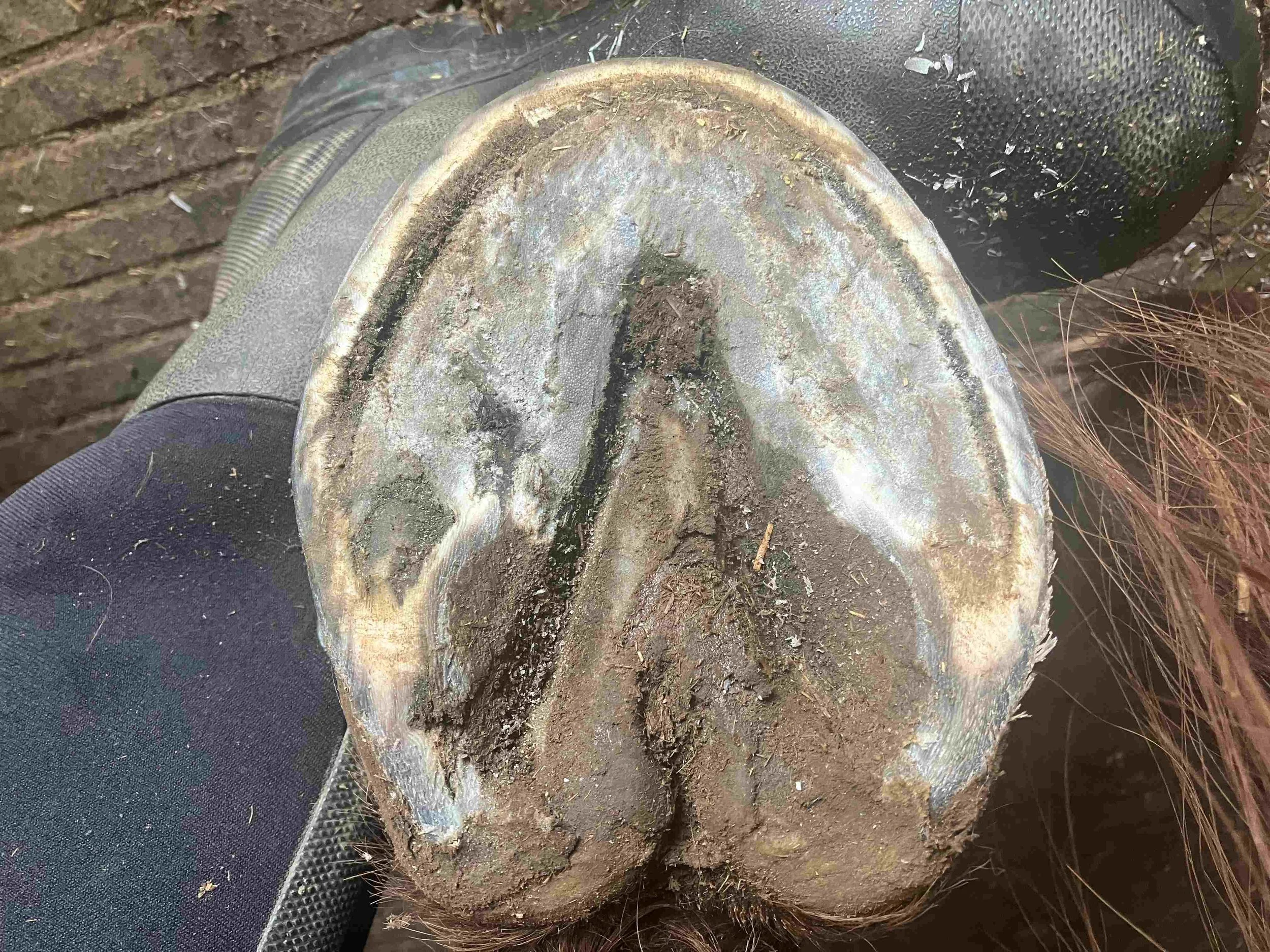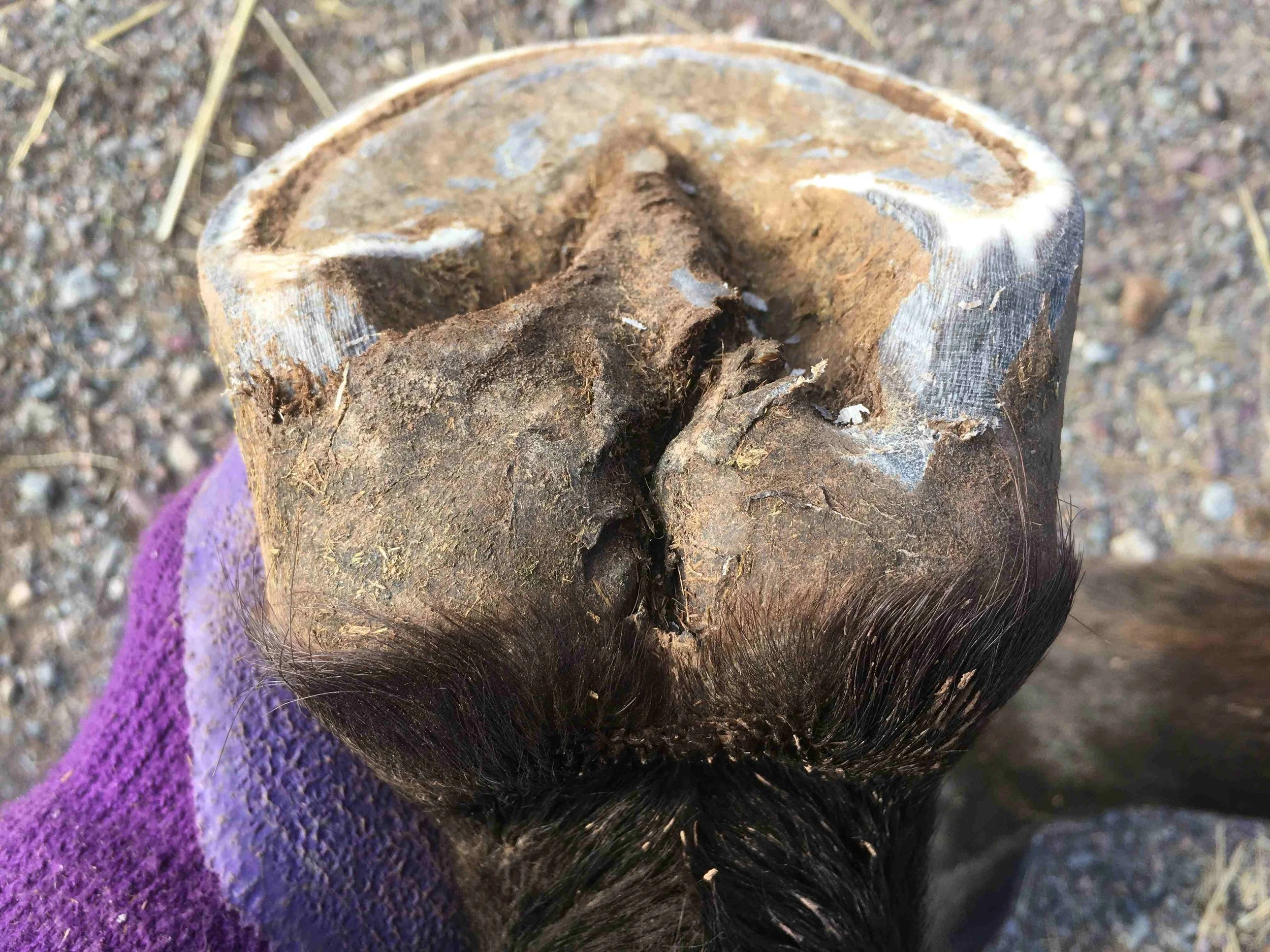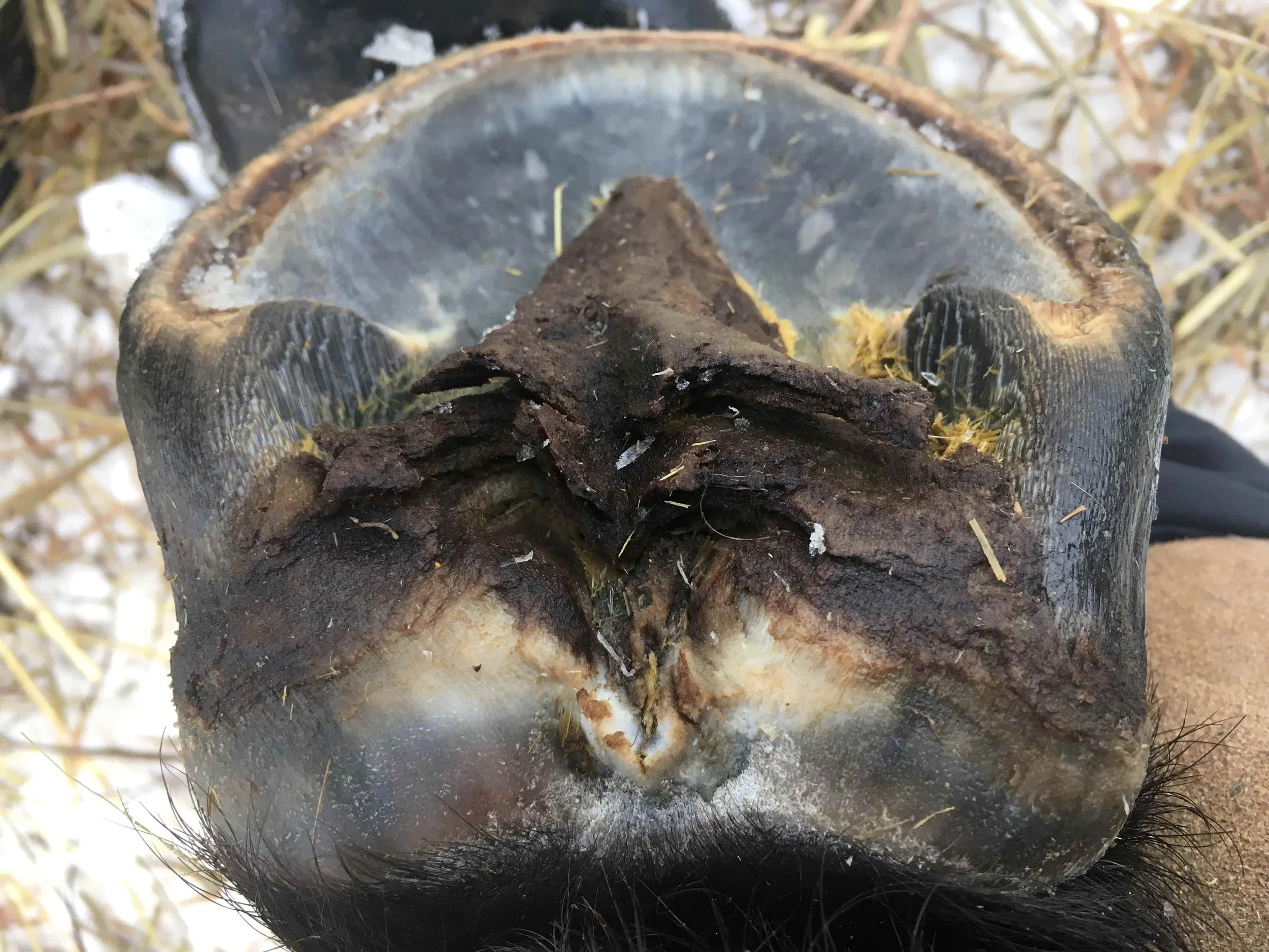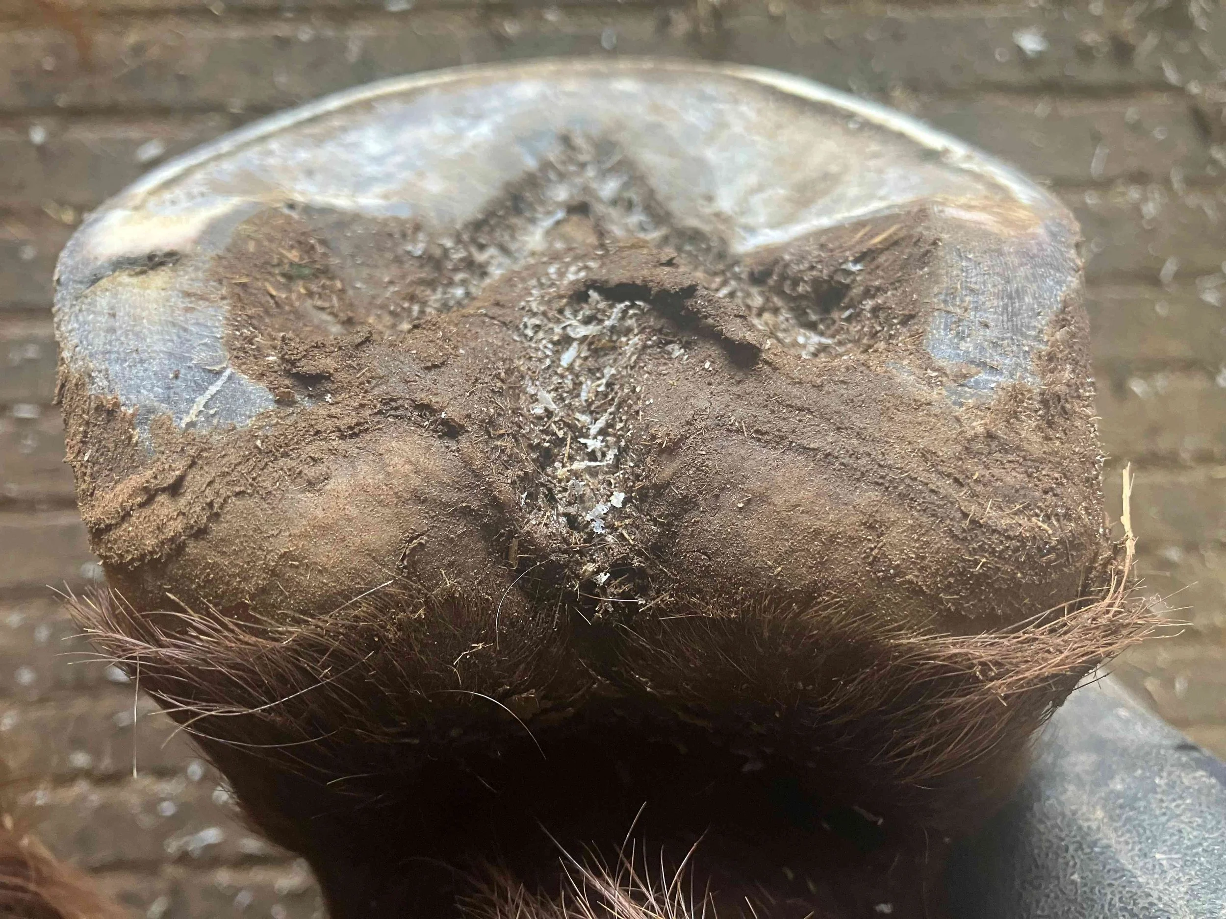 Right front pre-trim December 2021 — the bulbs opened up and filled out in all four hooves