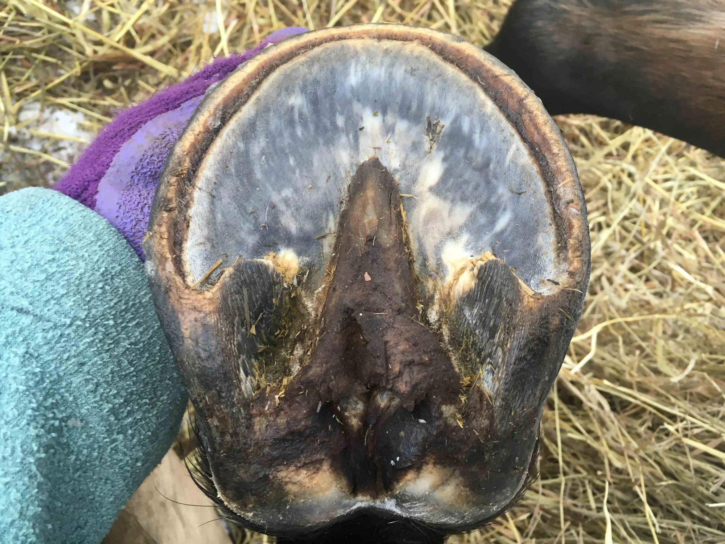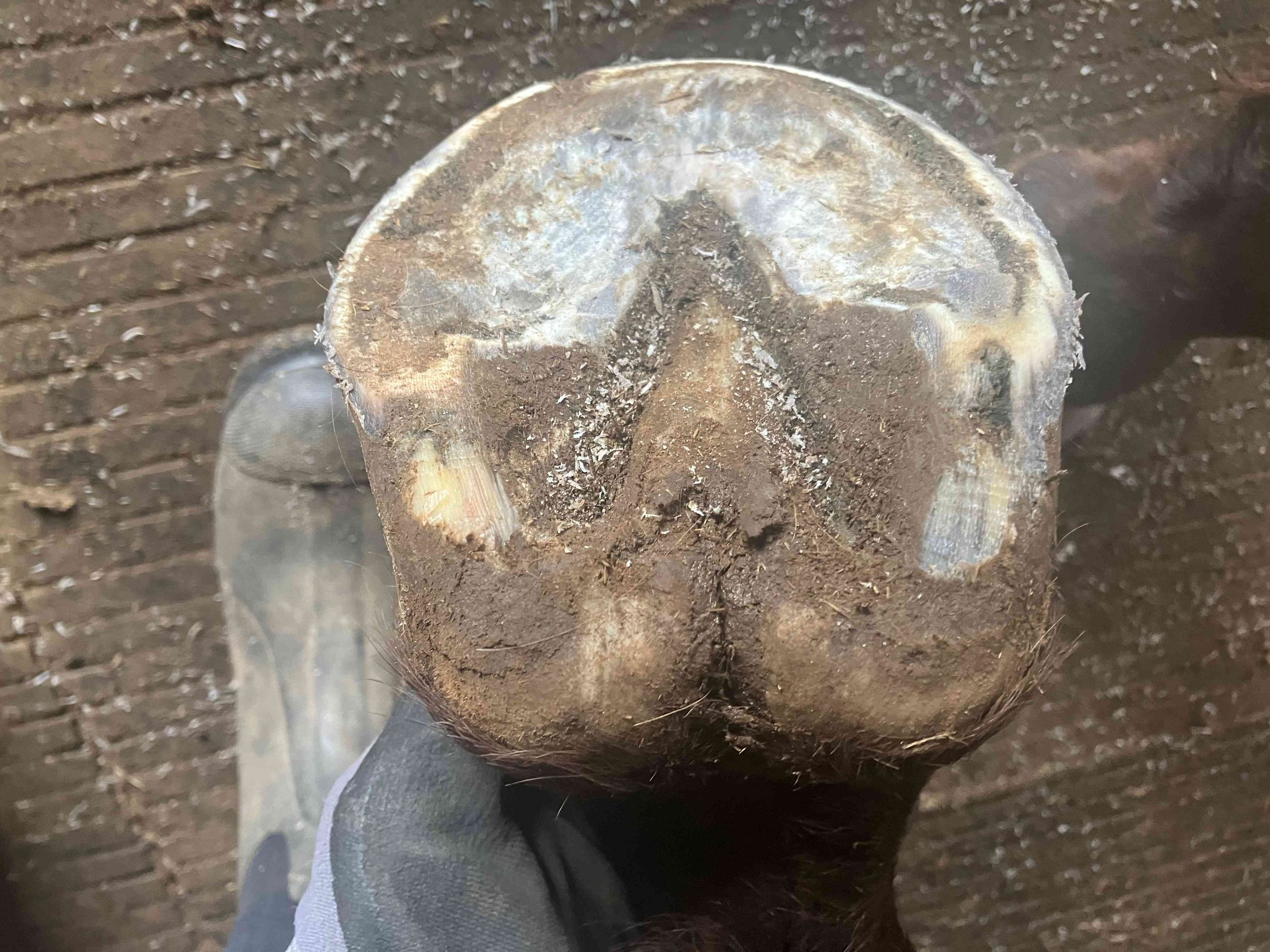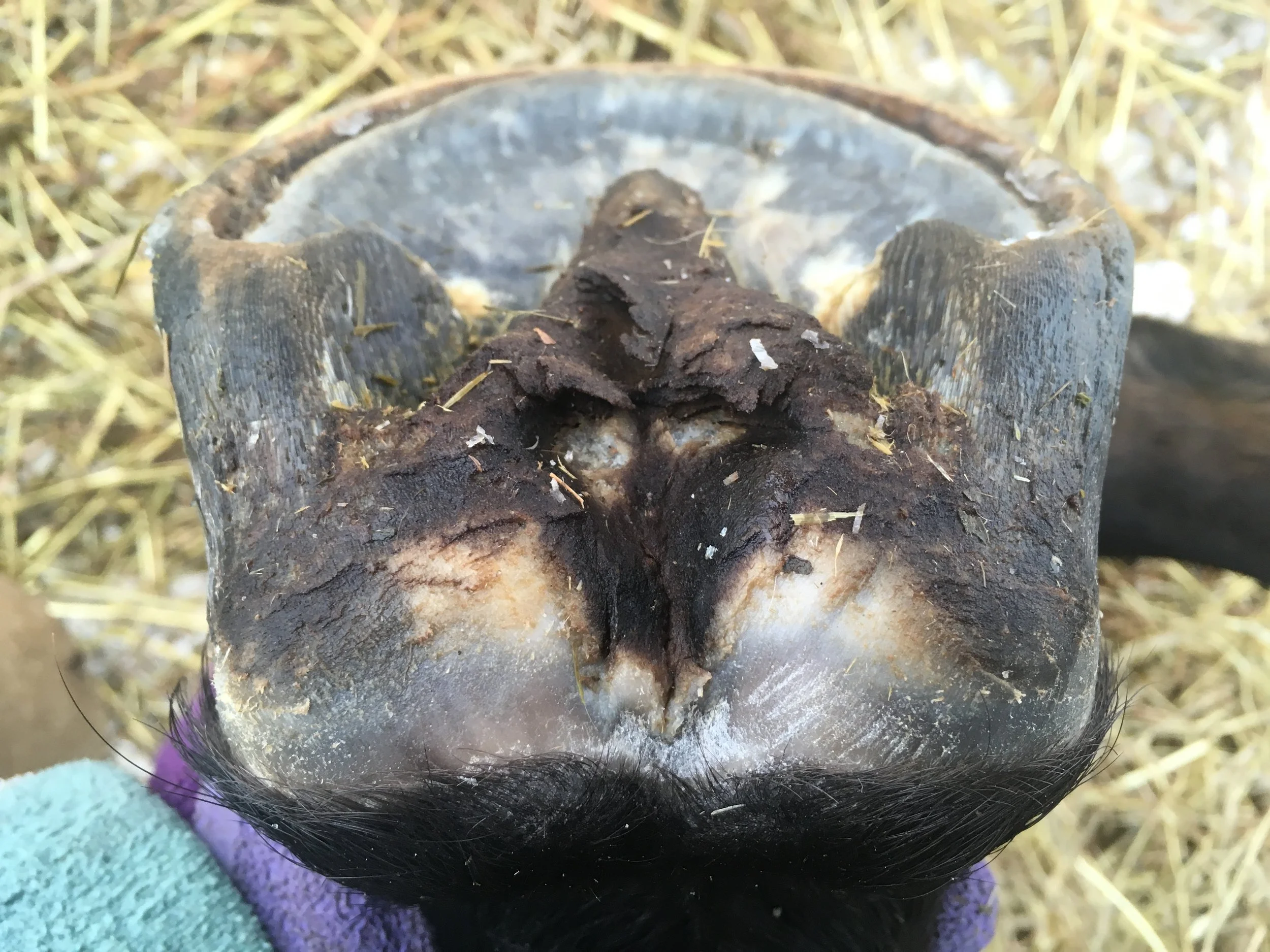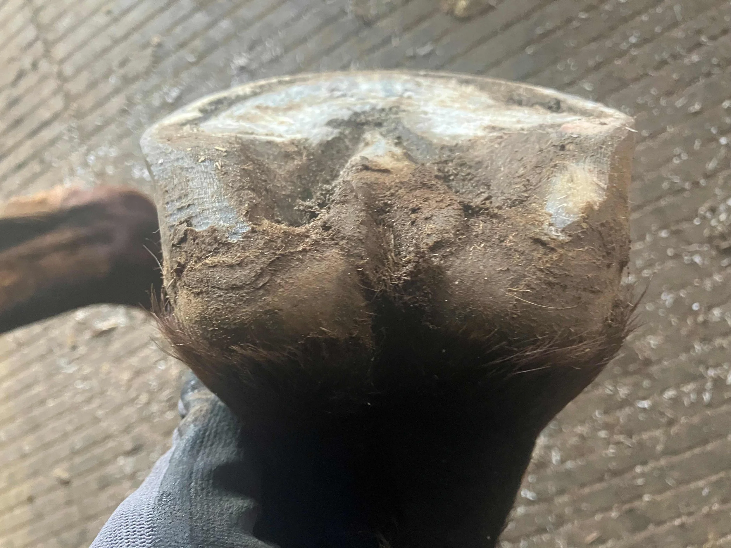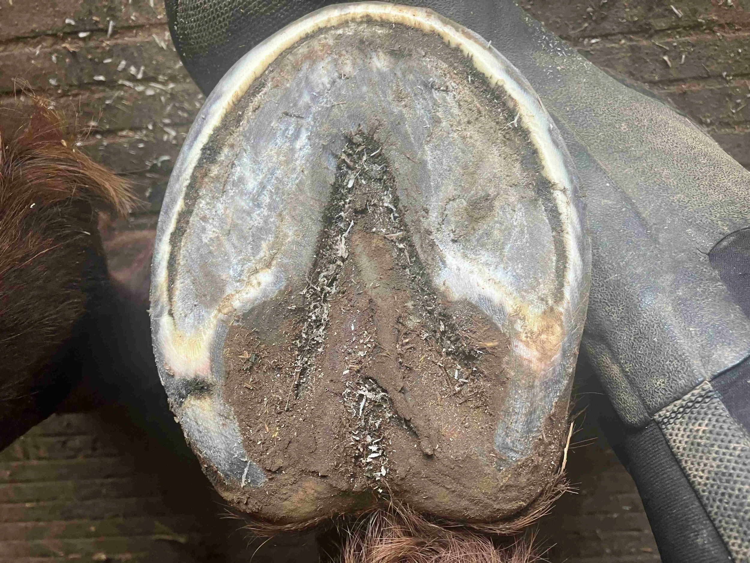Right front pre-trim December 2021 — the bulbs opened up and filled out in all four hooves