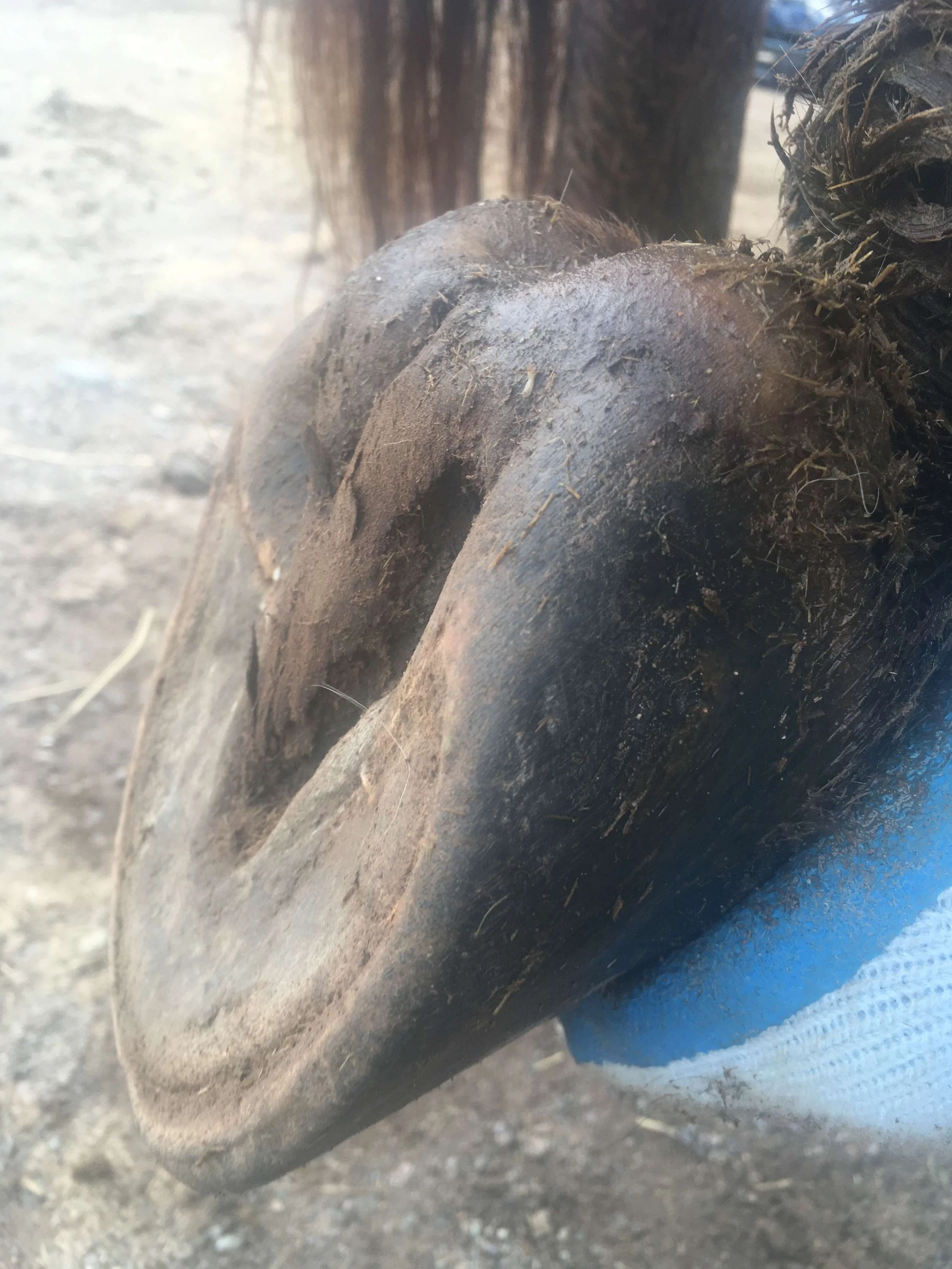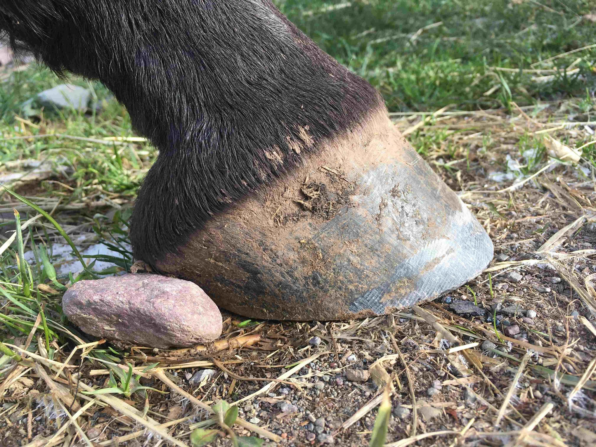 Right hind pre-trim April 2022 — six weeks after the last trim — the genuine mustang roll all the way around is the corner stone for healing; the water line is the most distal part of the hoof capsule