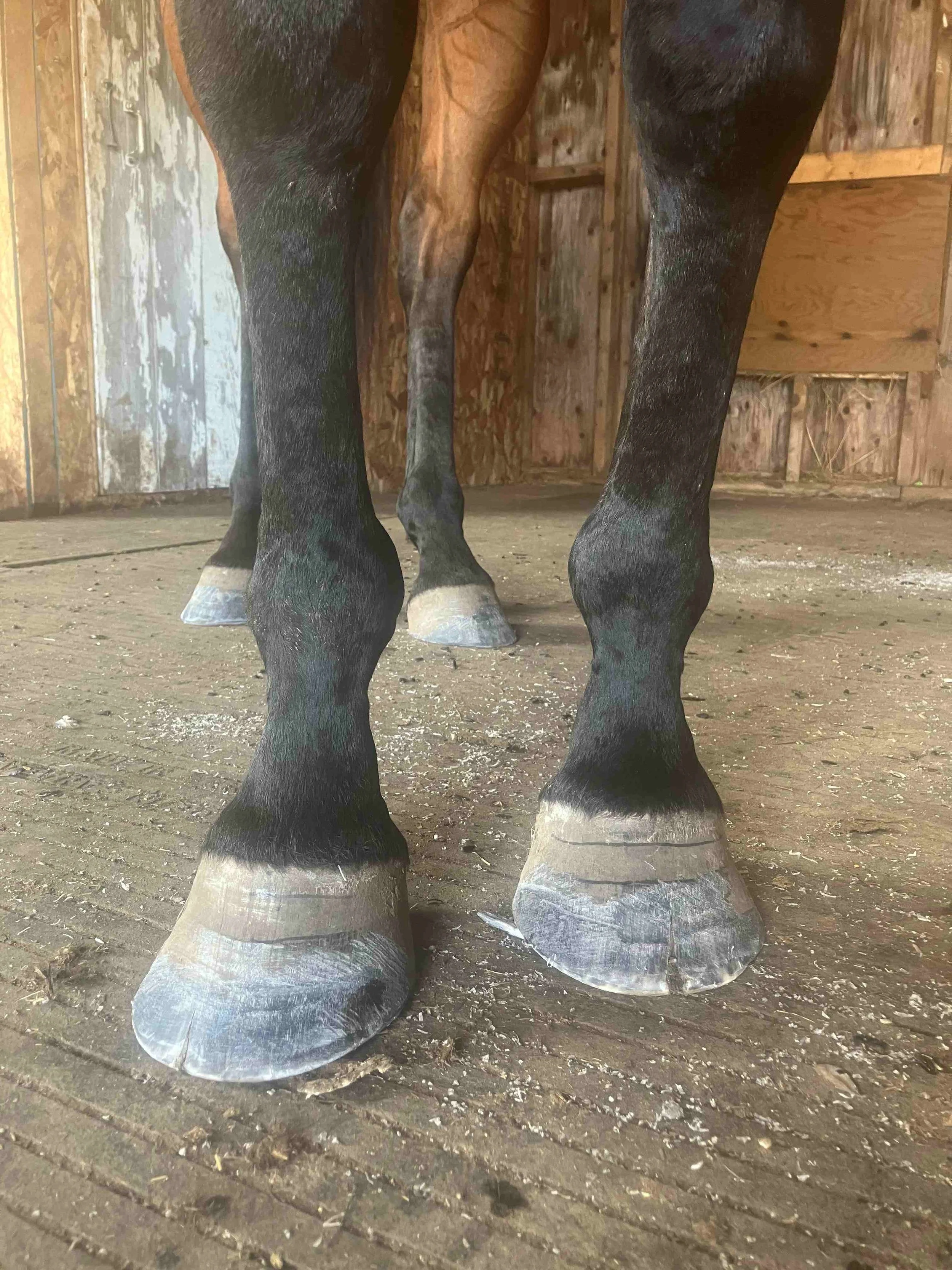 Blaze's front hooves needed to untangle. With each new and divergent hoof growing down from the hairline, hoof horn shifted around the coffin bone = 4th dimensional healing. With each new and divergent hoof, the hooves were positioned more and more under the bone column. The toes eventually got shorter as the angles raised through increase in thickness of the digital cushion. The cracks in both fronts finally closed in 2026.